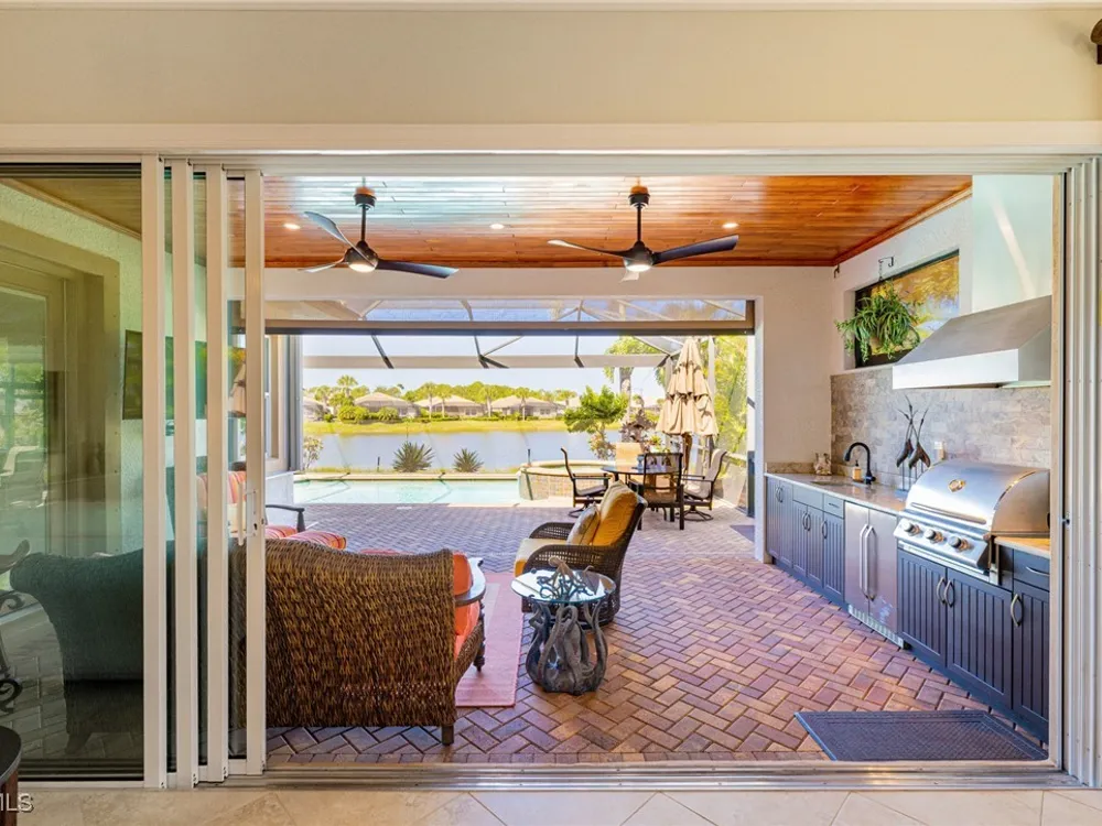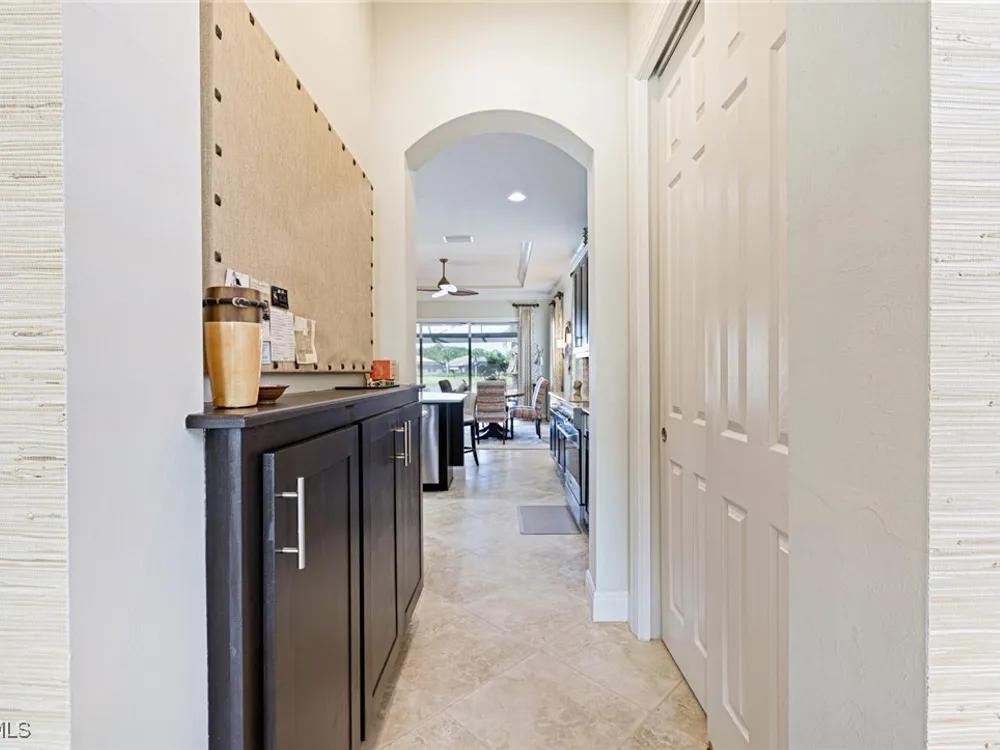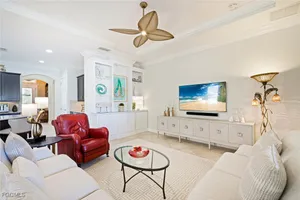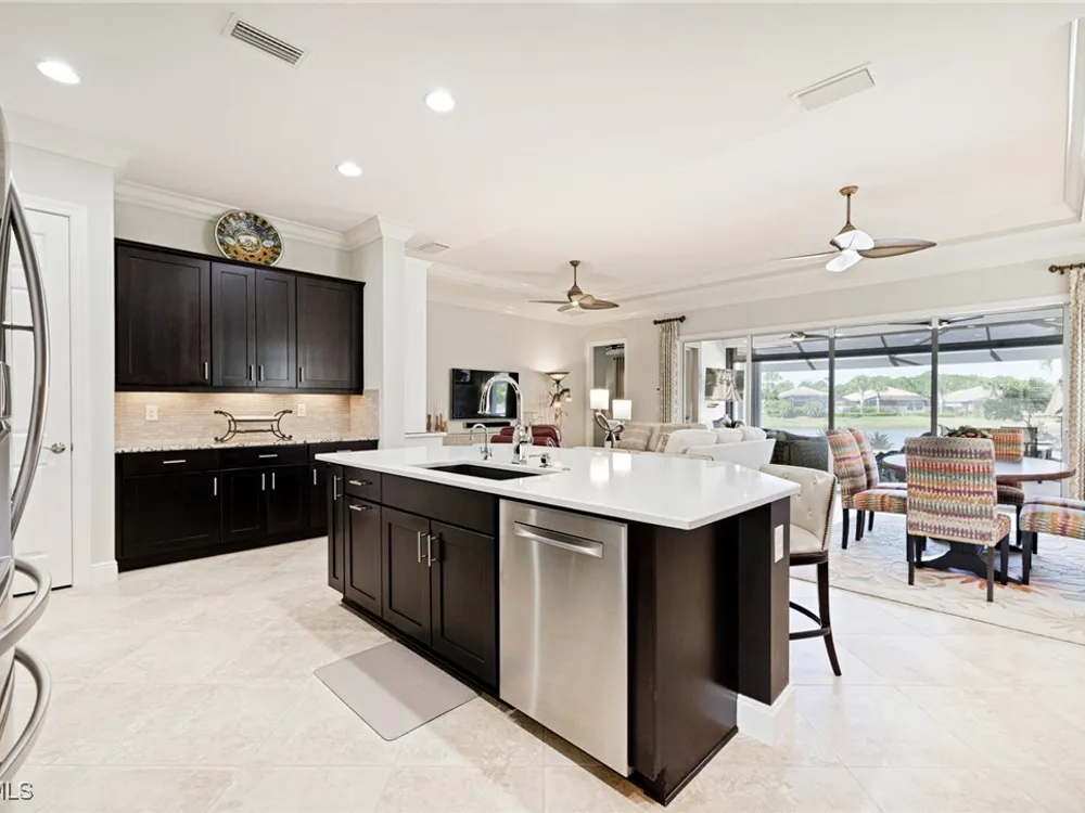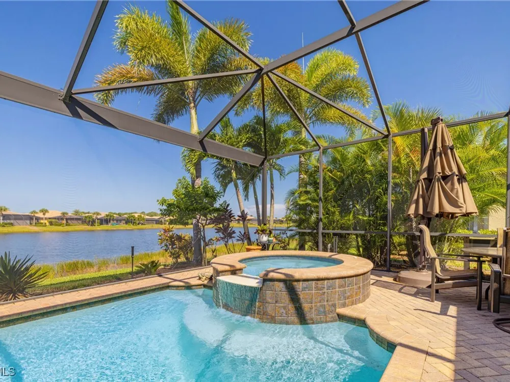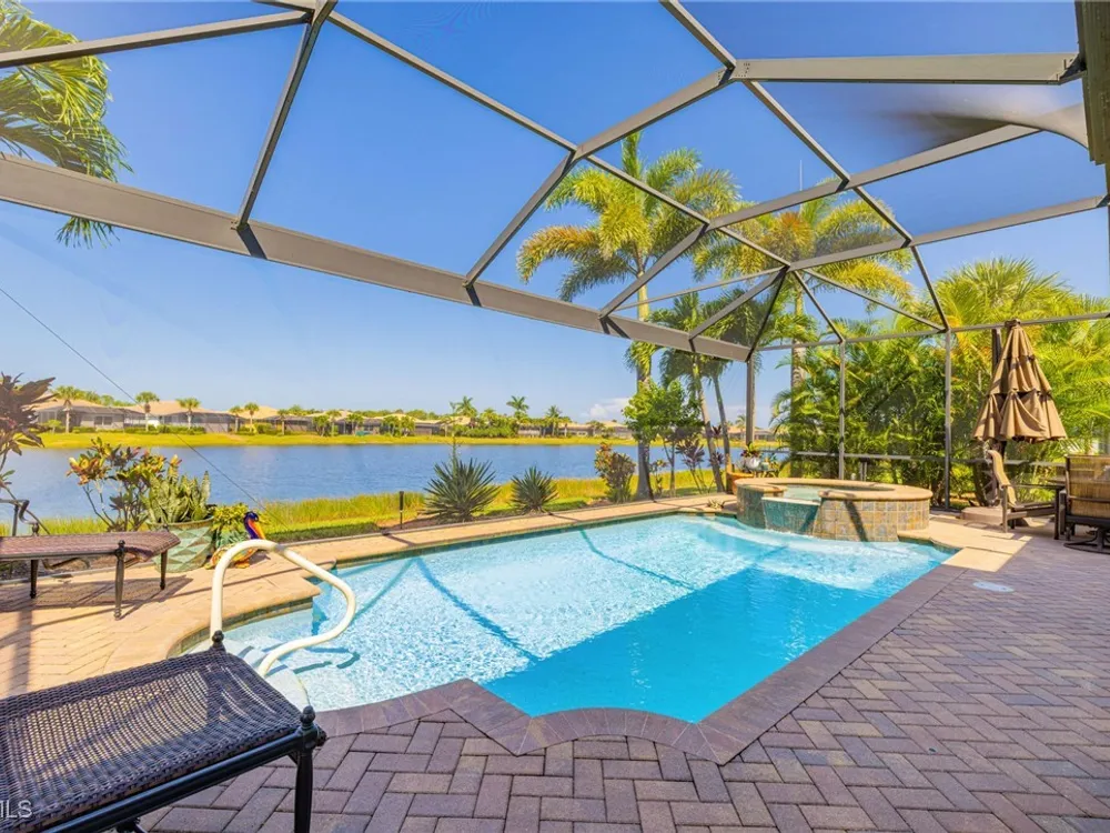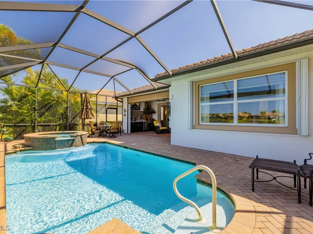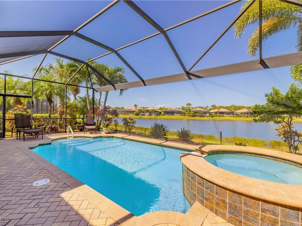 Nestled within the intimate Carena neighborhood of Pelican Preserve, this San Remo floor plan blends style, comfort, and resort-style living. This 2251 SF home offers 3 bedrooms, 2 ½ baths, and a versatile flex room for whatever your heart desires. A bright, open design flows seamlessly through expansive sliding glass doors to the covered lanai, where a tongue & groove ceiling sets the stage for an inviting outdoor kitchen, a heated sparkling pool and spillover spa-all overlooking a serene lake through an unobstructed clear-view screen. Inside, upgrades abound, including a chef’s kitchen with quartz and granite countertops, water filtration system, abundant storage, and premium appliances. The owner’s craftmanship shines throughout the home, transforming otherwise unused space into creative custom cabinetry-including a home organization station with storage and charging capabilities, a striking built-in wall unit, and a guest-area hall storage cabinet - each blending beauty, practicality and style. The primary suite enjoys calming lake views, a spa-like bath with large tub and walk-in shower, dual sinks, custom closet, and private patio access. Two inviting and private guest bedrooms share a full bath. There is an additional half bath as a convenience for all. Diagonal tile and/or engineered wood plank flooring throughout. Added features include hurricane shutters and a convenient Storm Smart roll-down screen for the covered lanai, a screened-in front porch, professional landscape lighting, garage ceiling mount storage, and an epoxy garage floor and so much more! Living in Pelican Preserve means access to world-class 55+ amenities—tennis, fitness, pools, dining, entertainment, optional golf, and endless social activities. This isn’t just a home, it’s a lifestyle. (NOTE: Kitchen Countertop Portable Oven and Generator do not convey with sale).