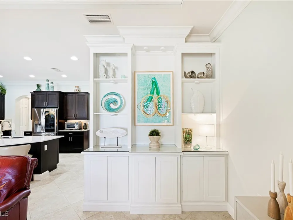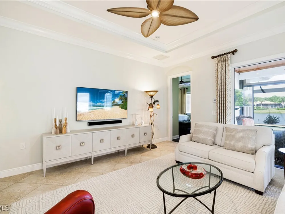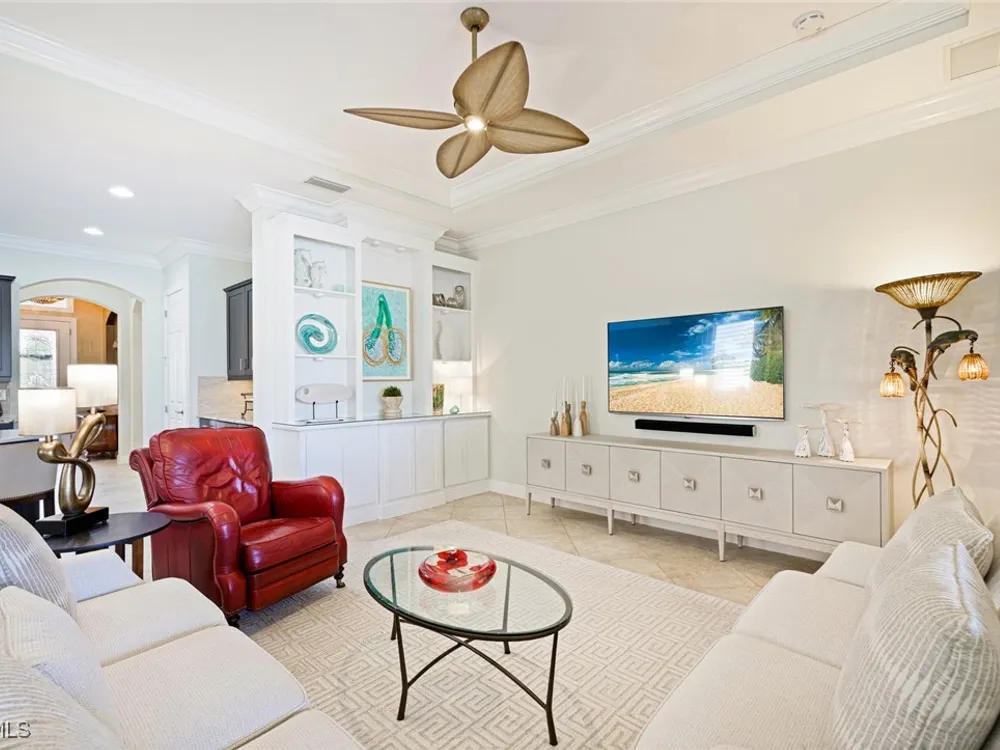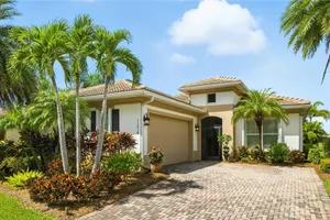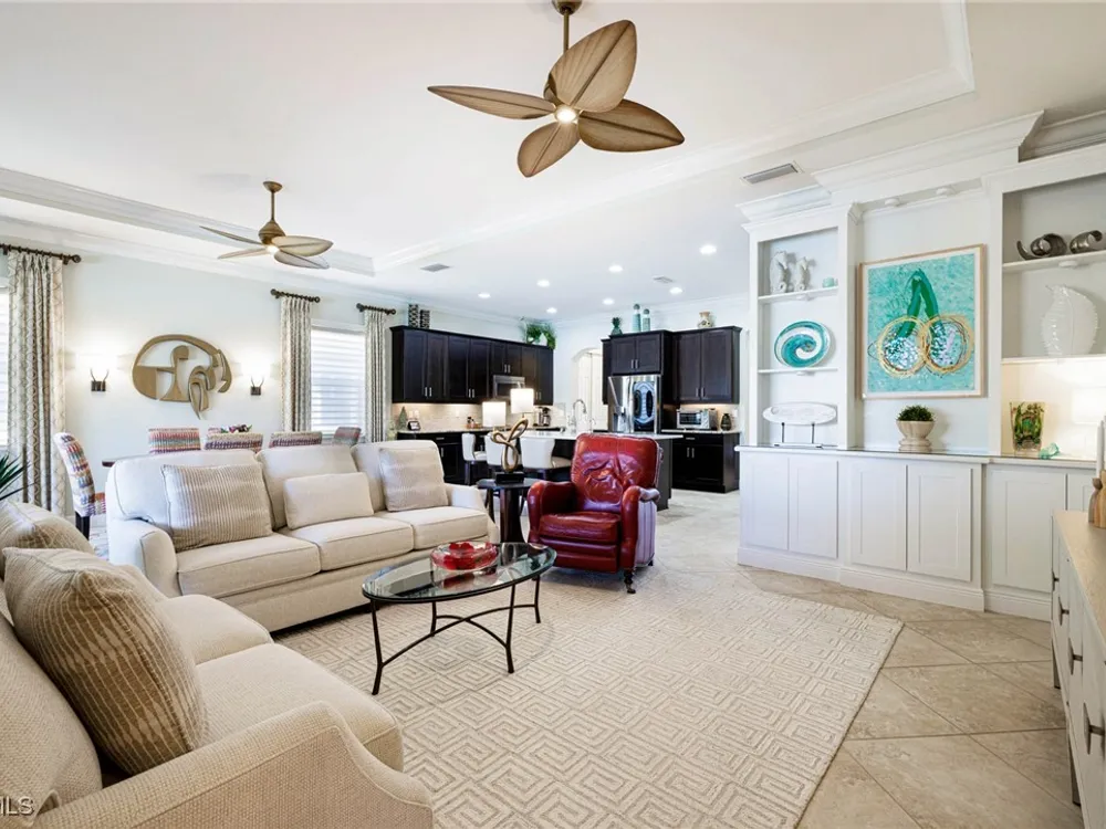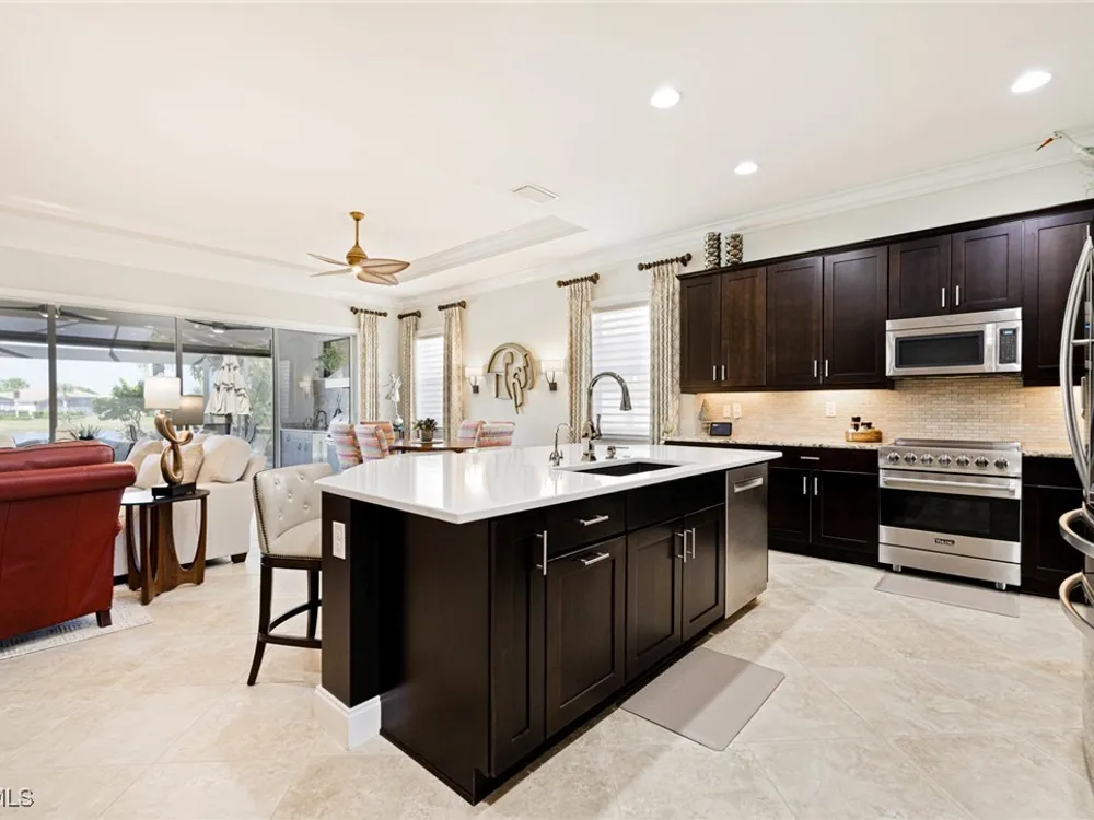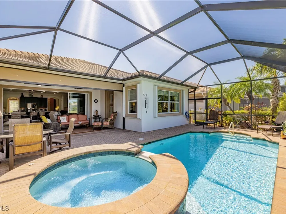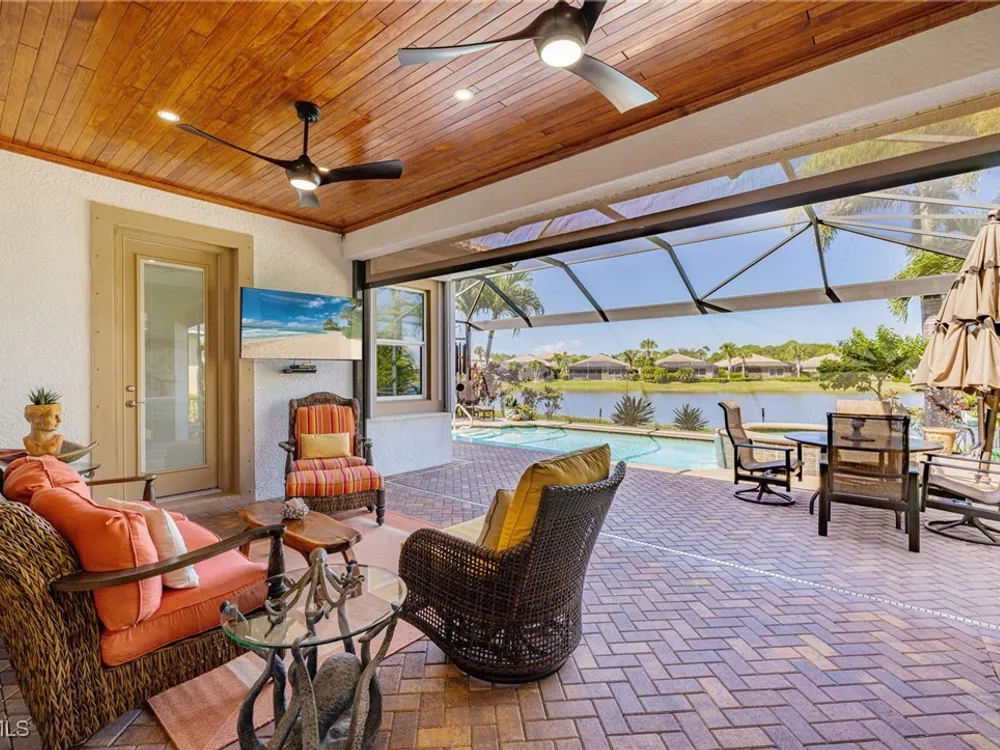 Nestled within the intimate Carena neighborhood of Pelican Preserve, this San Remo floor plan blends style, comfort, and resort-style living. This 2251 SF home offers 3 bedrooms, 2 ½ baths, and a versatile flex room for whatever your heart desires. A bright, open design flows seamlessly through expansive sliding glass doors to the covered lanai, where a tongue & groove ceiling sets the stage for an inviting outdoor kitchen, a heated sparkling pool and spillover spa-all overlooking a serene lake through an unobstructed clear-view screen. Inside, upgrades abound, including a chef’s kitchen with quartz and granite countertops, water filtration system, abundant storage, and premium appliances. The owner’s craftmanship shines throughout the home, transforming otherwise unused space into creative custom cabinetry-including a home organization station with storage and charging capabilities, a striking built-in wall unit, and a guest-area hall storage cabinet - each blending beauty, practicality and style. The primary suite enjoys calming lake views, a spa-like bath with large tub and walk-in shower, dual sinks, custom closet, and private patio access. Two inviting and private guest bedrooms share a full bath. There is an additional half bath as a convenience for all. Diagonal tile and/or engineered wood plank flooring throughout. Added features include hurricane shutters and a convenient Storm Smart roll-down screen for the covered lanai, a screened-in front porch, professional landscape lighting, garage ceiling mount storage, and an epoxy garage floor and so much more! Living in Pelican Preserve means access to world-class 55+ amenities—tennis, fitness, pools, dining, entertainment, optional golf, and endless social activities. This isn’t just a home, it’s a lifestyle. (NOTE: Kitchen Countertop Portable Oven and Generator do not convey with sale).