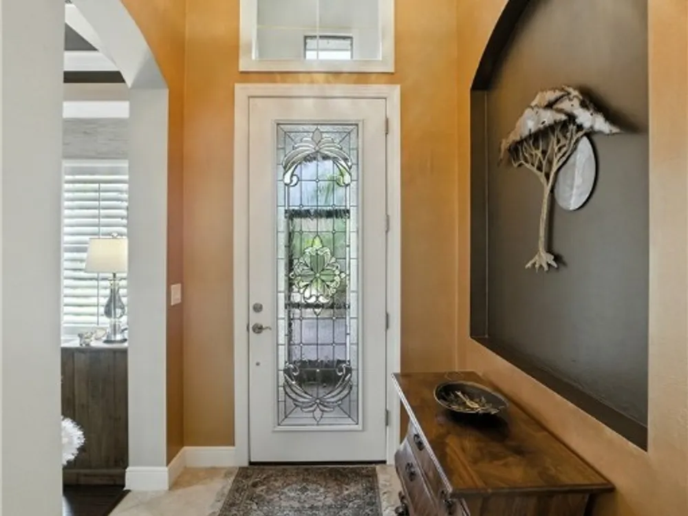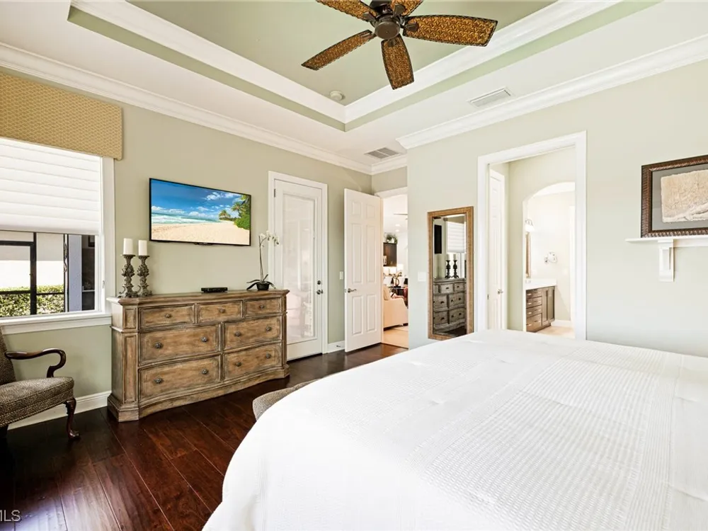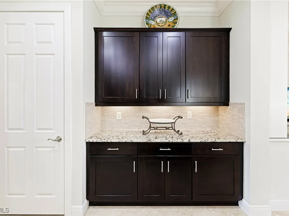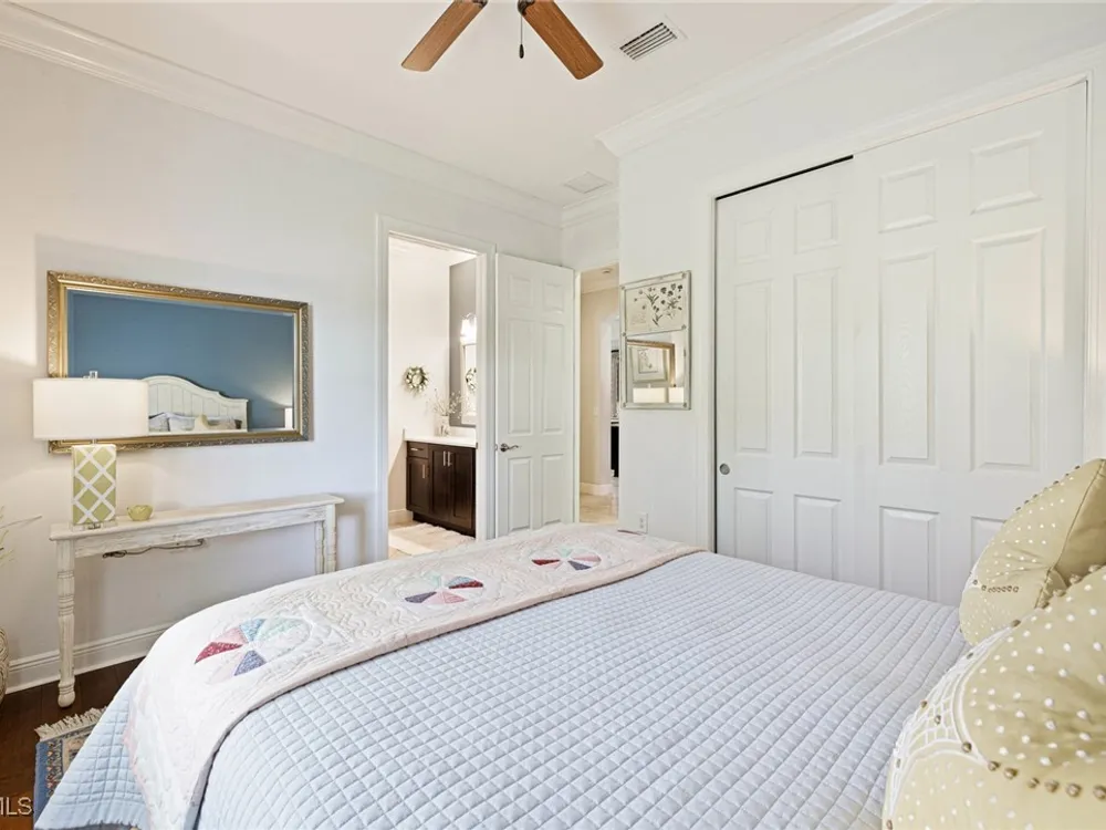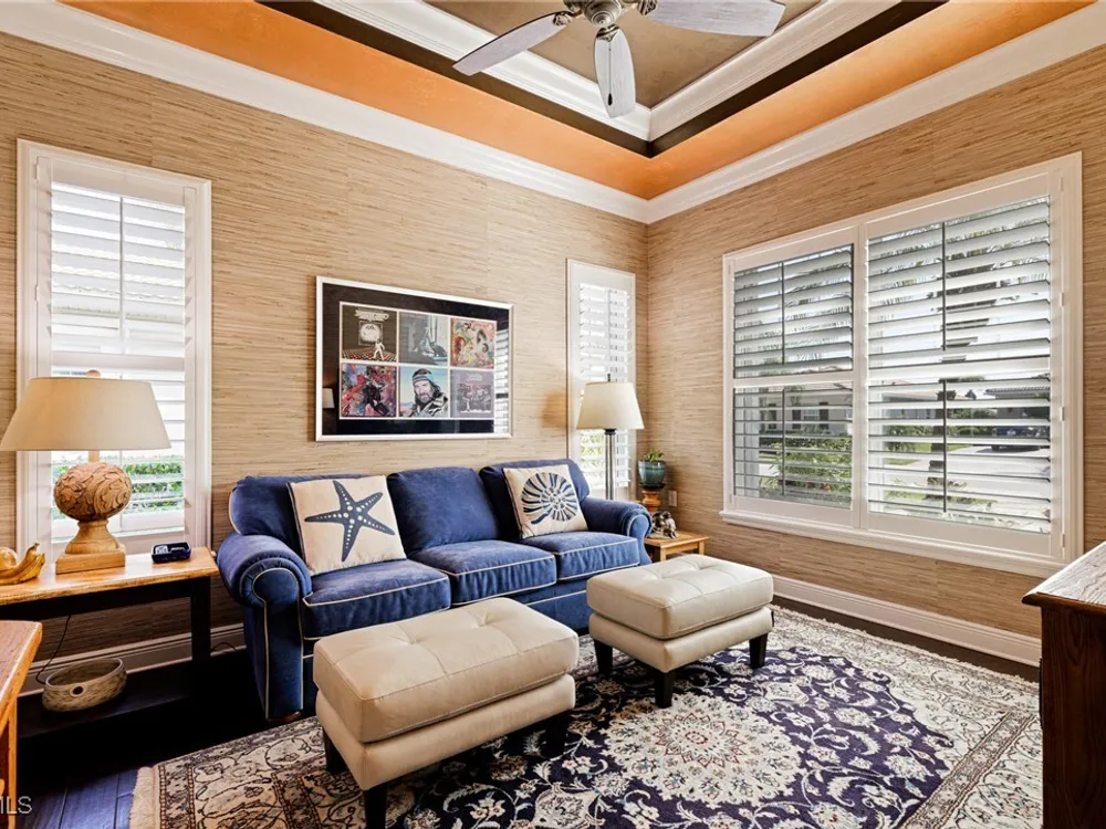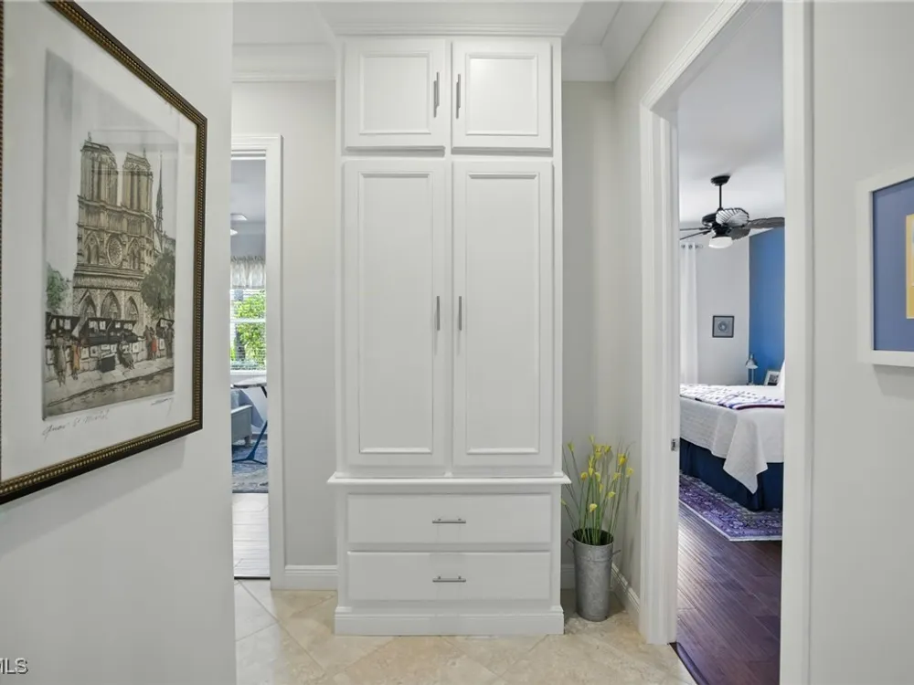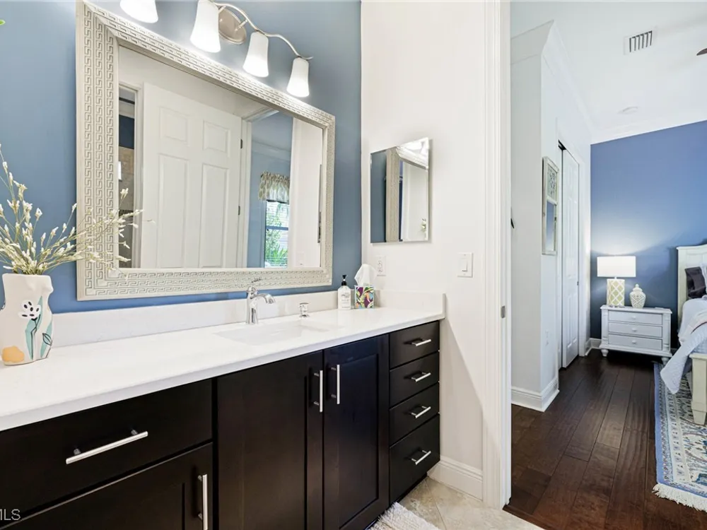 Nestled within the intimate Carena neighborhood of Pelican Preserve, this San Remo floor plan blends style, comfort, and resort-style living. This 2251 SF home offers 3 bedrooms, 2 ½ baths, and a versatile flex room for whatever your heart desires. A bright, open design flows seamlessly through expansive sliding glass doors to the covered lanai, where a tongue & groove ceiling sets the stage for an inviting outdoor kitchen, a heated sparkling pool and spillover spa-all overlooking a serene lake through an unobstructed clear-view screen. Inside, upgrades abound, including a chef’s kitchen with quartz and granite countertops, water filtration system, abundant storage, and premium appliances. The owner’s craftmanship shines throughout the home, transforming otherwise unused space into creative custom cabinetry-including a home organization station with storage and charging capabilities, a striking built-in wall unit, and a guest-area hall storage cabinet - each blending beauty, practicality and style. The primary suite enjoys calming lake views, a spa-like bath with large tub and walk-in shower, dual sinks, custom closet, and private patio access. Two inviting and private guest bedrooms share a full bath. There is an additional half bath as a convenience for all. Diagonal tile and/or engineered wood plank flooring throughout. Added features include hurricane shutters and a convenient Storm Smart roll-down screen for the covered lanai, a screened-in front porch, professional landscape lighting, garage ceiling mount storage, and an epoxy garage floor and so much more! Living in Pelican Preserve means access to world-class 55+ amenities—tennis, fitness, pools, dining, entertainment, optional golf, and endless social activities. This isn’t just a home, it’s a lifestyle. (NOTE: Kitchen Countertop Portable Oven and Generator do not convey with sale).