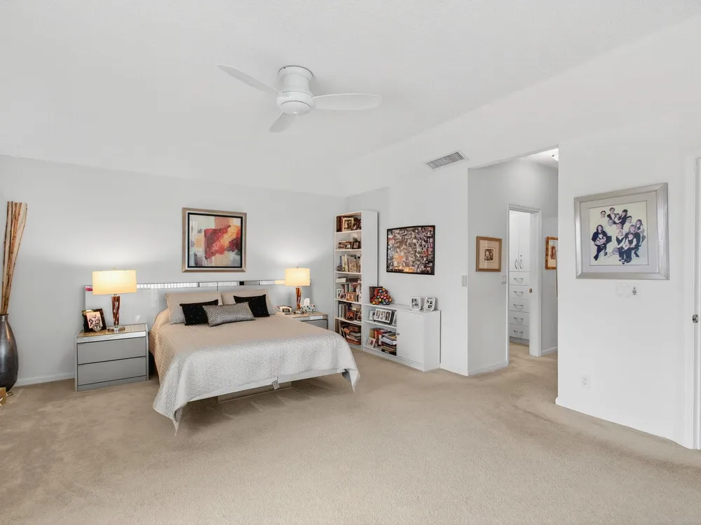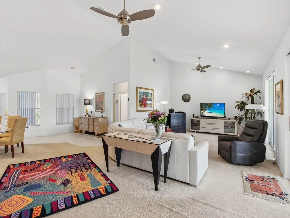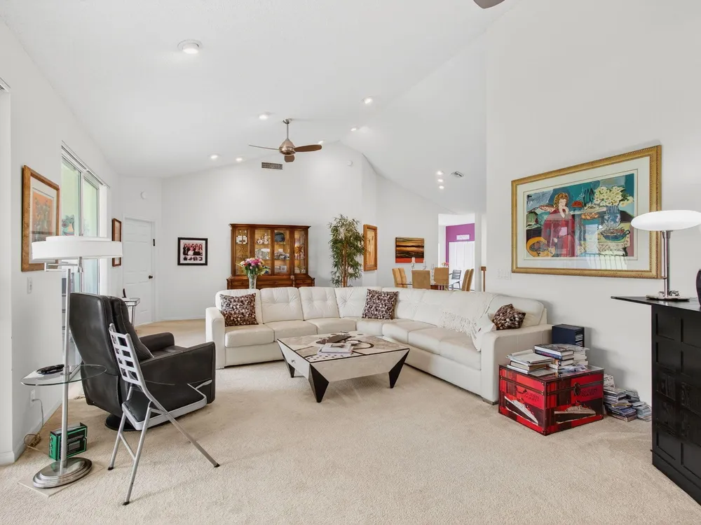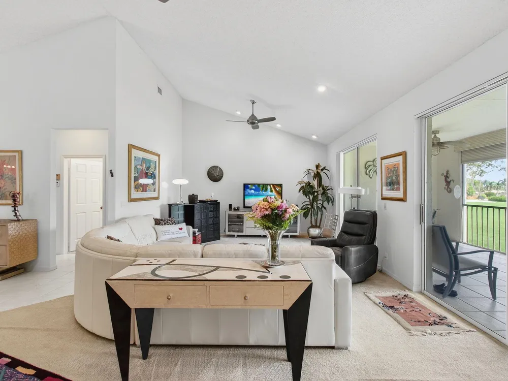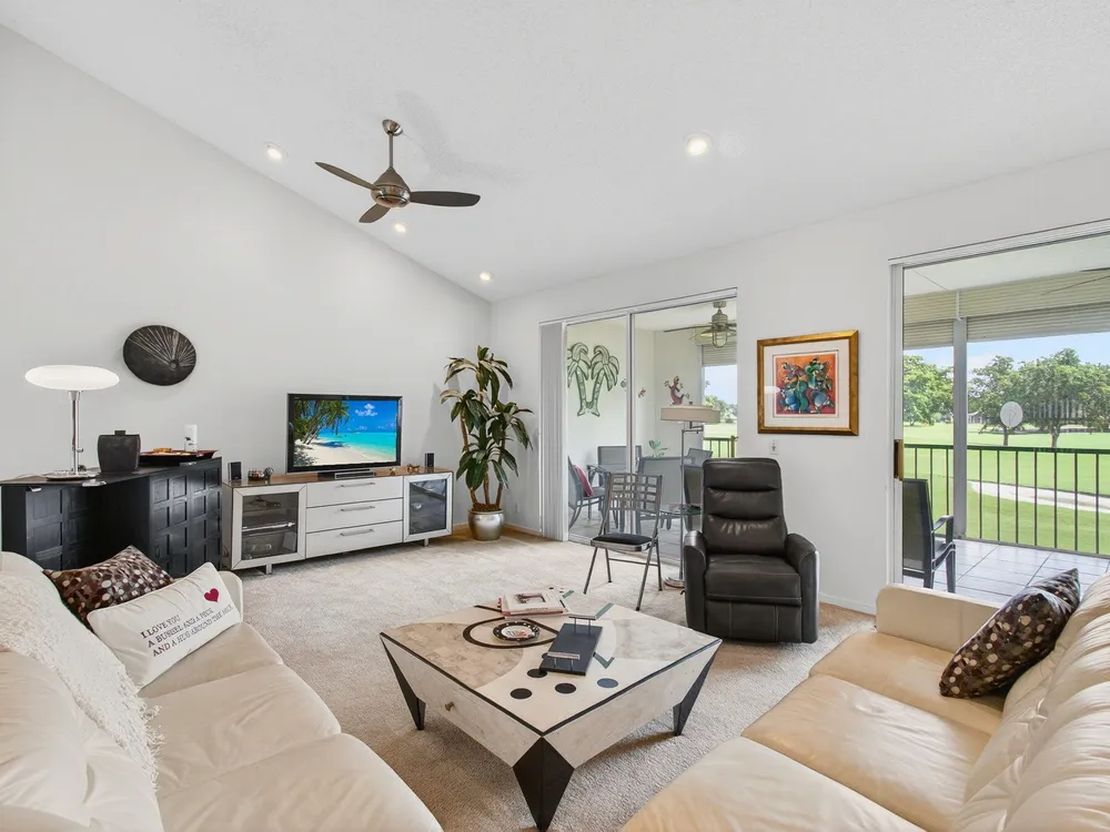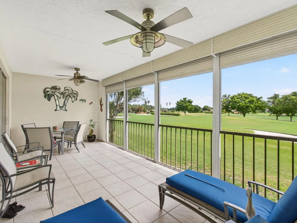 This exceptional Briarwood condo offers a spacious open floor plan with two bedrooms and two full bathrooms, encompassing over 1,900 sqft under air. The high ceilings create an enhanced sense of luxury, complemented by a private elevator and impressive views overlooking the 18th fairway of the Indian Spring Golf Course. The light-filled interior highlights a modern kitchen equipped with quartz countertops and contemporary cabinetry. A large screened-in patio seamlessly extends the living area outdoors. The master bedroom is generously proportioned and includes a custom-designed walk-in closet for optimal storage. Small pets are permitted. A short walk to the community pool. Optional membership to the