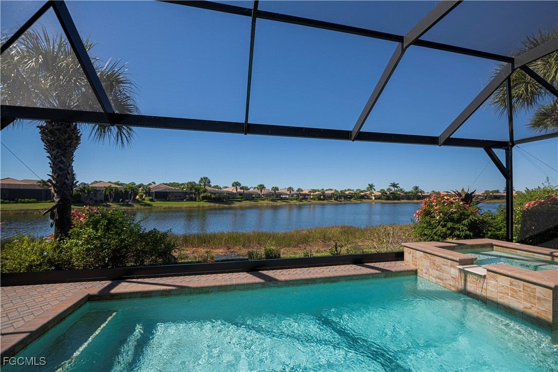 You’ve worked hard for this stage of life—now it’s time to enjoy it in a home and community that make every day feel like a reward. Welcome to Pelican Preserve, Fort Myers’ premier 55+ gated community, where resort-style amenities and friendly neighbors create the perfect place to live life fully. From golf and pickleball to art studios, fitness classes, pools, restaurants, a movie theater, and endless social activities, you’ll find something here for every interest. This beautifully maintained San Remo model by WCI blends comfort, elegance, and true energy efficiency. A fully owned whole-house solar system with Enphase battery backup means you’ll enjoy incredibly low utility costs—and peace of mind knowing your home automatically stays powered during outages. The light-filled open floor plan connects the kitchen, dining area, and great room, all overlooking a peaceful lake view through large sliding glass doors. The 2023 picture-window lanai enclosure with Super Screen offers unobstructed views of the water and surrounding wildlife, while the heated pool, spa, and outdoor kitchen make entertaining or relaxing outdoors effortless. Inside, the home features 3 bedrooms plus a den with French doors and a closet—perfect for a home office or even a 4th bedroom. The kitchen is a standout with wood cabinetry, 42-inch uppers, soft-close drawers and doors, granite countertops, under-cabinet lighting, tile backsplash, two pantries (one walk-in), and a large island with a deep sink and built-in dishwasher. The back of the breakfast bar is tiled for a polished look and easy maintenance. The primary suite includes a spacious walk-in closet, a soaking tub, walk-in shower, and double vanity, while a Jack & Jill bath connects the guest bedrooms for convenience. Throughout the home you’ll find tile and luxury vinyl plank flooring, tray ceilings with crown molding, 8-foot doors, and volume ceilings that enhance the open feel. All windows and doors are hurricane impact rated, except one sliding glass door) and the AC (2020) keeps everything cool and efficient. Electric roll-down shutters protect the lanai area, so no moving patio furniture during storm prep—just close and relax. The three-car garage with golf cart space includes overhead storage racks and epoxy-finished floors. Other updates include a new electrical panel, refrigerator and freezer, hot water heater, and fresh paint inside and out. This home has been lovingly cared for and thoughtfully upgraded throughout, offering not just comfort and style but long-term savings and security. Enjoy the best of sustainable Florida living in a home and community you’ll be proud to call your own.