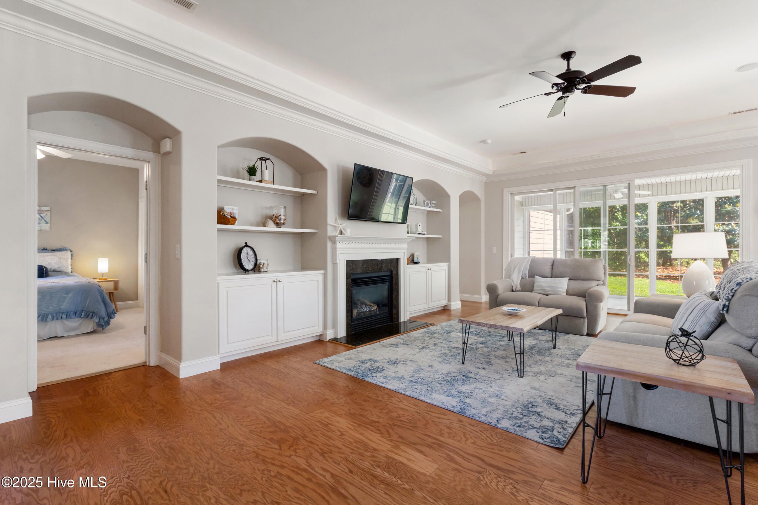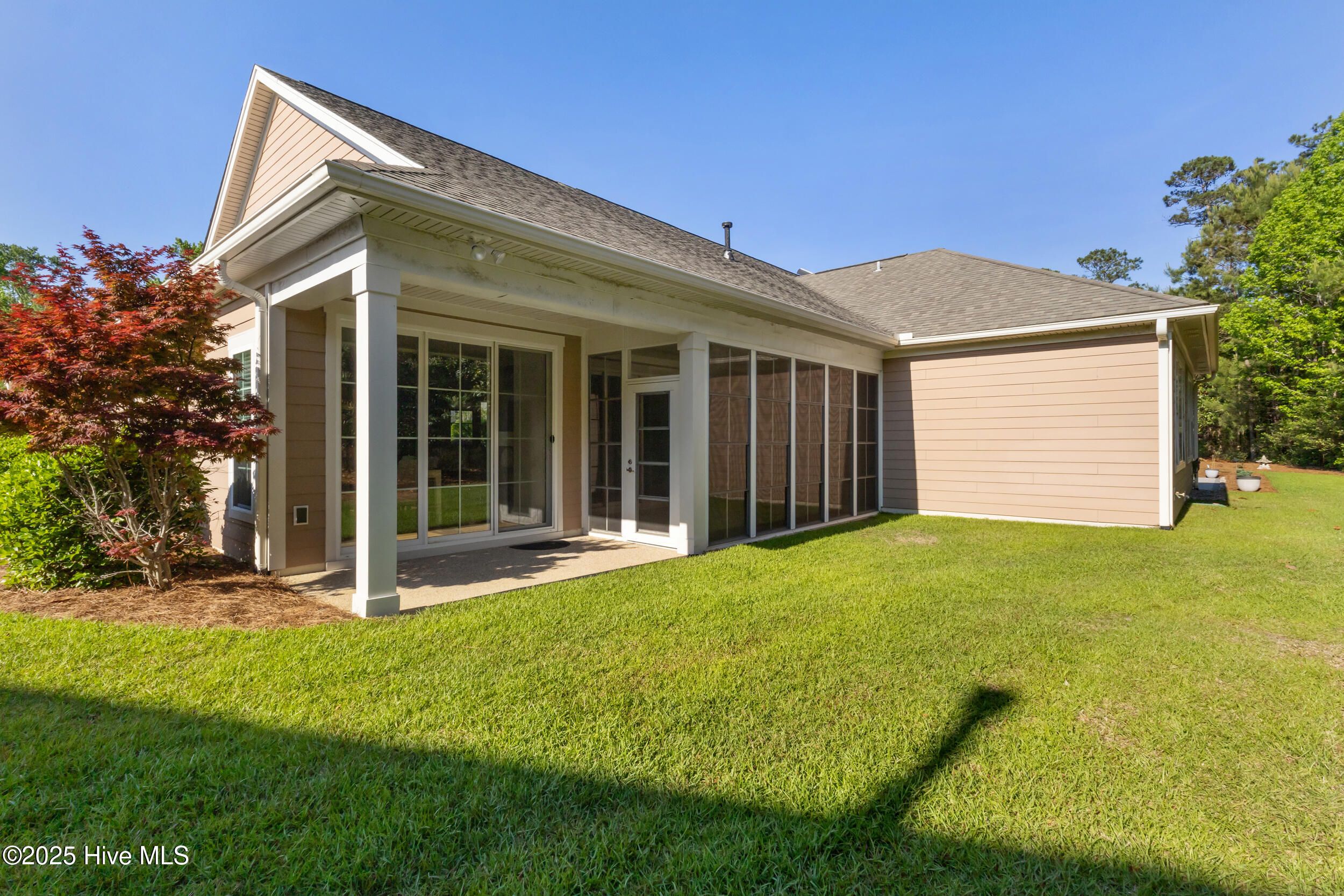 Easy living in this end unit townhome located in the highly desirable Evangeline neighborhood in Brunswick Forest. The thoughtful design ensures privacy and a sense of space. You'll love the gated courtyard entry with lovely landscaping conveniently taken care of for you. From the covered front porch, enter the foyer & admire the 10' ceilings in this open layout with wrap-around lighted tray ceiling. Hardwood floors throughout the main living areas & quality craftsman details in the crown molding, trim work & archways. The living room features a natural gas fireplace with mantel flanked by custom built-ins. The kitchen has granite countertops, tile backsplash, under cabinet lighting, an island with bar seating, & stainless steel appliances. Cabinets recently painted a fresh white. The owner's suite features 2 walk-in closets & private bath with 2 sinks, walk-in Roman shower, water closet & linen closet. Two additional bedrooms with en suite baths, a large laundry room with sink & storage closet complete the ground level. Upstairs is the 4th bedroom with a full bath + attic access. Open the telescoping glass doors to the tiled screen porch with EZ Breeze enclosure to enjoy as a sunroom year round. The backyard has mature landscaping and shade trees with peaceful nature views from the screened porch & covered patio. You are able to fence in a small area in the back if desired with HOA approval. Fabulous location in the community close to the Fitness & Wellness Center. Resort style amenities include: 3 outdoor pools, indoor pool + hot tub, 3 fitness centers, dog park, tennis, pickleball & basketball courts, playground, splash pad, walking/biking trails, lakes, and social activities. Cape Fear National Golf course with pro shop & restaurant offers optional membership. Only minutes to shopping, dining, golf, House of Pickleball, medical facilities, & only 30 minutes to area beaches. You'll love calling Brunswick Forest home!