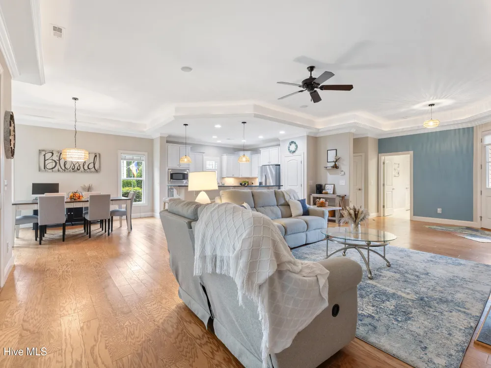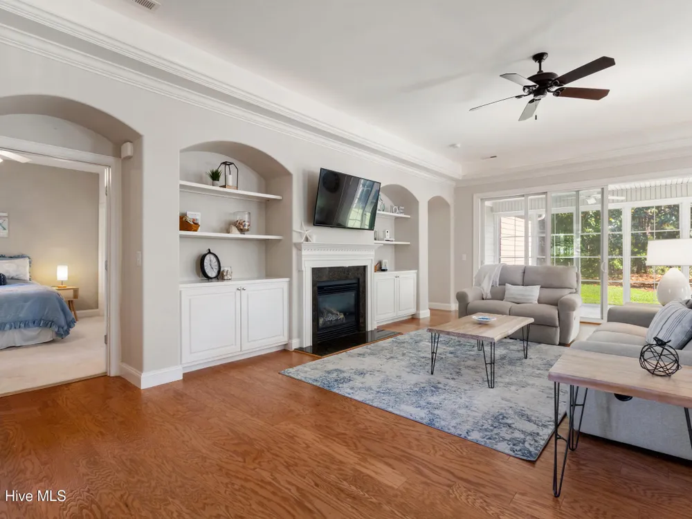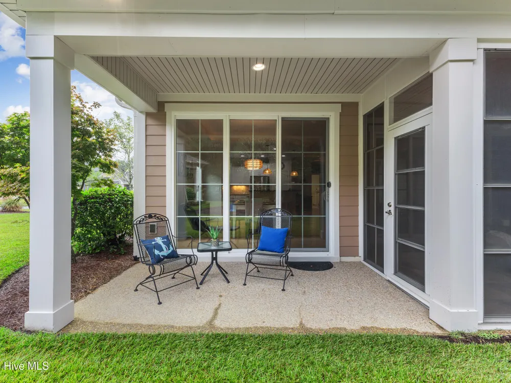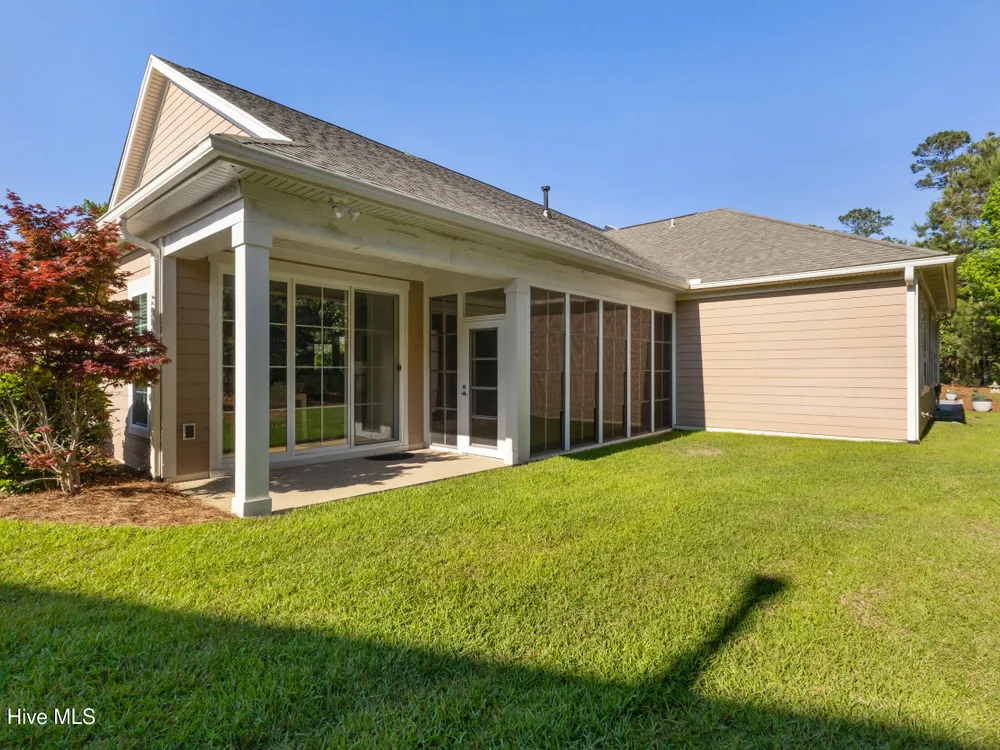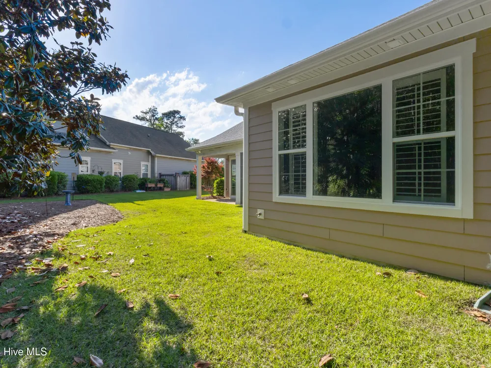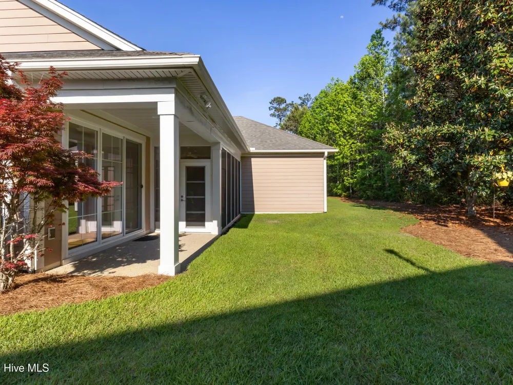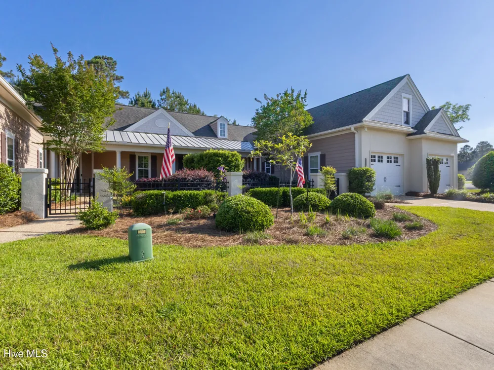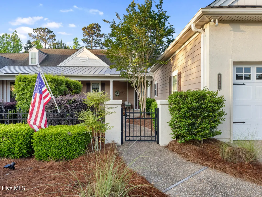 No worries in this luxury townhome with lawncare, exterior maintenance & insurance covered! The thoughtful design ensures privacy + a sense of space, making it perfect for those who seek the comfort of a single-family home without the maintenance demands. Enter the gated courtyard with landscaping conveniently taken care of for you. From the covered front porch, enter the foyer & admire the 10' ceilings in this open layout with wrap-around lighted tray ceiling. Hardwood floors throughout the main living areas & quality craftsman details in the crown molding, trim work & archways. The living room features a natural gas fireplace with mantel flanked by custom built-ins. The kitchen has granite countertops, tile backsplash, under cabinet lighting, an island with bar seating, & stainless steel appliances. Cabinets updated to a bright white. Open the telescoping glass doors to the tiled screen porch with EZ Breeze enclosure to enjoy as a sunroom year round. The backyard has mature landscaping and shade trees with peaceful nature views from the screened porch & covered patio. The owner's suite features 2 walk-in closets & private bath with 2 sinks, walk-in Roman shower, water closet & linen closet. Two additional bedrooms with en suite baths, a large laundry room with sink & storage closet complete the ground level. Upstairs is the 4th bedroom with a full bath + attic access. One year 2-10 Home Warranty included for buyers. Fabulous location in the community close to the Fitness & Wellness Center. Resort style amenities include: 3 outdoor pools, indoor pool + hot tub, 3 fitness centers, dog park, tennis, pickleball & basketball courts, playground, splash pad, walking/biking trails, lakes, social activities, and a small boat launch on Town Creek. Cape Fear National Golf course with pro shop & restaurant offers optional membership. Only minutes to shopping, dining, golf, HOP, medical facilities, & only 30 minutes to area beaches. You'll love calling Brunswick Forest home