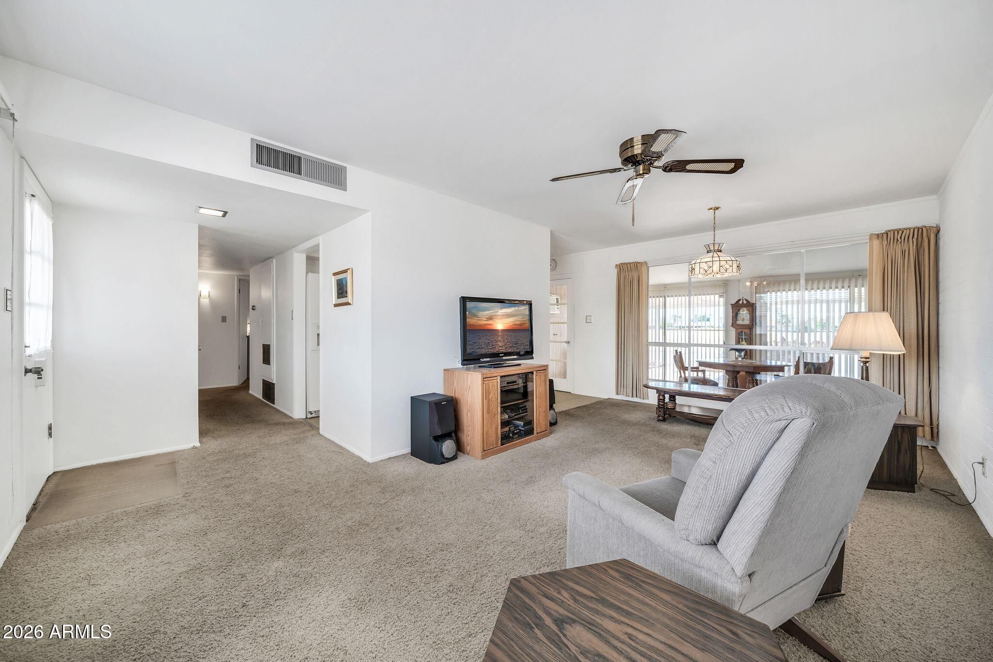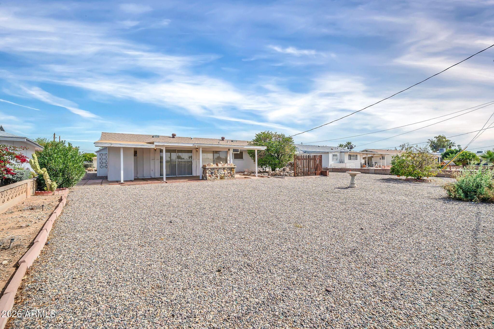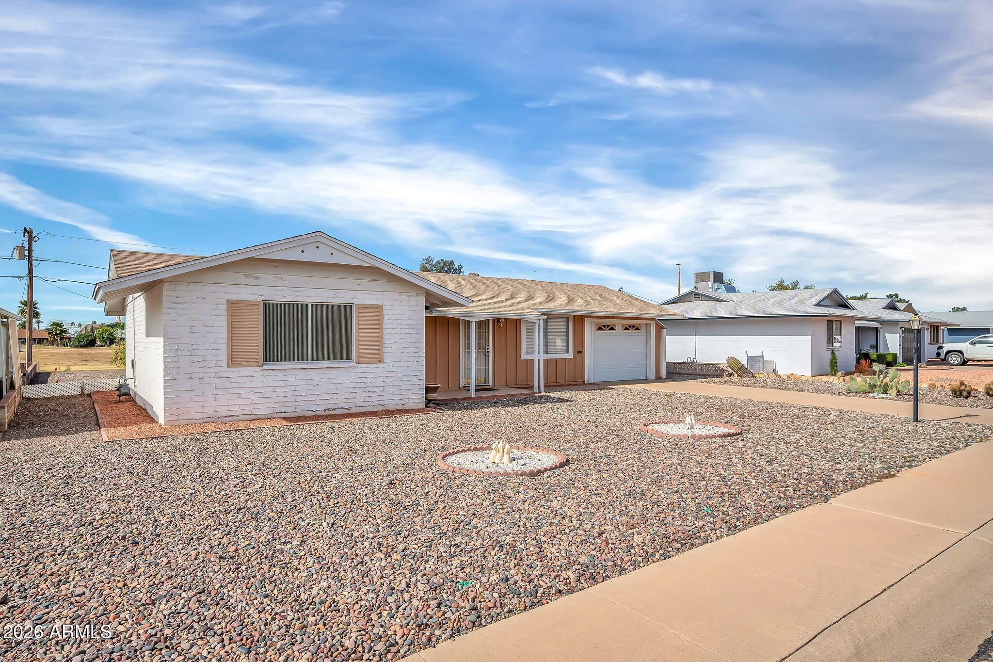 Opportunity knocks in sought-after Sun City, Arizona! This 2-bedroom, 2-bath home sits on a premium golf course lot with wide-open views and stunning Arizona sunsets right from your backyard. Inside, you'll find a spacious and functional layout filled with natural light. The living area flows seamlessly into the dining space and extended patio access, creating an ideal setup for indoor-outdoor living. The kitchen offers generous cabinet storage and workspace, ready for your personal updates and design vision. Step outside to a large covered patio overlooking the fairway -- the perfect place for morning coffee, entertaining guests, or simply enjoying the peaceful golf course setting. The low-maintenance desert landscaping keeps upkeep simple while maximizing usable outdoor space. Additional features include: 1-car garage, dedicated workshop/hobby space, extended covered patio, quiet interior street, prime golf course exposure. Whether you're looking for a winter retreat, full-time residence, or renovation opportunity, this property offers exceptional potential in one of Arizona's most established active adult communities. Sun City residents enjoy 7 recreation centers, multiple golf courses, heated pools, pickleball, fitness centers, clubs, entertainment, and more -- all with low property taxes.