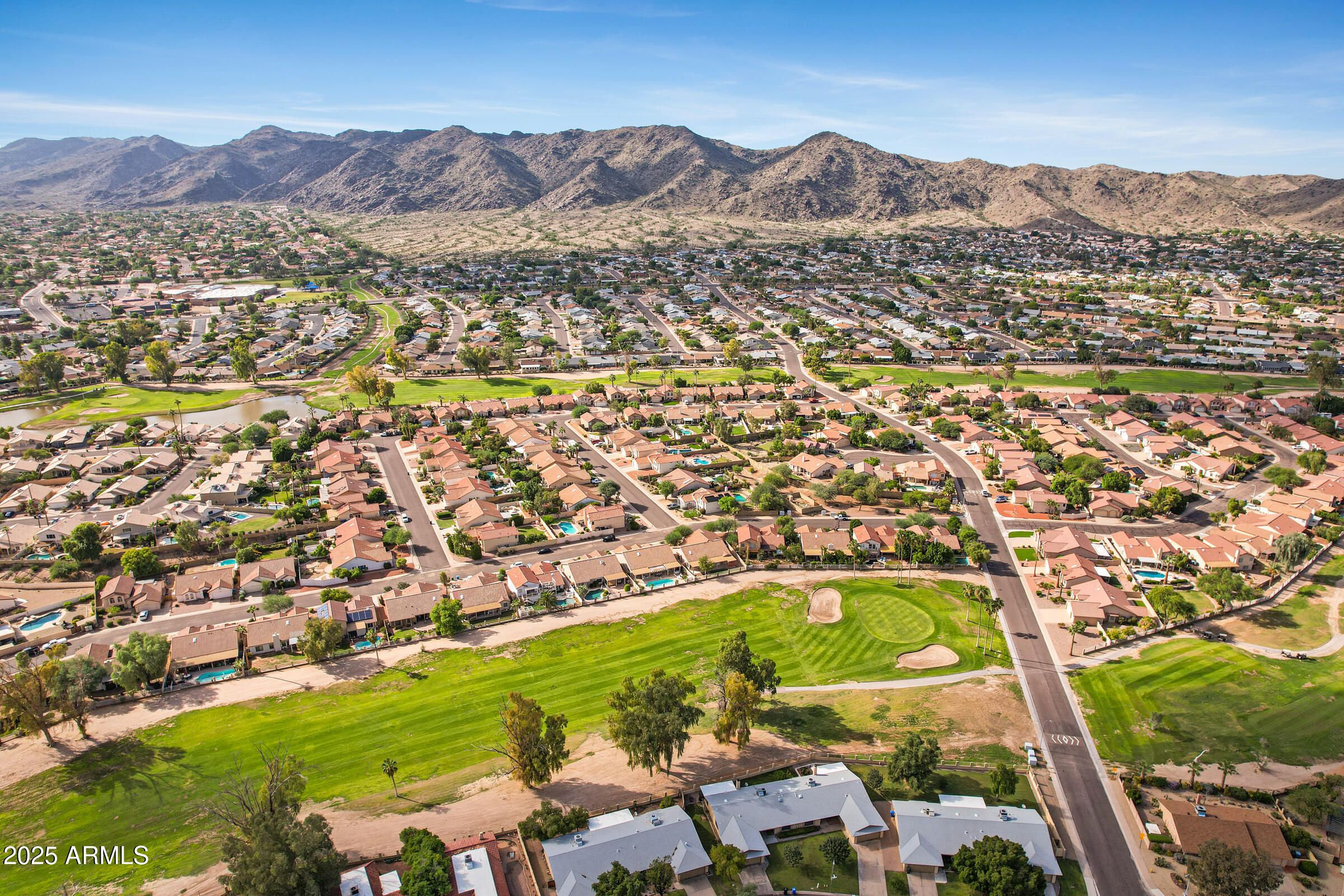 Nestled on a premium golf course lot, this 3 bed / 2 bath home in Ahwatukee's Center Court offers stunning views with mountains in the front and the fairway in the back. Recent updates include a new HVAC system, water heater, water softener, and refreshed landscaping, making this home move-in ready. The inviting floor plan features tile and wood flooring in the main living areas, soft carpet in the bedrooms, and neutral tones throughout. A spacious family room opens to the kitchen, where you'll find granite countertops, a large center island, crisp cabinetry, and stainless steel appliances. The primary suite is a true retreat, featuring an en-suite bath with a soaking tub, walk-in shower, dual vanities, and a generous walk-in closet. Two additional bedrooms offer ample space for family or guests. Step outside to enjoy a low-maintenance backyard with synthetic grass and sweeping golf course views. The oversized 3-car garage includes a unique pass-through bay door leading to the backyard, which is ideal for extra parking, storage, or even a boat. All of this in a desirable community just minutes from top-rated schools, shopping, dining, and I-10 access.