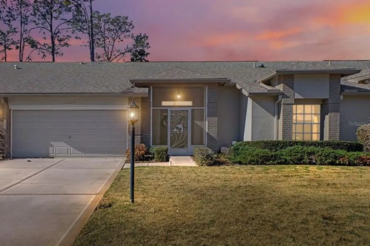 Live the Florida golf course lifestyle in the highly sought-after 55+ community of Heritage Pines, where maintenance-free living, gated security, and resort-style amenities come together for everyday comfort and convenience. Inside, this light-filled home offers an inviting, easy-flow layout enhanced by solar tubes that bring in abundant natural light. The welcoming front screened porch and double front doors create a warm first impression, while the interior provides comfortable living spaces designed for both relaxation and entertaining. A new roof installed in 2021 adds peace of mind. Enjoy indoor-outdoor living with an enclosed back lanai overlooking a peaceful yard, perfect for year-round enjoyment. The front screened porch offers an additional space to unwind and enjoy the Florida breeze. Heritage Pines residents enjoy access to a championship golf course, active clubhouse, pool, fitness center, and a vibrant calendar of social activities, all within a gated, guarded community. Conveniently located near shopping, dining, additional golf courses, and Florida’s beautiful parks, with quick access to the Suncoast Parkway for easy travel to Tampa, St. Pete, beaches, and airports. Offering a blend of comfort, low-maintenance living, and an active lifestyle, this home is an excellent choice for a full-time residence or seasonal Florida retreat.