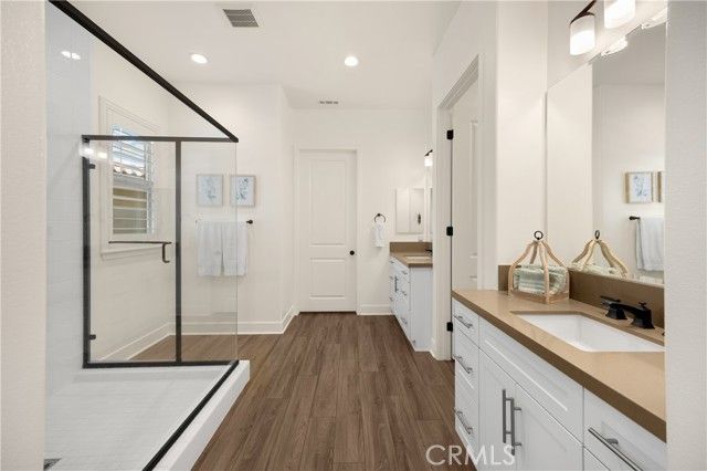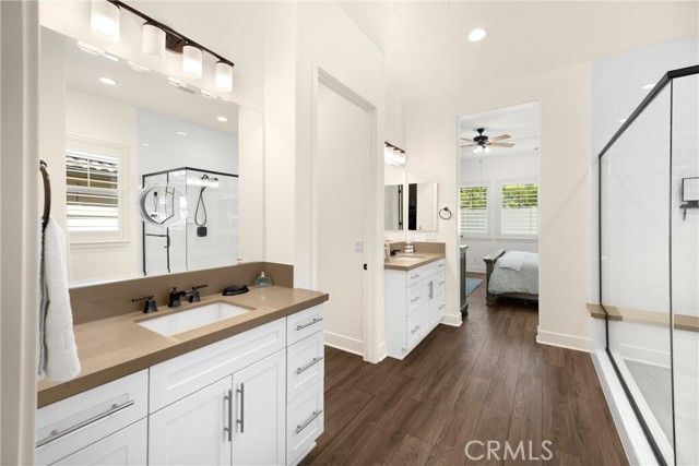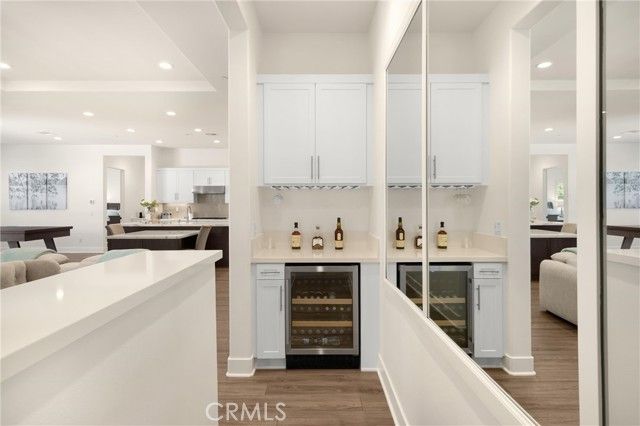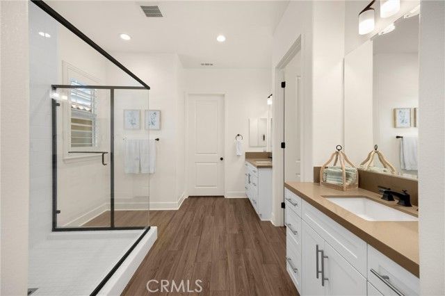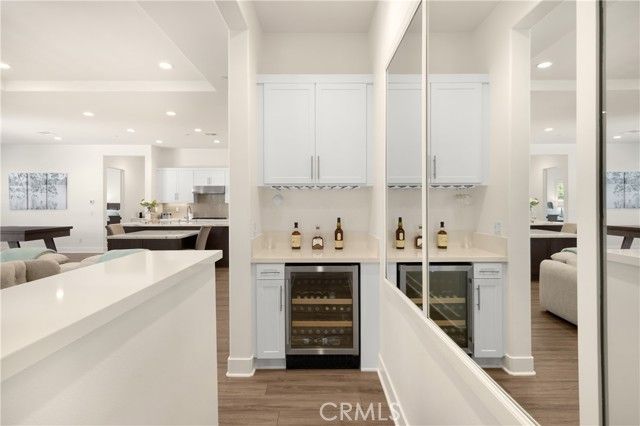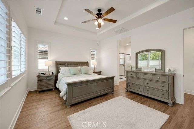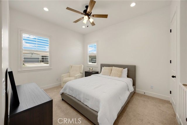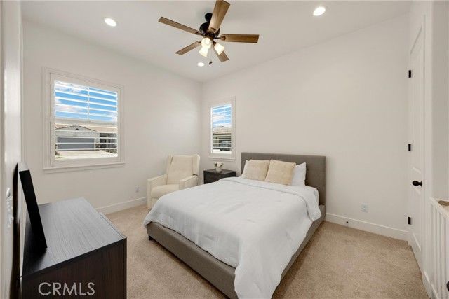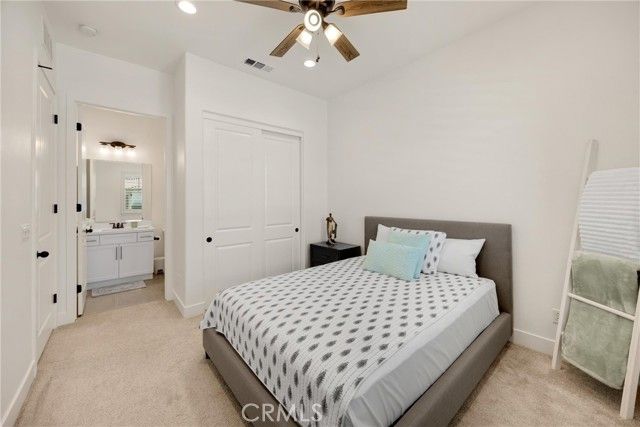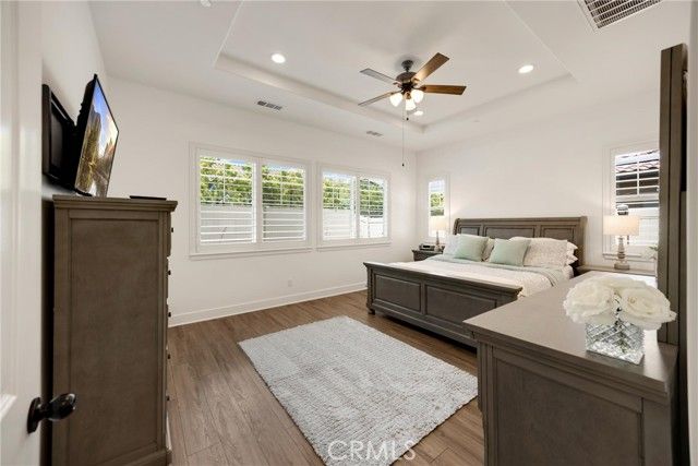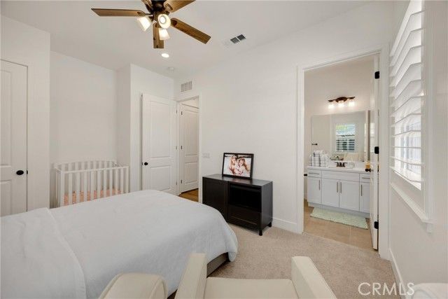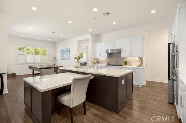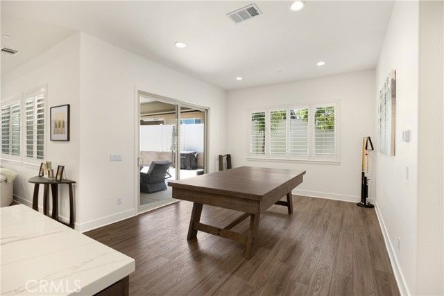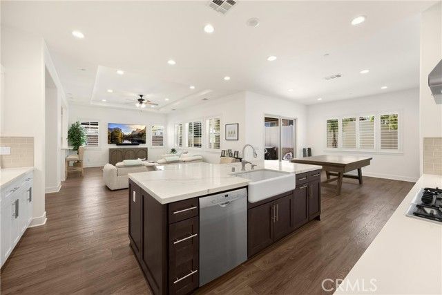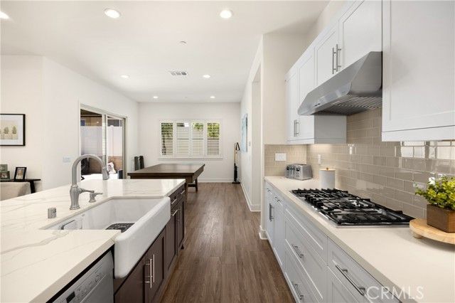 Welcome home to 11638 Oakton Way, a stunning single-story corner lot home nestled in Corona’s premier 55+ gated community of Terramor, where the views are unmatched, and the lifestyle is second to none. This meticulously maintained home feels brand new and offers a perfect blend of luxury, comfort, and entertainment.Step inside and fall in love with the open concept floor plan featuring 3 spacious bedrooms, each with its own private en suite bathroom, a powder bath for guests, and a versatile flex room with glass doors, ideal for an office, craft room, or game space. The chef’s kitchen is the heart of the home, complete with quartz countertops, sleek white thermofoil cabinetry, built in stainless steel appliances, a walk in pantry, gorgeous blue tile backsplash, and a massive island with an extended table height breakfast bar, perfect for morning coffee or entertaining guests. Adjacent to the kitchen is a dining area that’s large enough for a formal table, or even a pool table! Add in the custom full-size bar with a wet bar sink, beverage fridge, and barstool peninsula, and this home becomes an entertainer’s dream.Seamlessly transition to indoor-outdoor living in the beautifully designed California room, complete with electric fireplace, ceiling fans, TV hookup, and a motorized floor to ceiling sunscreen for year-round enjoyment. The backyard offers breathtaking mountain views, stamped concrete, a second covered patio, low-maintenance landscaping, and even a storage shed. Throughout the home, you’ll find luxury wood vinyl plank flooring, soaring 10’ ceilings, and elegant plantation shutters. The spacious primary suite includes a spa-like en suite bathroom with an oversized walk-in shower, dual vanities, and a huge walk-in closet. Additional features include a 13 panel Sunrun solar system, drought tolerant landscaping with turf, whole house water softener, and a 2-car garage with 220V- perfect for electric vehicles. Living in Terramor is more than just owning a home, it’s an experience. Residents enjoy resort style amenities including three pools (one adult-only), spa, gym, sauna, tennis and pickleball courts, bocce ball, dog parks, scenic walking trails, a clubhouse, outdoor cooking spaces, and even a full bar and event room. All just minutes from the 15 freeway for easy access to everything. This is more than a home, this is your next chapter in luxury living.