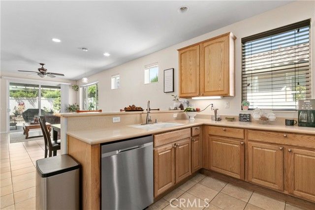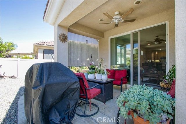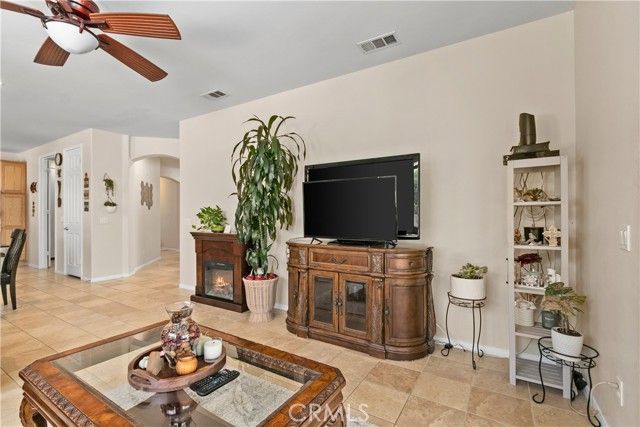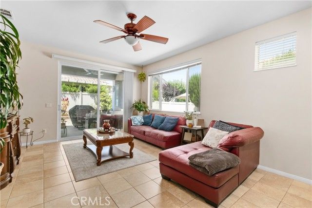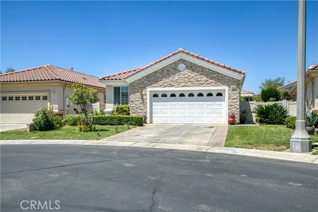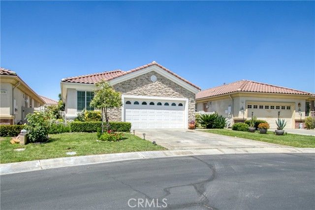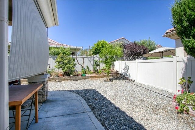 Discover refine living in this sophisticated one story residence in the highly desirable Solera Oak Valley Greens Community. A vibrant 55+ community. The sliding glass door leads to the covered patio and generously lot with several fruit trees that includes a peach tree, guava tree and plums tree, great space to entertain and BBQ. The kitchen opens in to the living space and adjacent is the inside laundry room. Besides the 2 bedrooms the floor plan comes with a den/office space that is perfect for hobby room or an extra room for company to stay. Two car garage and driveway. The club house has resort style amenities including a club house, pool, fitness center. library, billiard room, and pickleball courts. Conveniently located near freeway access, only minutes away to world-class attractions in the palm springs area, casino Morongo and famous Cabazon Outlet stores.