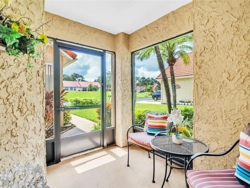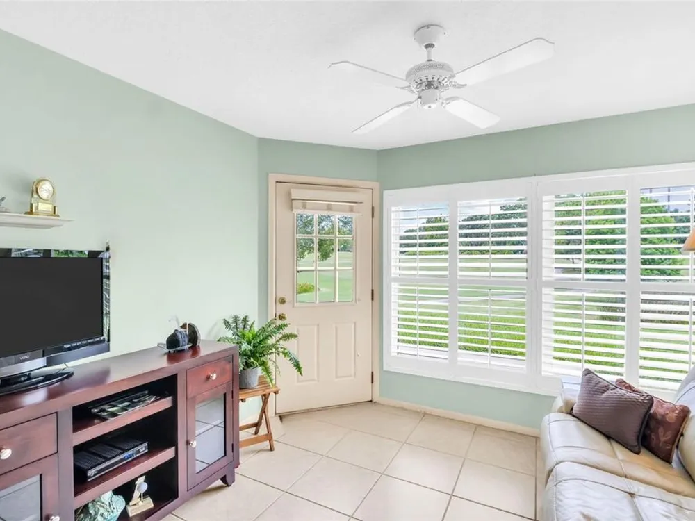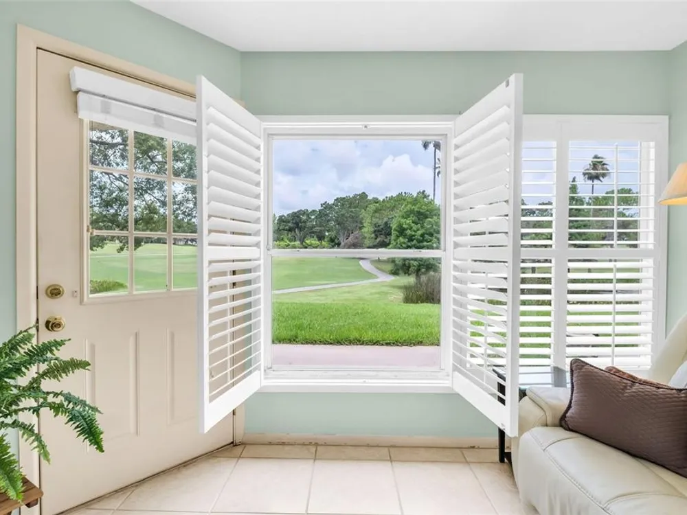 Nestled in the highly sought-after Golf View Villas of Highland Lakes, Palm Harbor’s premier 55+ golf and lakefront community, this beautifully maintained villa offers the perfect blend of comfort, convenience, and stunning natural beauty. Situated on an elevated lot ideally positioned between two tranquil ponds on the Blue Course, this home boasts a desirable split and open floor plan designed to maximize the breathtaking views. Upon entering through the screened front entry, you'll immediately appreciate the pride of ownership evident in every detail—from the rich hardwood and beautiful tile flooring to the neutral color palette and abundant natural light. The spacious main living area flows seamlessly into the bright, heated and cooled Florida room, which opens directly to the back patio—perfect for year-round relaxation while enjoying expansive golf course vistas. The kitchen is both functional and inviting, featuring a pass-through to the main living area for easy entertaining, ample cabinetry, generous countertop space, and a cozy eat-in area perfect for casual dining. The oversized 1.5-car garage is conveniently accessible from the kitchen and big enough for both your car & golf car too. The master suite is a serene retreat, offering picturesque green views, a large walk-in closet, and an en-suite bath with a walk-in shower. Tucked away at the end of a private street with no through traffic, the home provides exceptional privacy and peacefulness. With hurricane shutters for all windows and a location safely above the flood plain, this villa offers both security and peace of mind. Residents of Golf View Villas enjoy a maintenance-free lifestyle with a low monthly service fee of just $265, which covers lawn care, irrigation and sprinkler maintenance, tree trimming, exterior painting, trash collection, and even cable TV and internet. Unlike many other communities, Highland Lakes club membership is included with purchase, granting access to incredible resort-style amenities such as FREE & unlimited green fees on three private executive golf courses, tennis, pickleball, fitness programs, arts and crafts studios, woodworking shops, and a packed calendar of social events at the main clubhouse. The Lake Tarpon Lodge offers a second heated pool, party pavilion, fishing pier, and community pontoon boats. There’s even free RV and boat storage with a ramp, dock, and kayak storage. With close proximity to Gulf beaches, scenic trails, restaurants, shopping, cultural attractions, top-tier medical services, and two international airports, this villa truly offers everything needed to enjoy the best years of your life in style and comfort. Don’t wait—this is your opportunity to live the Florida lifestyle you've been dreaming of.