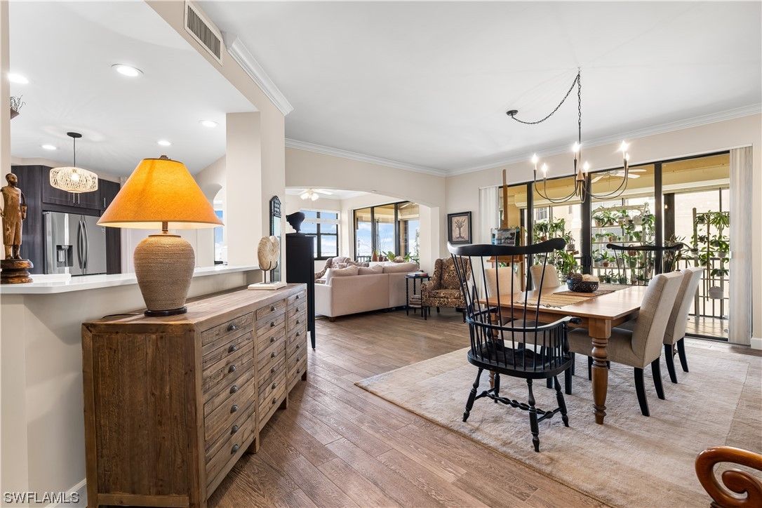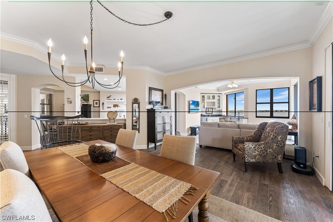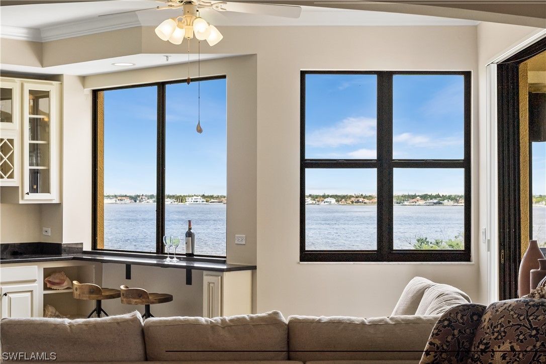 Rare 5th-Floor End Unit | Unobstructed River Views | Alhambra II Floorplan Experience luxury high-rise living at its finest in Palmas Del Sol, located within the prestigious Gulf Harbour Yacht & Country Club. This remodeled 5th-floor end unit showcases panoramic views of the Caloosahatchee River, the 3rd fairway, and the downtown skyline, offering a truly elevated lifestyle. Residence Highlights: Remodeled Chef’s Kitchen: Custom cabinetry, quartz countertops, center island, and a wet bar with matching quartz surfaces—perfect for entertaining. Spacious 2-Car Enclosed Garage: Under-building and conveniently located on the 2nd level. Expansive Lanai: Ideal for relaxing or hosting guests, complete with hurricane shutters for added protection and peace of mind. Primary Suite Retreat: Enjoy lanai access, a remodeled ensuite bath with dual sinks, and a spa-inspired walk-in shower with dual showerheads. Guest Accommodations: Two generously sized guest bedrooms share a full bath with a shower/tub combination. Elegant Finishes Throughout: 8-ft solid core doors, crown molding, and stylish flooring enhance the refined ambiance. Community & Building Enhancements: Recent upgrades include new roofs, exterior paint, garage improvements, and new screens—all fully funded and 100% covered by insurance. Enjoy resort-style amenities: sparkling pool and spa, gas grills, community room, billiards, and a private conference room. Scenic riverfront boardwalks provide the perfect setting for peaceful evening walks. Private memberships available for a separate purchase to enjoy all the amenities that Gulf Harbour has to offer. Don’t miss this rarely available end unit in one of Gulf Harbour’s most sought-after towers. Schedule your private showing today and be sure to view the amazing walk-through video!
