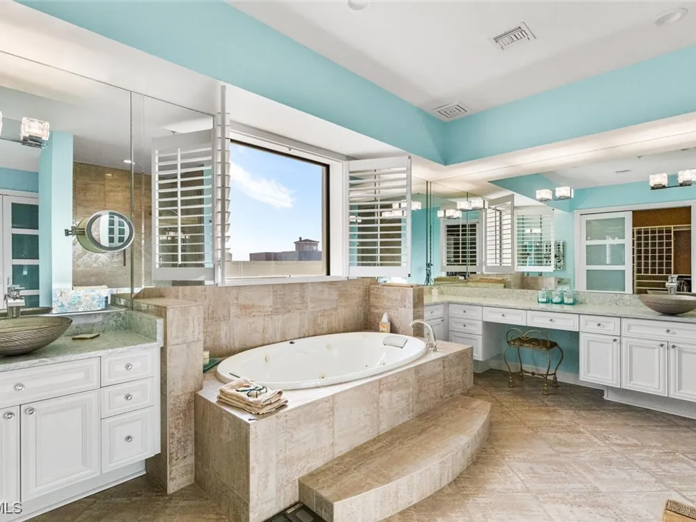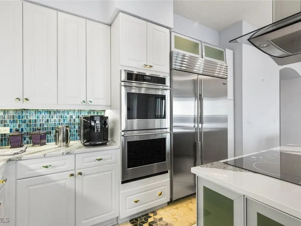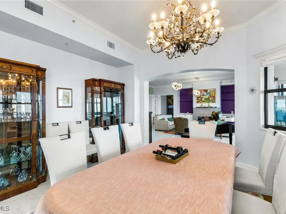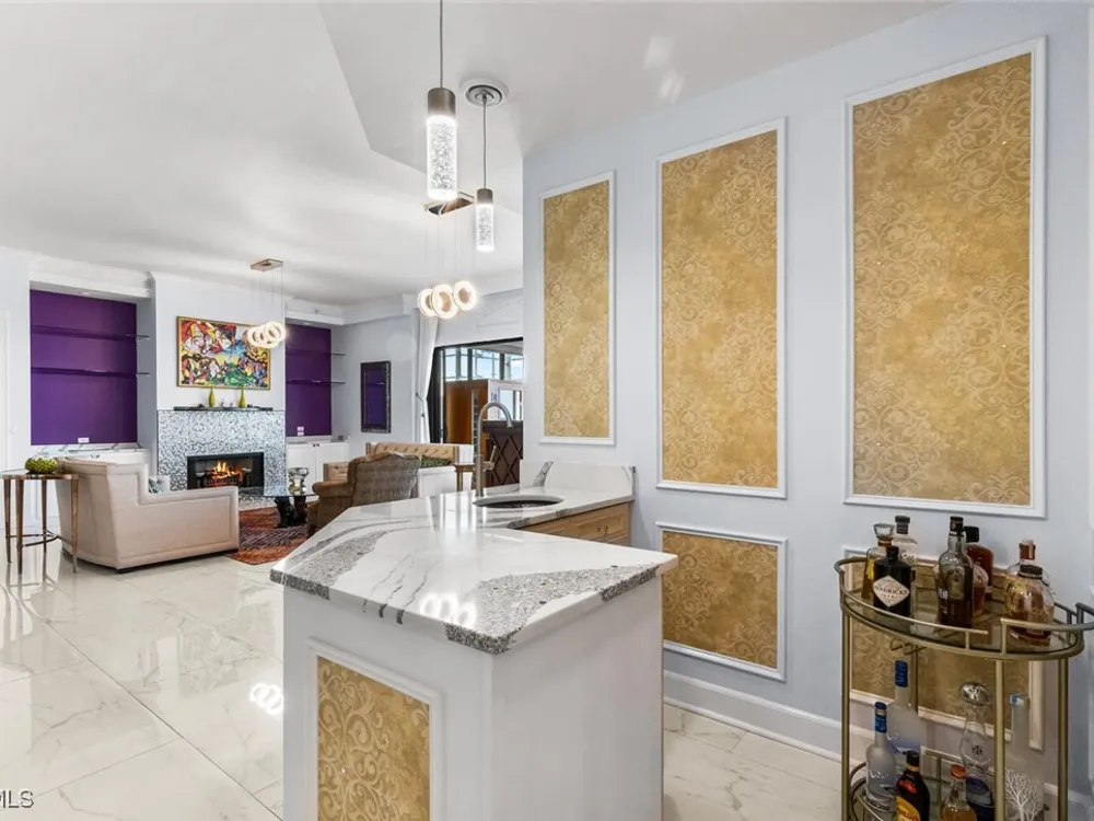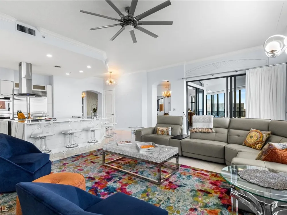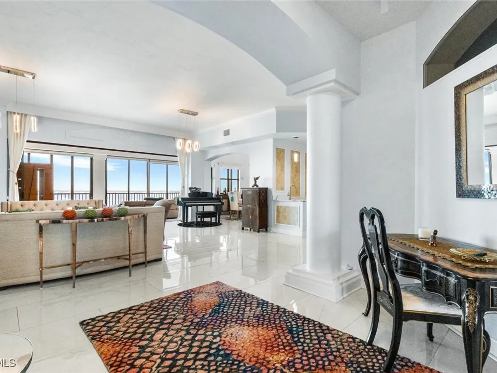 Welcome to this spectacular 8th-floor penthouse in Palmas Del Sol, located within the prestigious Gulf Harbour Yacht & Country Club. Offering a total of 4,421 square feet, this turnkey furnished property is the epitome of sophistication and comfort. This meticulously designed penthouse features 3 spacious bedrooms and 3.5 beautifully appointed bathrooms, each bedroom with its own ensuite bathroom. The grand master suite includes an expansive 420-square-foot private, open-air patio, providing the perfect space for relaxation. The ensuite bathroom is a serene retreat, complete with a jetted tub, large shower, dual sinks, and two walk-in closets. The gourmet kitchen is a chef’s dream, outfitted with top-of-the-line GE Monogram appliances, including a 48-inch Subzero refrigerator, double wall oven, induction cooktop, and microwave. A KitchenAid dishwasher and 48-bottle wine fridge ensure every convenience is at your fingertips. The kitchen flows seamlessly into the wet bar area, perfect for entertaining guests. Adjacent to the kitchen, a formal dining room offers an elegant space for hosting memorable dinners. The 700-square-foot lanai has been thoughtfully converted into additional living space, offering panoramic views of the Caloosahatchee River from every room. The residence features stunning 48-inch floor tiles, adding a touch of elegance to the expansive living areas. This property also includes a two-car garage conveniently located under the building, ensuring secure and private parking. Residents of Palmas Del Sol enjoy exclusive amenities separate from the Gulf Harbour Yacht & Country Club offerings. These include a resort-style pool and spa, a clubhouse with billiards, a meeting room, a kitchenette, a big-screen TV, and a BBQ area, providing everything needed for a vibrant and social lifestyle. Gulf Harbour Yacht & Country Club offers the ultimate in luxury living with access to world-class amenities, including a private marina, championship golf course, fitness center, and dining options. With its prime location, breathtaking views, and unmatched amenities, this penthouse is a true gem in one of the most sought-after communities in Southwest Florida.
