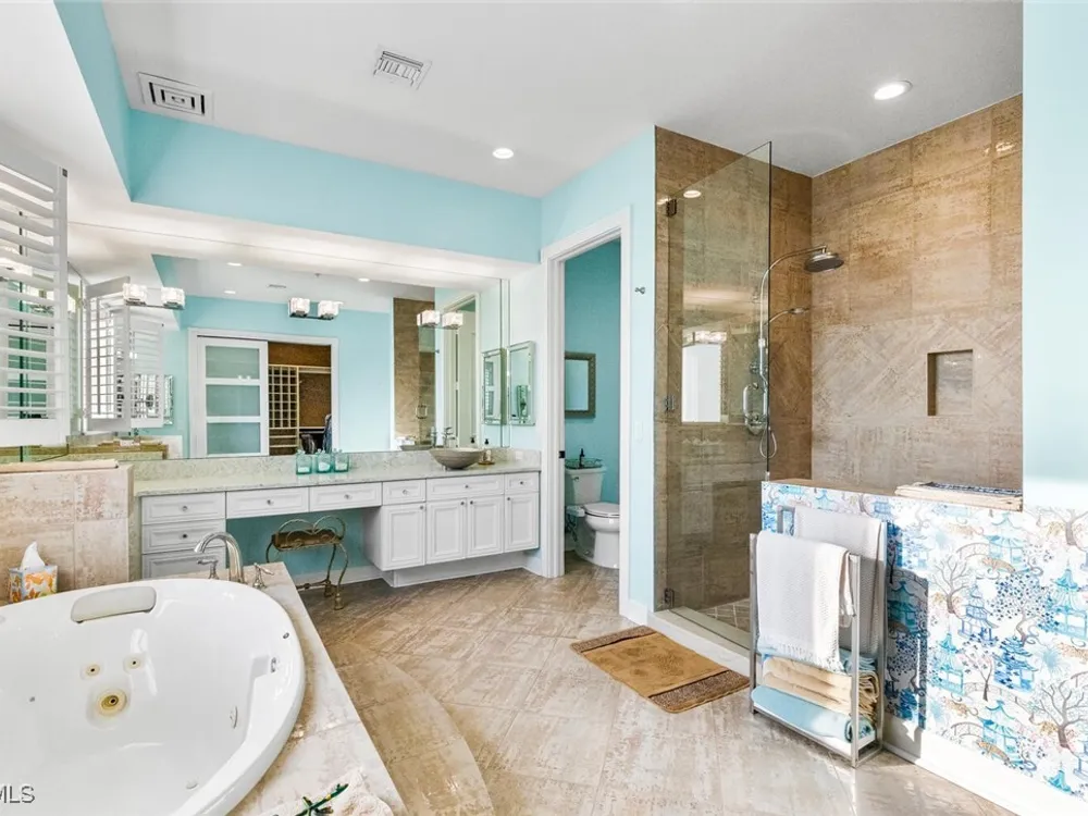 - Wet Bar, Breakfast Bar, Bidet, Bathtub, Closet Cabinetry, Separate/Formal Dining Room, Dual Sinks, Entrance Foyer, French Door(s)/Atrium Door(s), Fireplace, High Ceilings, Jetted Tub, Kitchen Island, Multiple Shower Heads, Custom Mirrors, Multiple Primary Suites, Pantry, Sitting Area In Primary Bedroom, Separate Shower, Cable TV, Walk-In Pantry