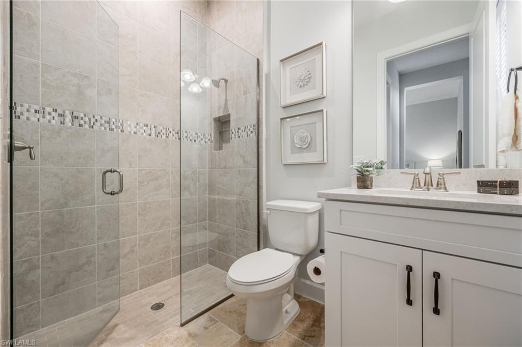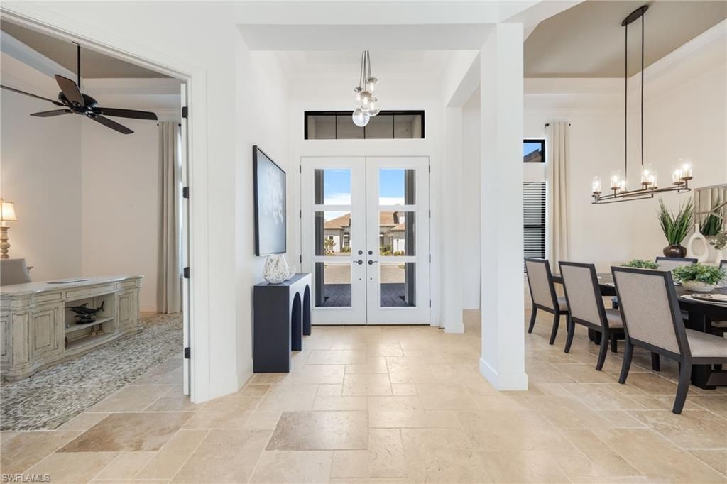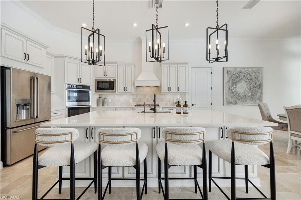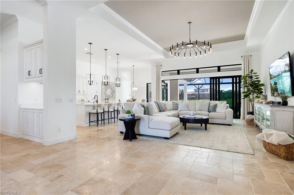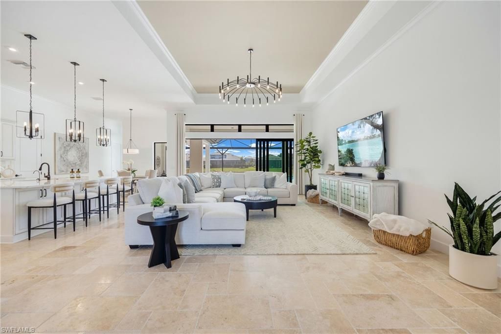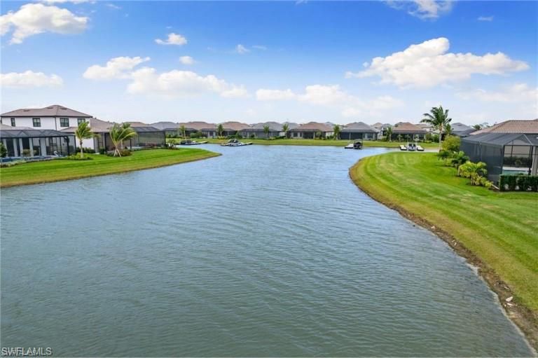YES, you can install your own private boat dock!! Discover the elegance and comfort in this exquisite Beacon model with a stunning West Indies elevation, perfectly situated on a private cul-de-sac for ultimate tranquility. Designed for luxury living, this home boast of 3 bedroom plus den and oversized bonus room, offering an impeccable blend of style, functionality, and top tier finishes. This home has an open airy floor plan, where soaring tray ceilings and Southern exposure bathe the space in natural light. The chef's kitchen is a masterpiece, featuring luxurious quartz countertops, custom cabinetry, top-of-the-line GE appliances, gas cooktop and double wall oven and double wine coolers. The master suite is a serene retreat, complete with spacious walk-in closets, spa-like ensuites with dual sinks, soaking tub and separate shower. The expansive 2622 sq ft lanai is a true showstopper with spectacular saltwater pool and infinity spa, extravagant marble decking set on poured concrete. This home is built for security and convenience offering impact-resistant doors and windows with a full house Generac generator. This lot allows you to add your own boat dock for quick access to Lake Como (perfect for boating and fishing) Located just minutes from RSW Airport and Gulf Coast Town Center. Esplanade Lake Club, where world class amenities include, state of the art fitness center, resort style pool and spa, Tennis and pickleball, white sand beaches, Bahama restaurant, boat launch and more! Don't miss this incredible opportunity to make this dream home yours! Call today for a private showing.