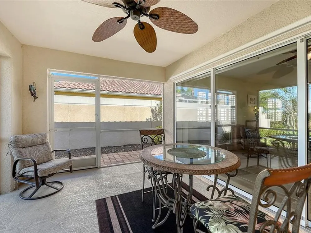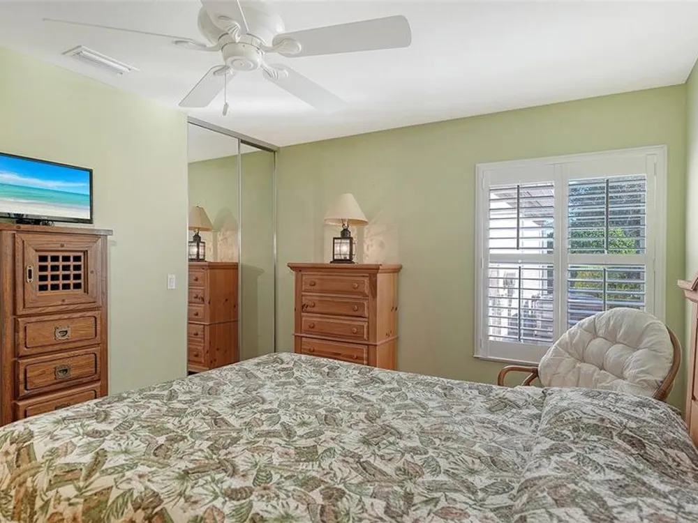 This is the One!!! Welcome to your dream retreat in the heart of Palmer Ranch, Sarasota! This beautifully maintained 2-bedroom, 2-bath villa offers a serene pond view and comes turnkey furnished, ready for you to move right in. Step inside to discover soaring high ceilings, elegant plantation shutters, and rich wood flooring in the bedrooms that add warmth and charm. The open-concept living area is complemented by a brand-new GE refrigerator and microwave, offering modern convenience in a well-appointed kitchen. AC was replaced in 2021. Enjoy peace of mind with hurricane shutters, and appreciate the ease of a spacious 2-car garage. The community offers resort-style amenities, perfect for both seasonal and full-time living. Located just minutes from the world-famous Siesta Key Beach, Isles of Sarasota is known for its lush landscaping, walking trails, and proximity to shopping, dining, and recreation. Don’t miss this opportunity to own a piece of paradise in one of Sarasota’s most sought-after communities!