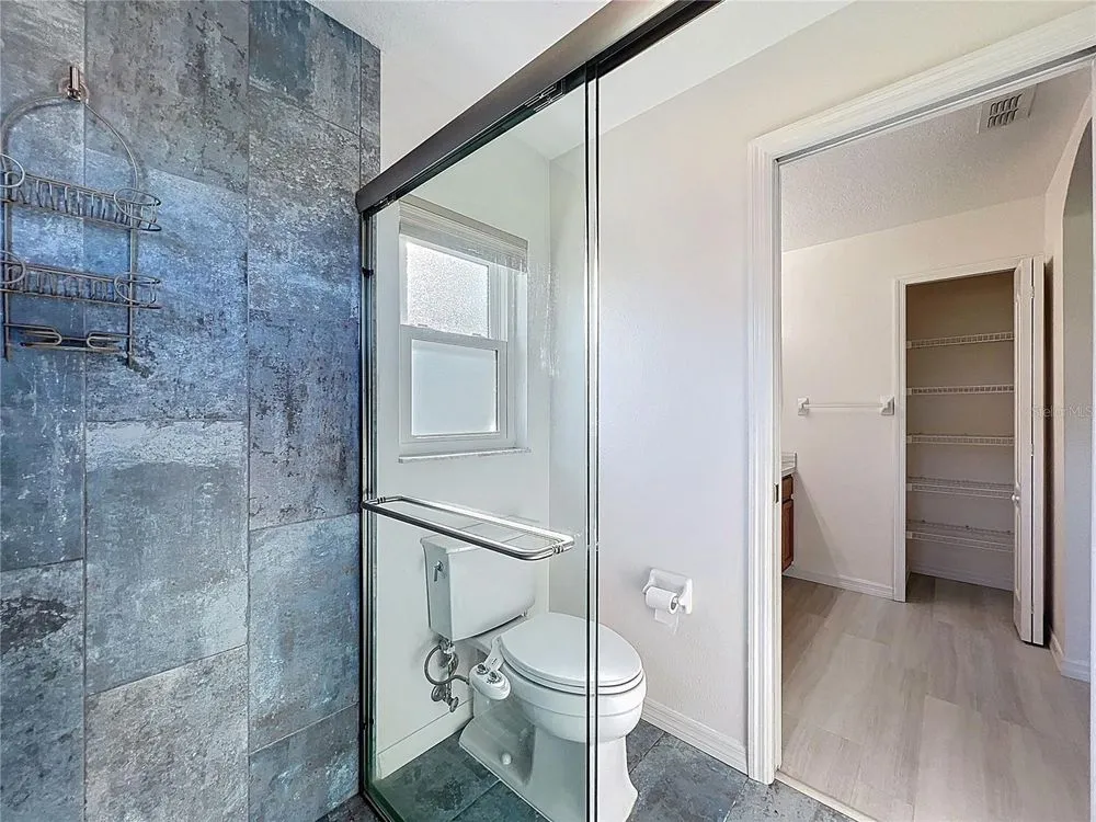 - Built-in Features, Ceiling Fan(s), Eat-in Kitchen, High Ceilings, Open Floorplan, In-Wall Pest Control, Main Level Primary, Thermostat, Walk-In Closet(s), Window Treatments