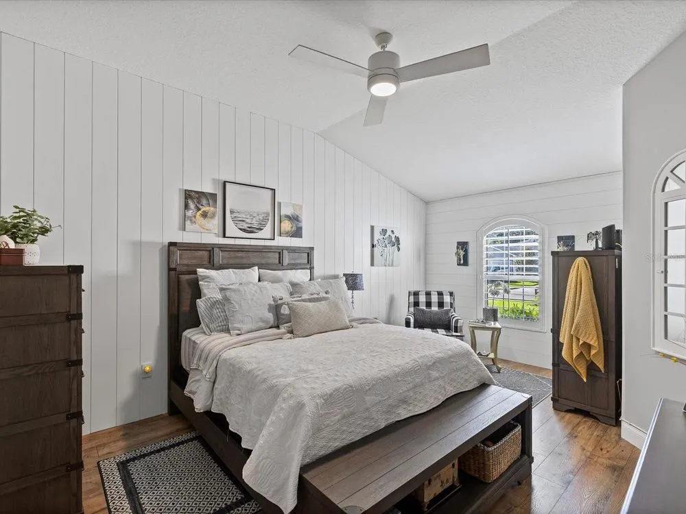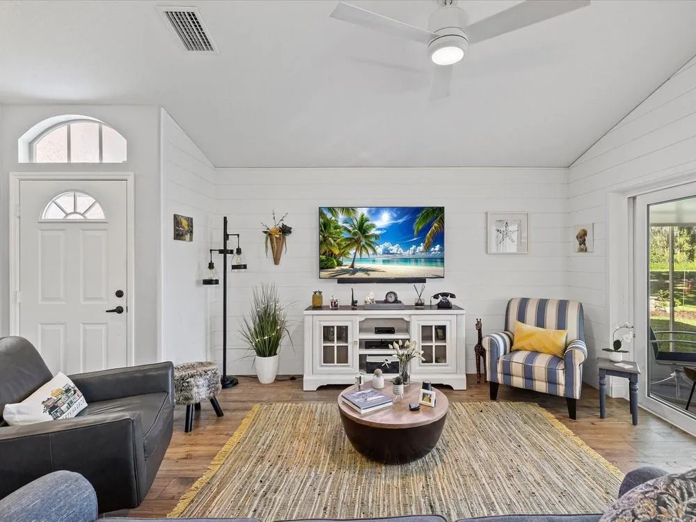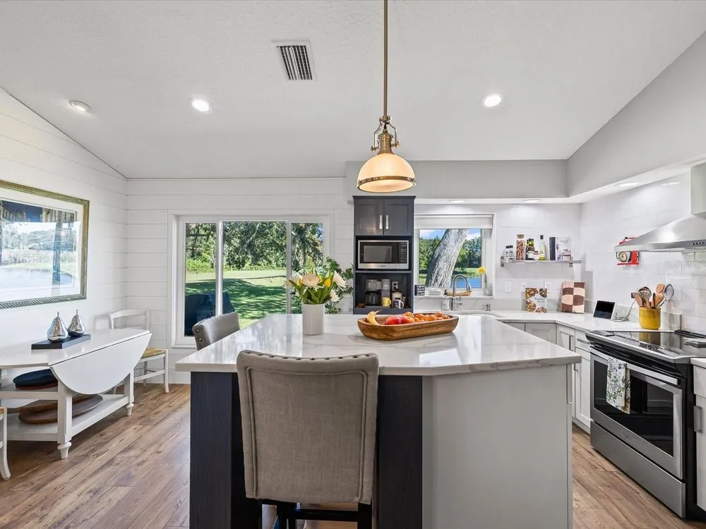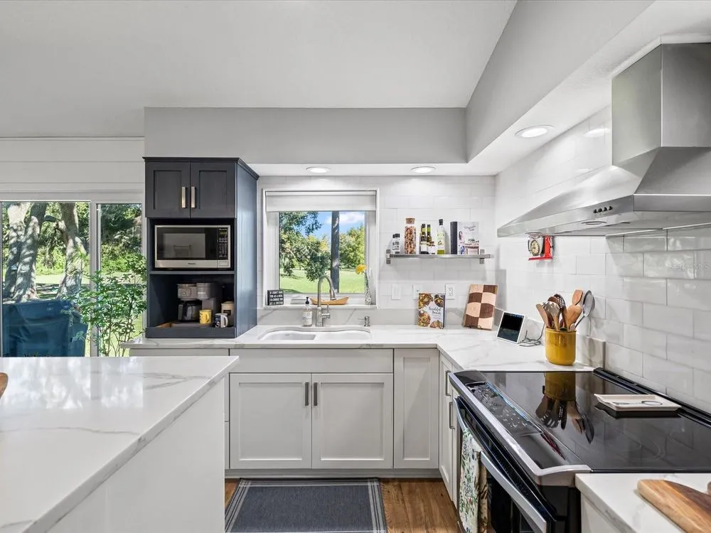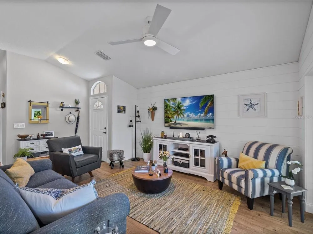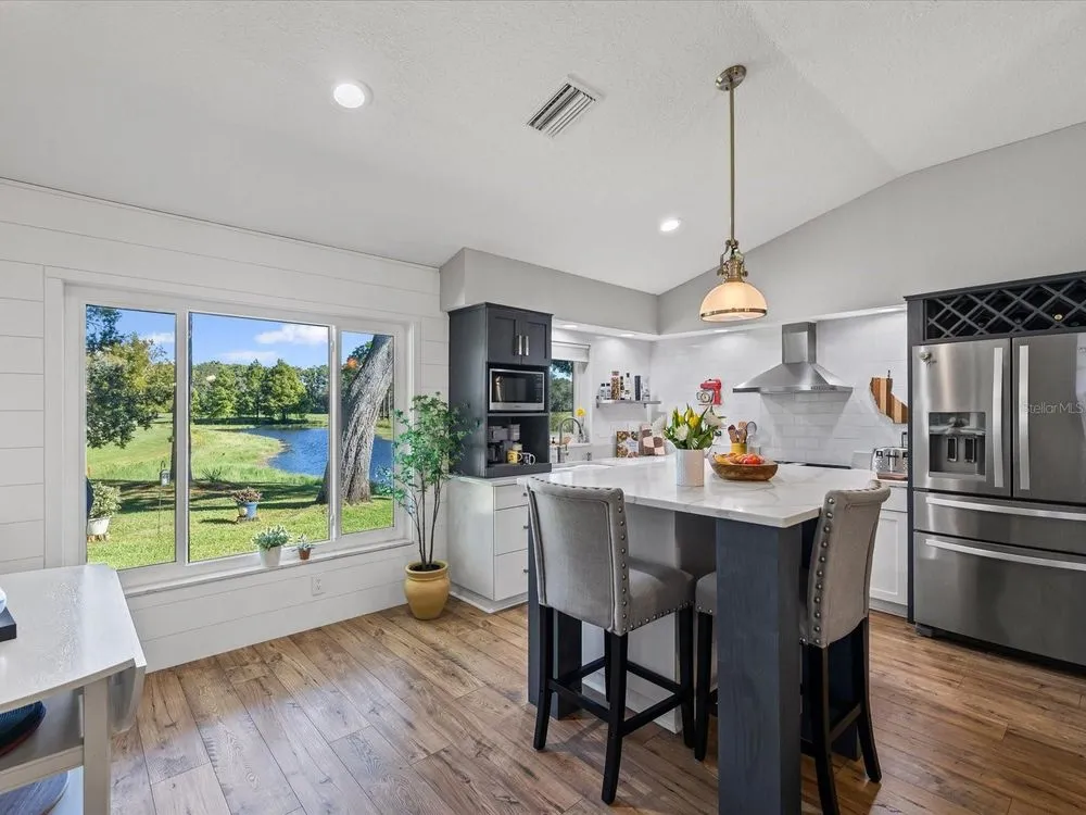 New Look and Design! Must see to believe! So many unique features! Immaculately clean and beautifully decorated! **Fireball Community of Summertree** — where nature and comfort meet! As you enter through tree-lined streets filled with abundant wildlife, you’ll instantly feel the charm of this serene neighborhood. This beautifully renovated home truly has it all. From your back patio, enjoy breathtaking views of the pond and the 4th, 5th, 6th, and 7th holes of the Summertree Golf Course — the perfect blend of tranquility and entertainment. The Summertree community offers a stunning clubhouse featuring a well-equipped gym, library, sparkling pool, and a full calendar of social activities. There’s simply no other home like this — thoughtfully updated and perfectly positioned on one of the most picturesque lots in the community. Some of the unique characteristics are the shiplap walls crafted by the homeowner, Built in coffee bar that slides in and out. Wine rack over refrigerator! Center quartz kitchen island. Walk in shower in master , Boday commode. This home has been completely gutted and rebuilt with modern style and attention to detail. Every surface and system has been refreshed or replaced to create a like-new living experience. Renovation Highlights: Full interior removal and redesign, including all flooring and kitchen area Brand-new flooring installed throughout Two bathrooms upgraded with custom stone finishes New custom kitchen cabinets and center island with quartz countertops All new appliances: stove, vent hood, refrigerator, and microwave Custom fans and designer lighting installed in every room All walls, ceilings, trim boards, and doors freshly painted New electrical outlets and updated electrical systems New PASCO windows and sliding glass doors Outdoor patio refinished with new treatment Upgraded garage flooring and garage sliding screen doors Over 2,000 linear feet of real shiplap boards installed on feature walls New commodes Window shutters in all bedrooms Rain gutters with a lifetime warranty New hot water heater This complete transformation delivers a crisp, elegant look and long-lasting quality .