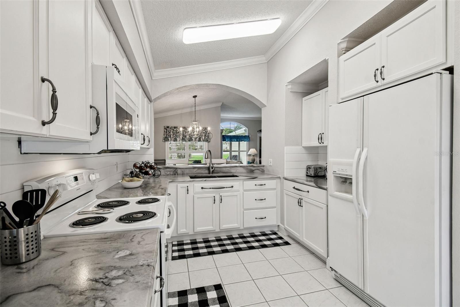 - Cathedral Ceiling(s), Ceiling Fan(s), Crown Molding, Open Floorplan, Solid Surface Counters, Solid-Wood Cabinets, Split Bedrooms, Walk-In Closet(s), Window Treatments