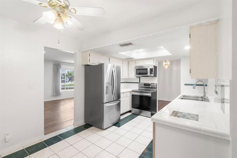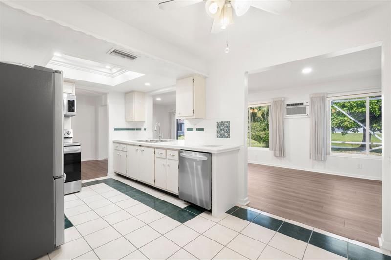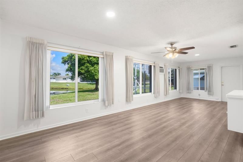 This beautiful home located in Paradise Gardens, a vibrant 55+ community with amenities. Discover this charming 2-bedroom, 2-bath single-family home nestled in a quiet South Florida neighborhood. Enjoy peace of mind with recent upgrades. New A/C unit (2024), hot water heater (2023), and laminate flooring (2022/2023). The kitchen features new stainless-steel appliances (2022) and is ready for your personal touch. Additional highlights include three ceiling fans (2023), exterior paint (2022), window tinting (2022), storm shutters for added protection, a large screened in patio for you to enjoy as you admire a serene canal view right in your backyard—perfect for relaxing or entertaining. This well-maintained home offers comfort, functionality, and great potential in a desirable location.