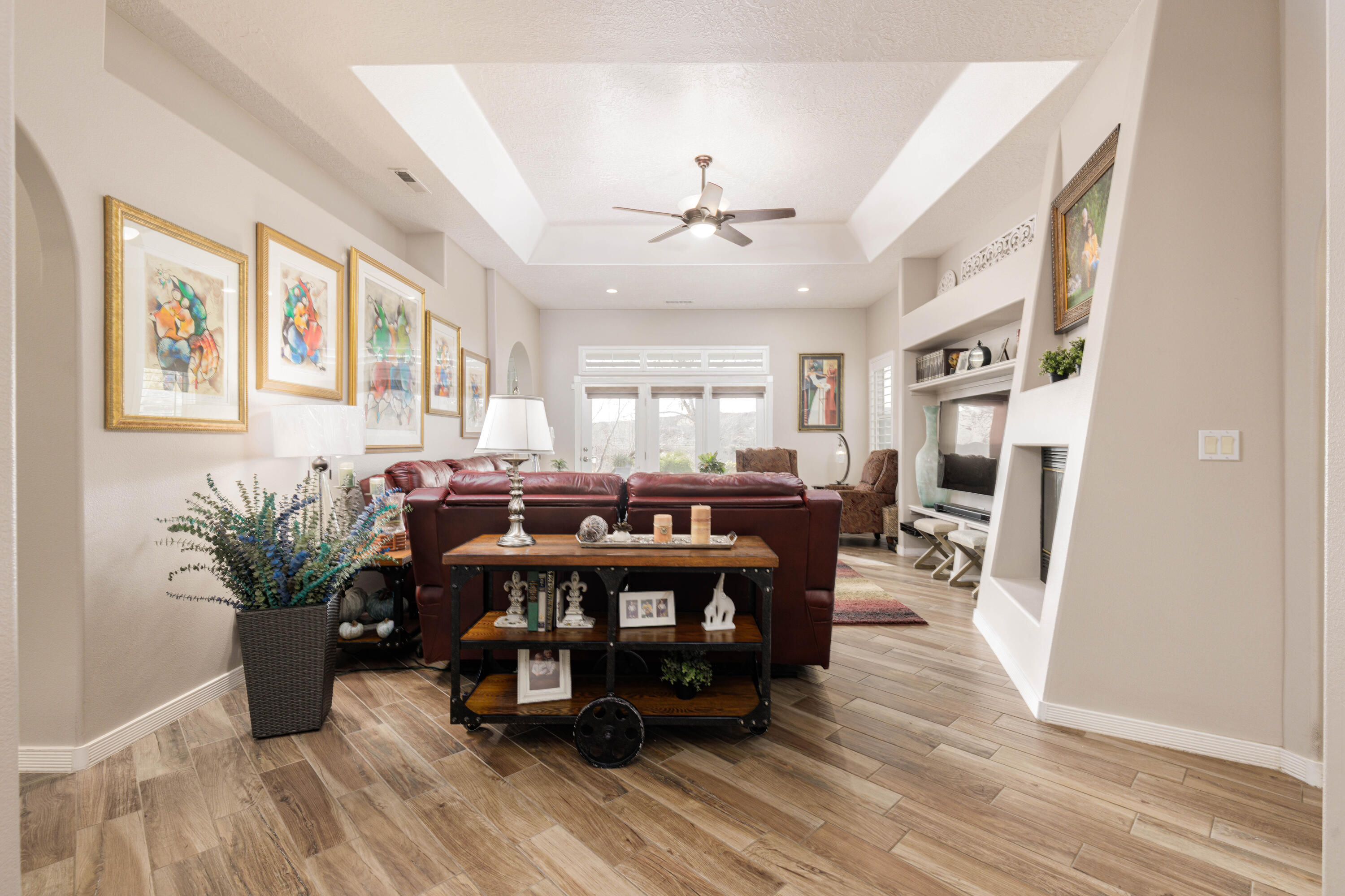 Rare find in a sought-after setting. This upgraded, move-in-ready home shines. Walk through the inviting entrance to discover a spacious, light-filled living room with a cozy fireplace, perfect for chilly evenings. The heart of the home is the updated kitchen, boasting white cabinetry, and oodles of granite countertops that is sure to impress the family chef. This large gourmet kitchen has abundant natural light, and views of the open space behind. No back neighbors! Classic shutters throughout for privacy and timeless style. The expansive primary suite truly feels like a retreat. Best of all, the property backs up to the scenic Santa Clara River corridor, delivering serene, nature-filled surroundings. Plus, enjoy the community pool just steps away for effortless, resort-style living.
