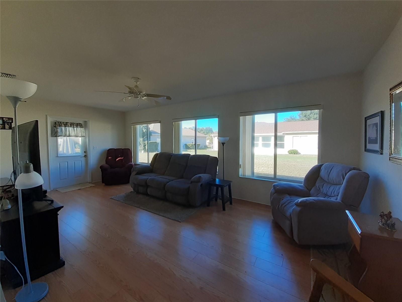Welcome to Spruce Creek Preserve, a premier 55+ community surrounded by the Ross Prairie Preserve, just minutes to terrific shopping, restaurants and entertainment! If you like hiking, biking, canoeing or kayaking there are many places for you to enjoy. But if you prefer activities closer to home, there are so many to choose from right in the community. This spacious, updated home is located on a tree lined street only 2 blocks long. You will love the huge kitchen with newer stainless steel appliances, loads of cabinets and tons of counter space. There is a sweet spot for a table by the bay window. The dining room can accommodate a table and hutch. The primary bedroom is large, easily having a king sized bed, nightstands, dresser with mirror and a chest of drawers without seeming to be crowded. It also has an ensuite bath with double sinks and 2 closets, one a walk in. The guest bedroom is very roomy and has a walk in closet as well. The living room and family room are both large, allowing a variety of options for furniture arrangement. It's also perfect for family members to have separate spaces! From the family room you can walk out to the patio to grill and chill! The laundry room is right off the kitchen and also serves as a mudroom from the garage.