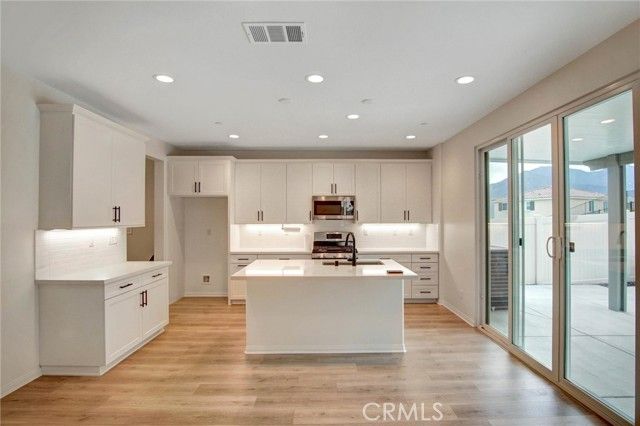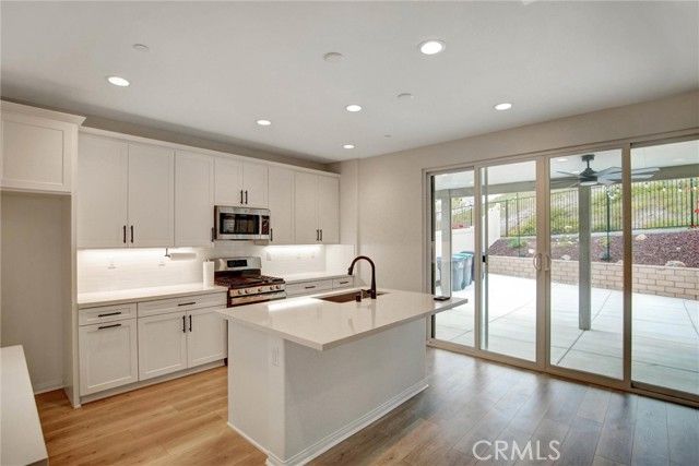 Experience luxury living in this spacious and beautifully updated 5-bedroom, 3-bathroom home. With 3,042 sq ft of living space, this residence sits inside Terramor’s highly sought-after guard-gated, offering resort-style amenities including multiple pools, a clubhouse, dog park, playgrounds, and miles of scenic hiking trails. Inside, the open-concept floor plan showcases a stunning modern kitchen complete with quartz countertops, shaker cabinetry, and generous prep and storage space—ideal for everyday living and effortless entertaining. Natural light fills the living areas, creating a warm and inviting atmosphere throughout. Custom mantel fireplace in the family room as well as custom shutters through out the entire house. House comes with a lot of upgrades. Another great feature is the fully paid off solar system. Step outside to your own private backyard retreat. Back yard provides exceptional privacy and modern patio with a built-in fireplace, lush landscaping and custom cemented. all this house needs is for you to call it your home. This is a rare opportunity to own a truly move-in-ready home within an amenity-rich, secure, and highly desirable community. Homes like this don’t come around often.