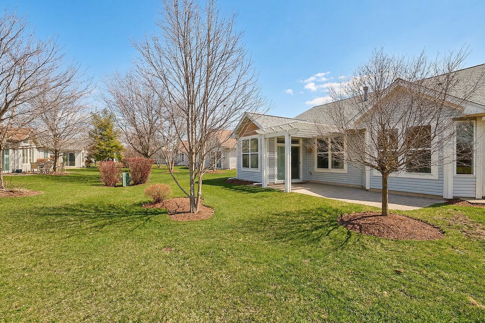 Welcome to easy living in Del Webb's Sun City Huntley, one of the area's premier 55+ active adult communities! This beautifully remodeled Manistee model has been thoughtfully updated from top to bottom and is truly move-in ready. Step inside to discover brand new extra-wide plank luxury vinyl tile flooring throughout, complemented by all new light fixtures, doors, hardware, electrical & wood trim, creating a clean, modern feel throughout the home. The completely remodeled kitchen is a standout feature, offering white shaker slow-close cabinetry with built-in spice rack & lazy Susan, sleek quartz countertops, a deep stainless steel sink and brand new stainless steel oven/range and refrigerator. This home flows effortlessly into the bright sunroom, where newer patio doors with built-in blinds lead to a brick paver patio and newer pergola providing the perfect space to relax or entertain outdoors. A cozy gas fireplace complements the open family room. The primary suite features a bay window, ceiling fan, and a walk-in closet, along with a beautifully updated ensuite bath with tile flooring, double sink, white shaker vanity & quartz countertops, new mirrors, a large shower with new door and built-in corner seat. The primary bathroom also features an oversized linen closet. A second bedroom and fully updated bath with new vanity & quartz countertops provide a comfortable space for guests. Laundry room with sink & closet. Major mechanical updates add peace of mind including new furnace and water heater (2026), A/C (2020), Roof, gutters & downspouts (2020), asphalt driveway (2020), washer/dryer (2020). Entire home has also been freshly painted. Additional highlights include a front porch, 27' extended length heated garage & lawn irrigation system & freshly mulched & trees trimmed. Enjoy resort style living in Sun City, Huntley with access to golf course, fitness centers, pools, walking trails, clubs & countless activities designed for an active lifestyle.