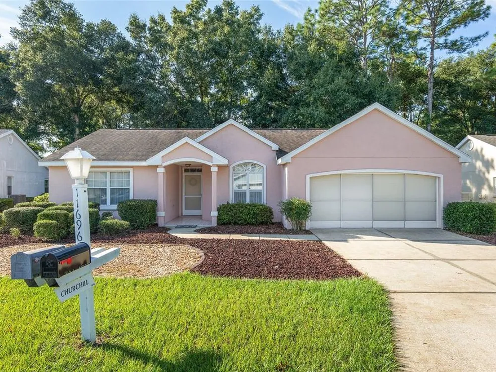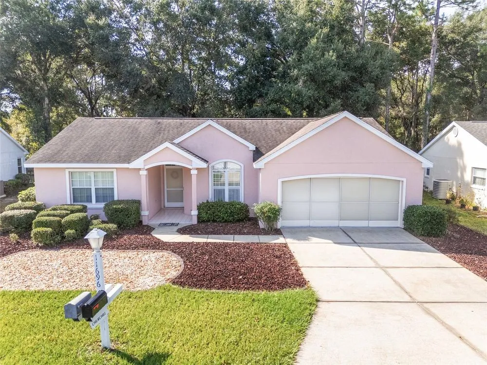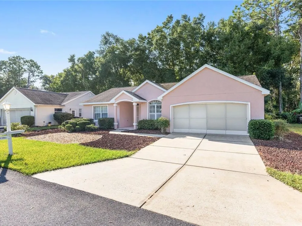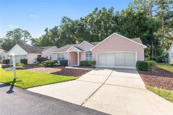 PRICE TO SELL! Concrete block home, newly painted inside this all-tile home. Welcome to Oak Run Country Club, 55+ community in beautiful Ocala, Florida. Oak Run has all the amenities you need to enjoy the Florida lifestyle at its best. With golf, tennis, pickleball, shuffleboard, 6 swimming pools, 2 workout centers, 2 auditoriums for meetings, dancing's and many other activities. Play 18 holes of golf and enjoy the restaurant and bar after your round. The Waverly model is a block and secco build home has 1218 sq ft of living with large dining room and living room, kitchen with appliances, new heat and air conditioner, 11/05/2024, replaced sliding backdoor, 2 bedrooms, 2 baths and a 2-car garage. The Lanie has been substituted for an outside paved area with chain link fence. Florida Landscaping give the home an outstanding look. Backup to the Florida Greenway with privacy for entertainment and guests. This is a must-see home in a quiet and friendly Neighborhood.
