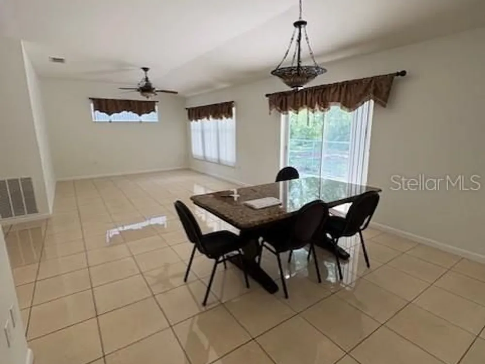 - Cathedral Ceiling(s), Ceiling Fan(s), L-Shaped Dining Room, Living/Dining Room