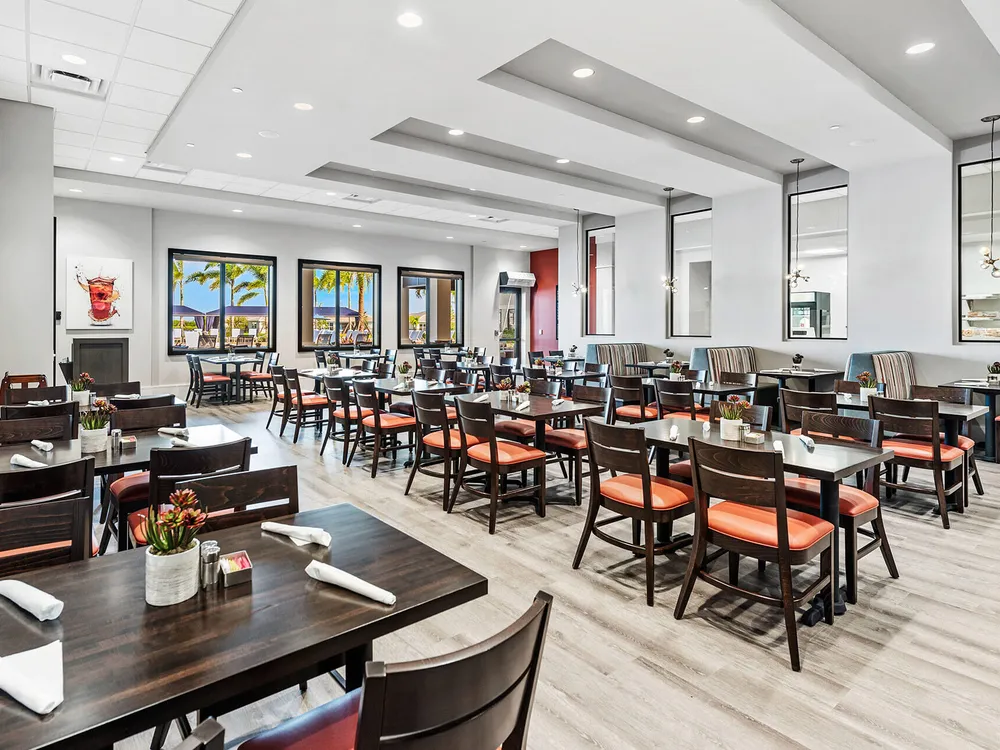 - Basketball Court, Billiard Room, Bocce, Restaurant, Clubhouse, Community Room, Fitness Center, Game Room, Indoor Pool, Library, Pickleball, Pool, Shuffleboard, Sidewalks, Spa/Hot Tub, Street Lights, Tennis Court(s)