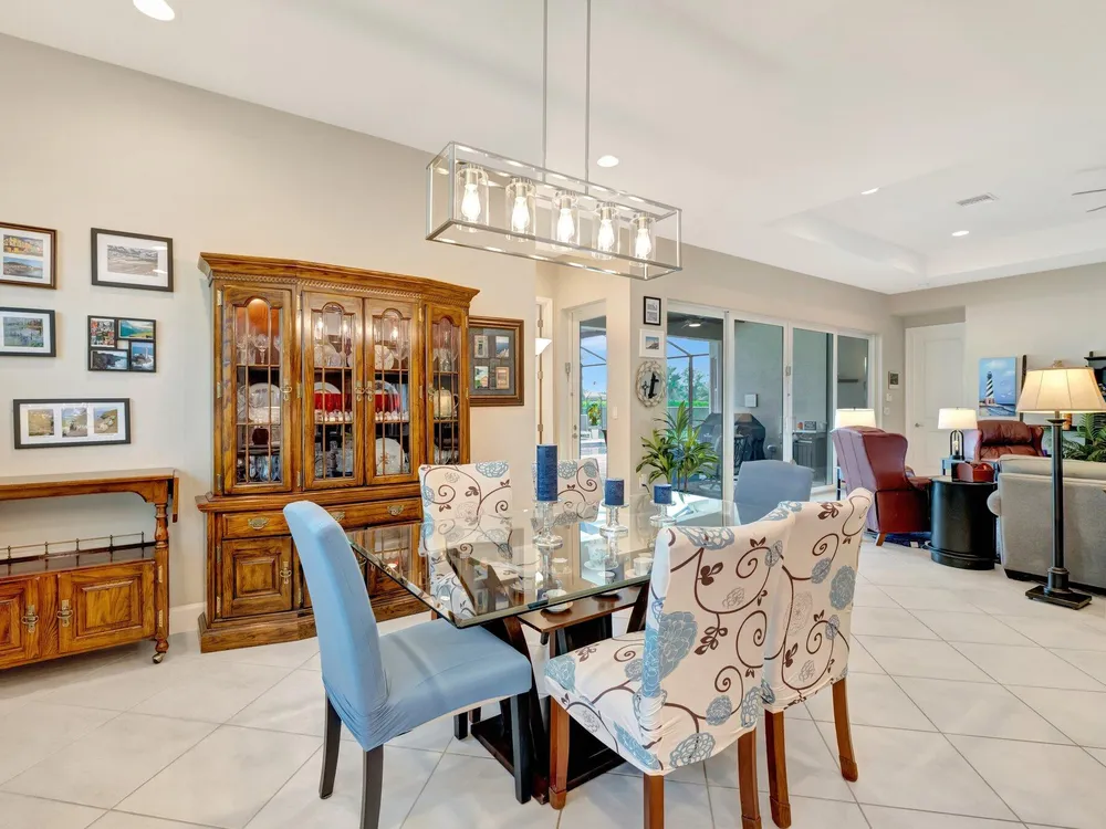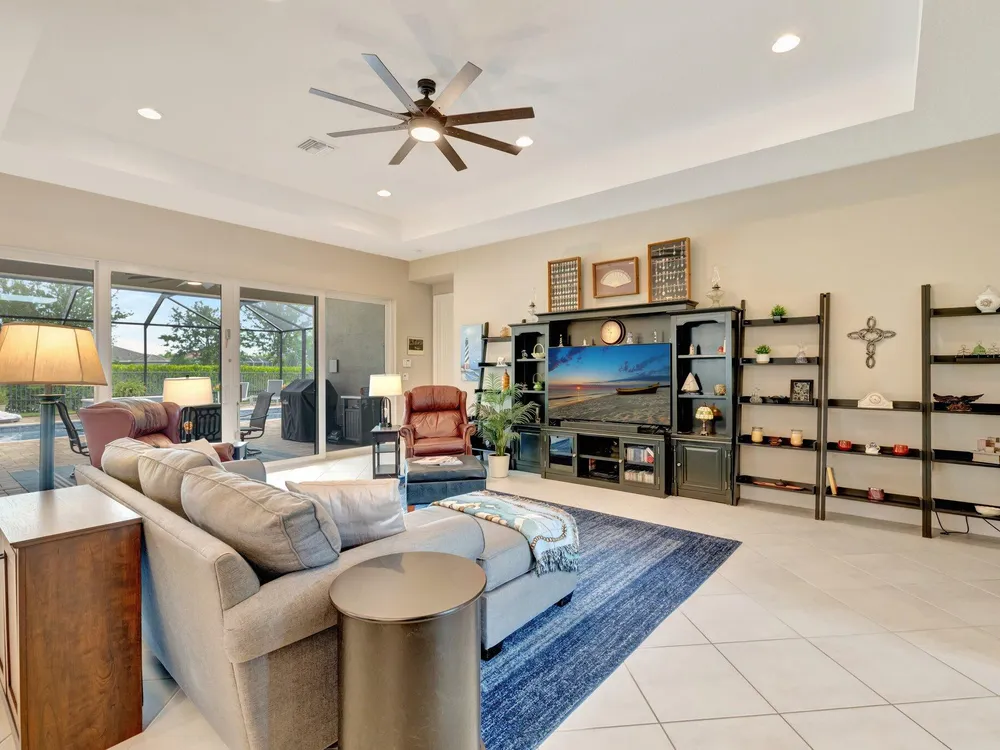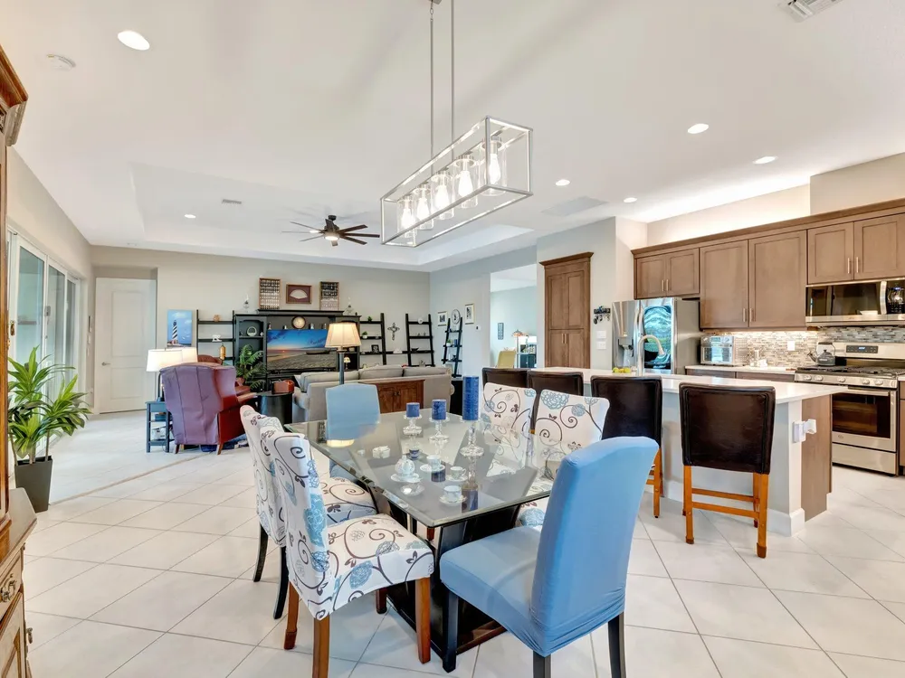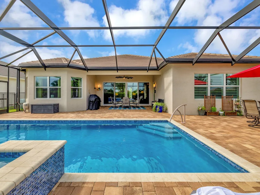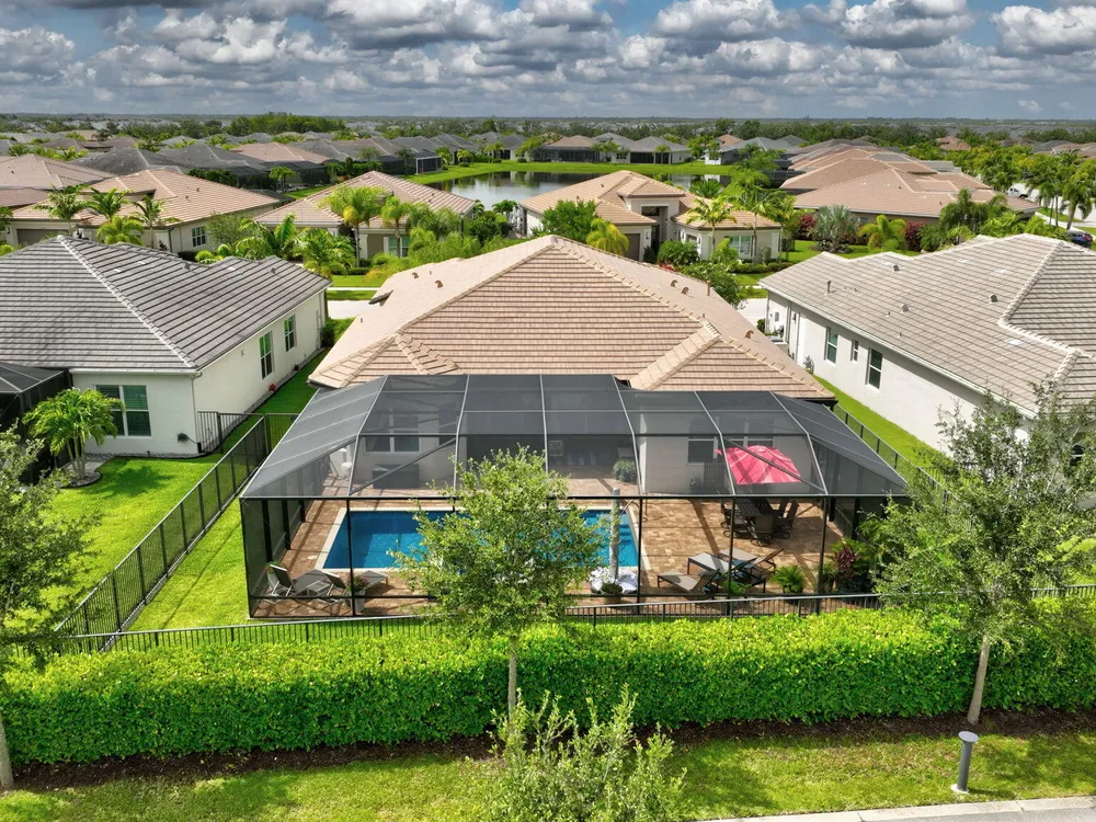 Experience refined luxury living with the Bianca Model at Valencia Cay in Riverland. This elegant pool home, situated on a private lot, features 2 bedrooms +den/3rd bedroom, a family room, a spacious living area, a two-car garage, and a dedicated golf cart garage to enhance ease of transportation within the community. Thoughtfully designed for modern comfort and sophistication, this residence offers open-concept living, high-end finishes, and generous interiors ideal for an active, upscale lifestyle. Highlights include an expansive great room tailored for entertaining, a gourmet kitchen equipped with premium cabinetry and stainless-steel appliances, and a luxurious master suite featuring walk-in closets and a spa-inspired bathroom, with a large shower and separate