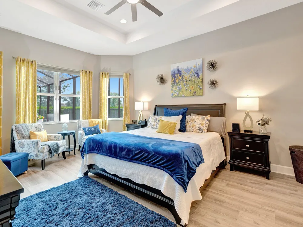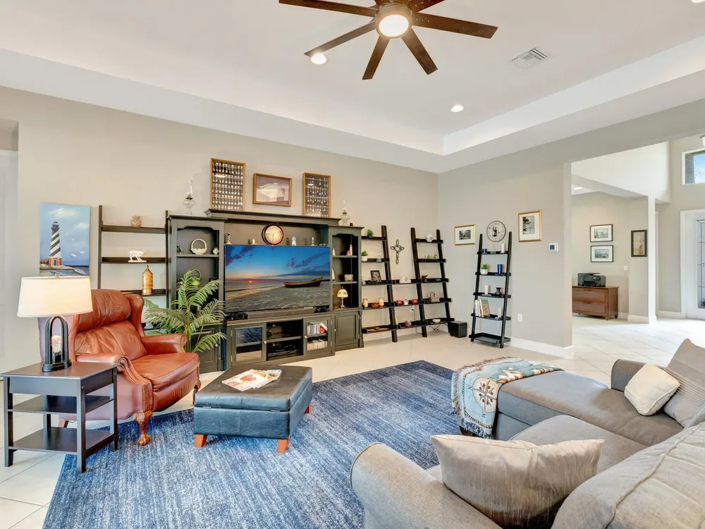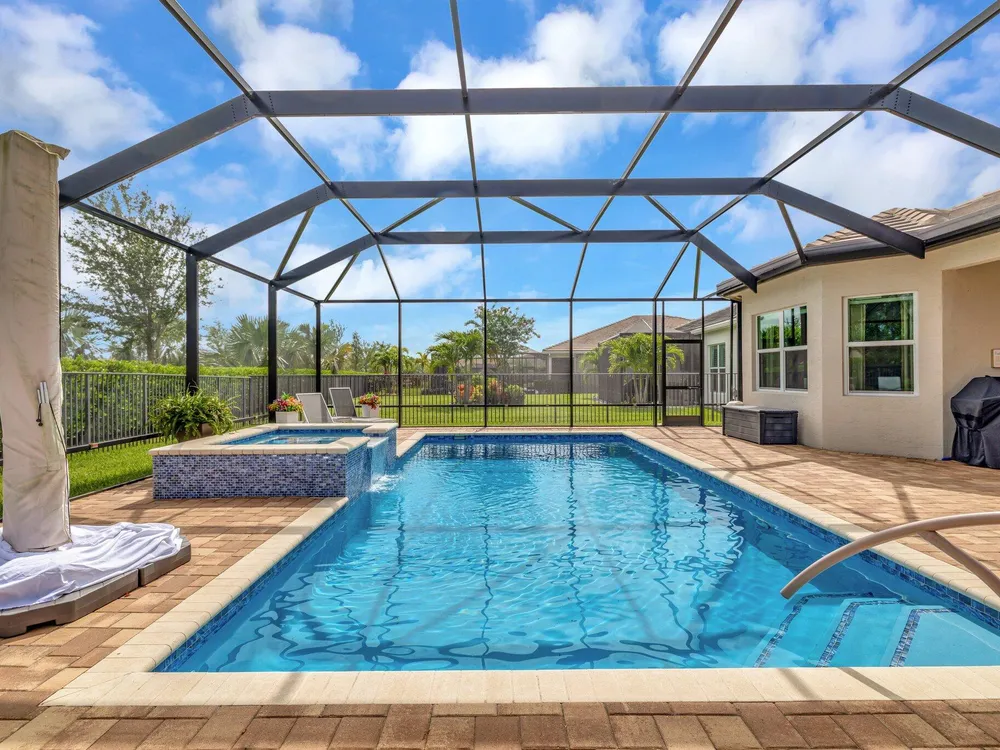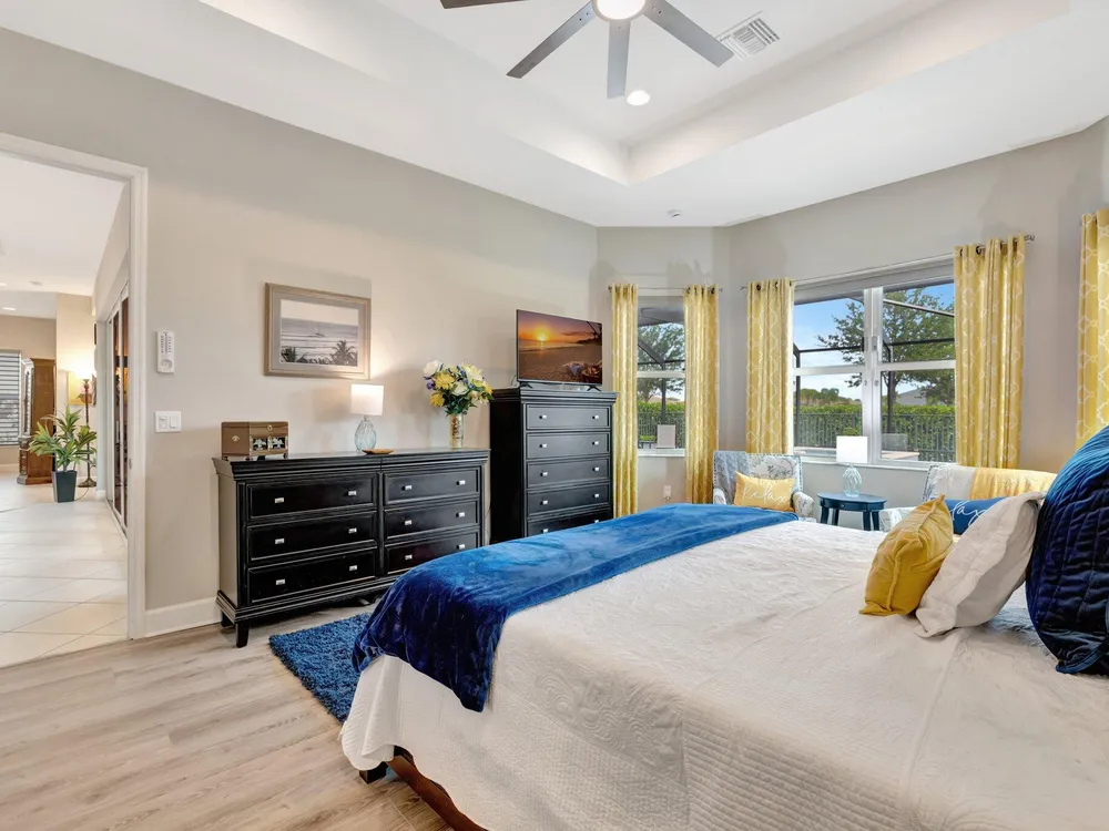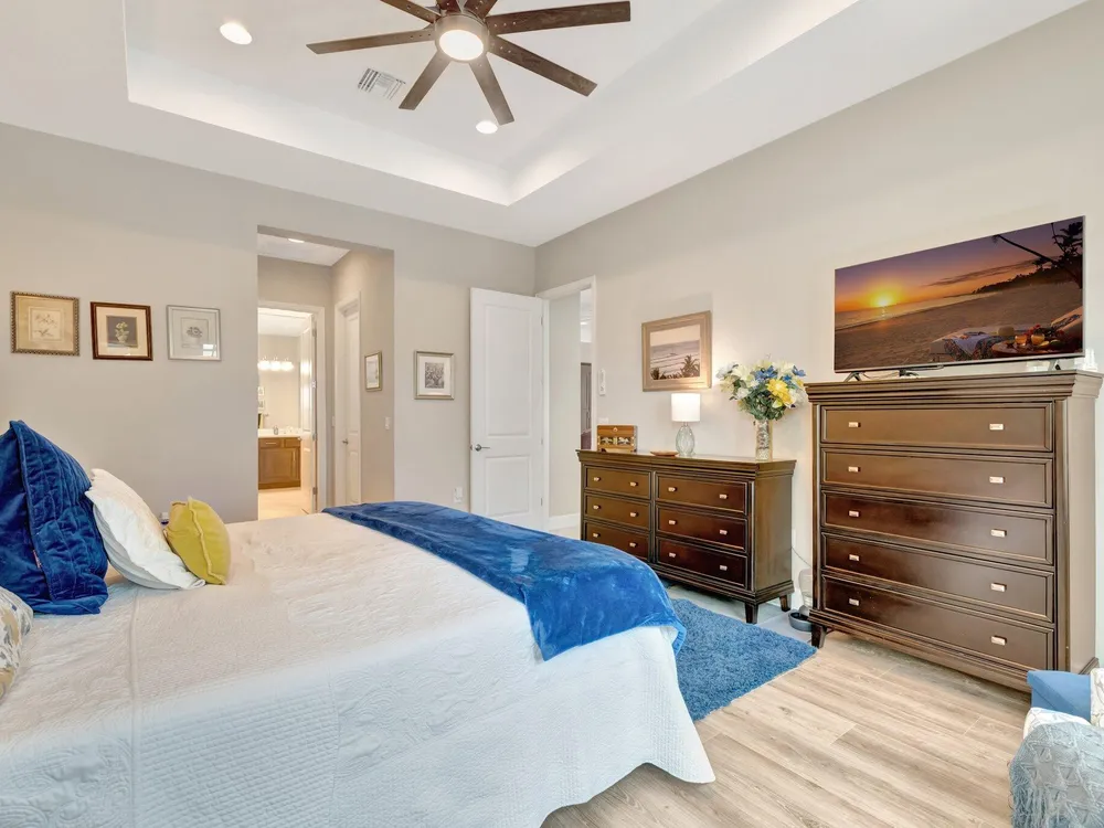 Experience refined luxury living with the Bianca Model at Valencia Cay in Riverland. This elegant pool home, situated on a private lot, features 2 bedrooms +den/3rd bedroom, a family room, a spacious living area, a two-car garage, and a dedicated golf cart garage to enhance ease of transportation within the community. Thoughtfully designed for modern comfort and sophistication, this residence offers open-concept living, high-end finishes, and generous interiors ideal for an active, upscale lifestyle. Highlights include an expansive great room tailored for entertaining, a gourmet kitchen equipped with premium cabinetry and stainless-steel appliances, and a luxurious master suite featuring walk-in closets and a spa-inspired bathroom, with a large shower and separate