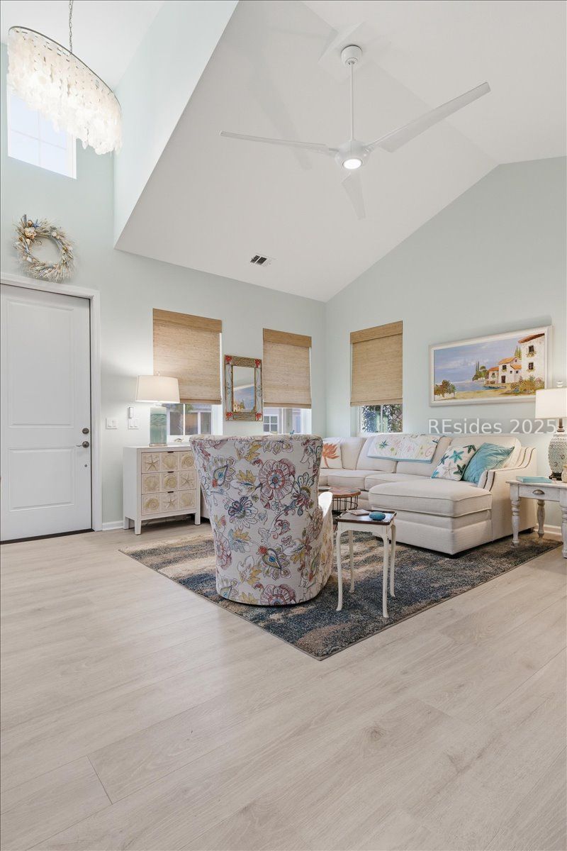 Welcome to your Dreamsicle retreat in Latitude Margaritaville Hilton Head! This beautifully upgraded home combines modern coastal design with everyday comfort. The open-concept layout features a luxurious quartz extended island, upgraded stainless steel appliances, and elegant laminate flooring throughout. With two spacious bedrooms, two baths, a versatile den, and a convenient laundry room and pantry, this home is perfect for relaxed, effortless living.Step into the screened lanai with its epoxy floor and Coolaroo shades-an ideal space to unwind and enjoy the coastal breeze. Designer pendant lights, a Capiz shell chandelier in the foyer, and custom woven window shades add a touch of tropical sophistication. The home has been freshly painted and includes a two-car garage with new epoxy coating, a whole-house water filtration system, and a surge protector for added peace of mind.Located in the heart of Latitude Margaritaville, you're just moments from resort-style amenities and friendly neighbors. Move in and start living the paradise lifestyle today!