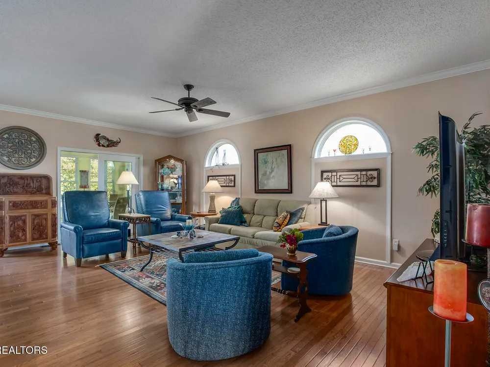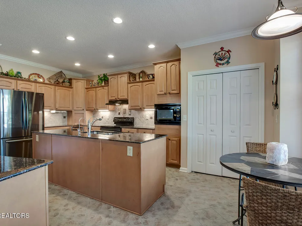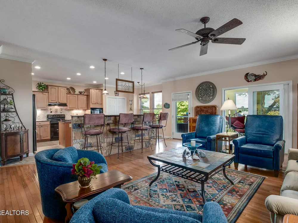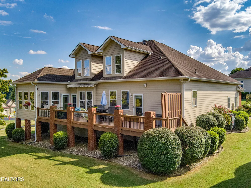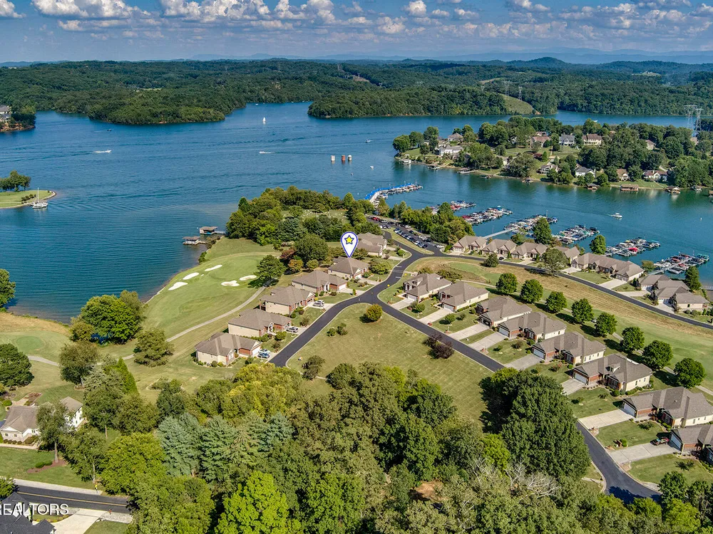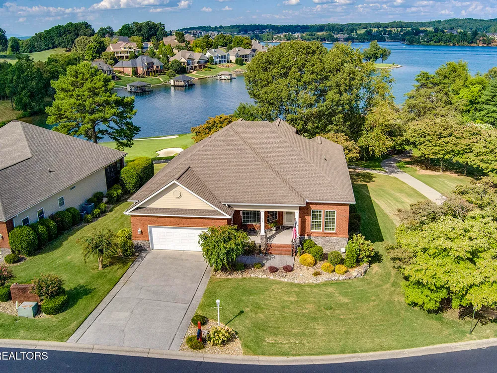 GOLF FRONT and LAKEVIEW standalone townhome located in Tanasi Cove Villas within the Tommotley Shores subdivision near the north end of Tellico Village and the soon to be rebuilt Tanasi clubhouse. Fabulous 1 ½ story ranch style home offers 3 bedrooms, 4 bathrooms with 2,747 heated and cooled living space. Exterior features are brick, stone and hardiplank siding and a spacious deck for entertaining family and friends with a view of the #8 green as well as the lake. The crawl space has a double standard height door and includes a concrete slab for the golf cart or ??? The main floor has everything you need for your daily living that encompasses the formal dining room, office/den, gourmet kitchen with ample granite counter space, pantry, pullout drawers, island with sink (reverse osmosis system conveys) and workstation, a breakfast nook as well as separate curved shaped high top breakfast bar that is open to the great room with access to the deck and sunroom, a guest full bath, laundry room with utility sink and storage cabinets, the owner's suite includes his and her vanities, linen closet, oversized walk in closet with custom built shelving, a huge walk in shower with bench and a private water closet. The upstairs living space offers two guest bedrooms with private full bathrooms, an additional room for hobbies or office and an abundance of storage space. Other items that convey with the home include water softener system and dehumidifier in crawl space and reverse osmosis, Ion system to HVAC, kitchen refrigerator (replaced in 2019), sauna, antenna, garage shelves and gardening shack in garage. Zoned heating and cooling. HVAC main level replaced in 2013; upper level replaced in 2015; roof and gutters replaced in 2012; garage door replaced in 2019; water heater in 2025. Garage approximate dimensions are 24' wide by 22' deep with a 16' wide garage door opening. There are two monthly association dues. Tellico Village Property Owner Association due is currently $181.53. The townhome property management company, Associa Tennessee, current monthly due is $186.00 for basic maintenance of mowing, trimming, weeding and fertilizing as well as the upkeep of the small neighborhood park. There can be an occasional assessment to address unplanned maintenance issues for example irrigation equipment failures etc. All information taken from public or seller and deemed reliable but not guaranteed and for buyer to verify.