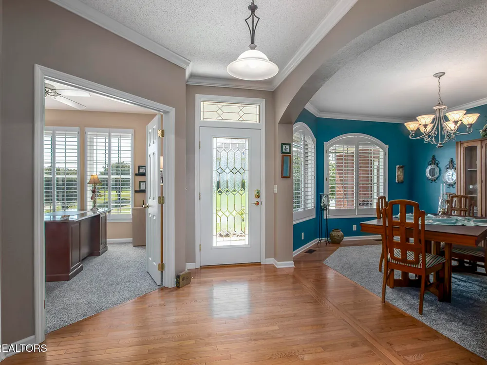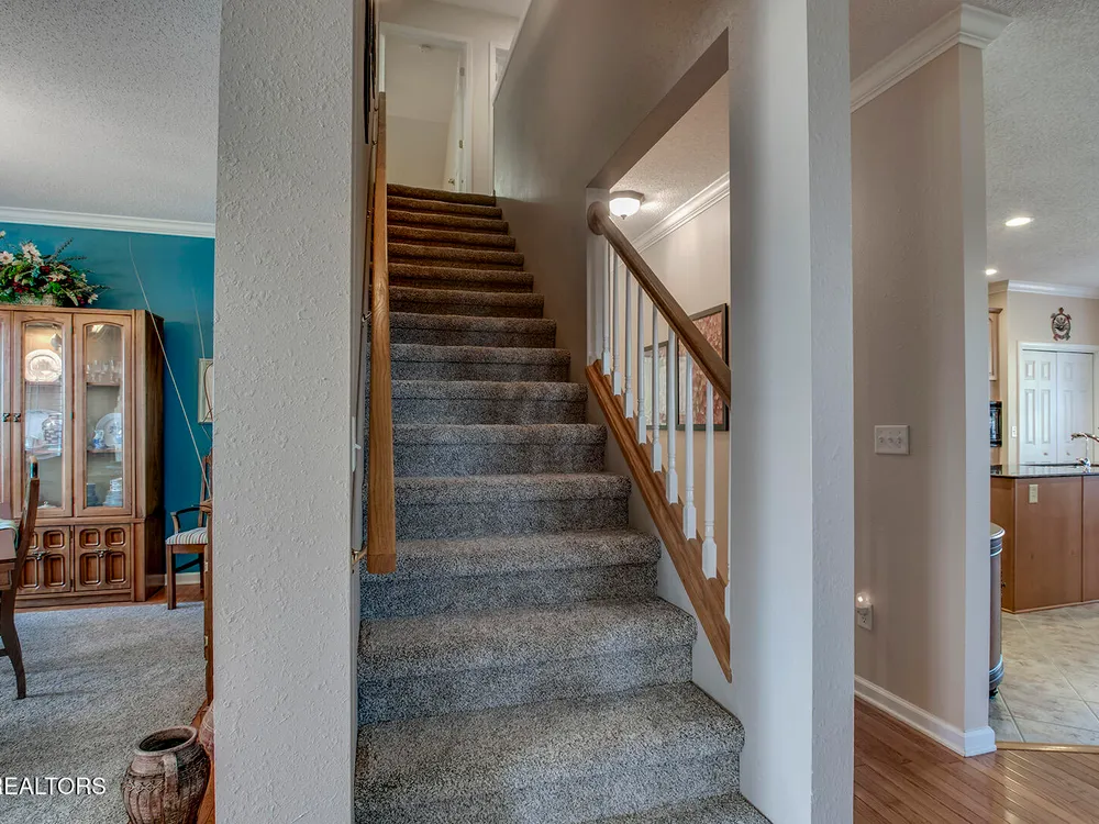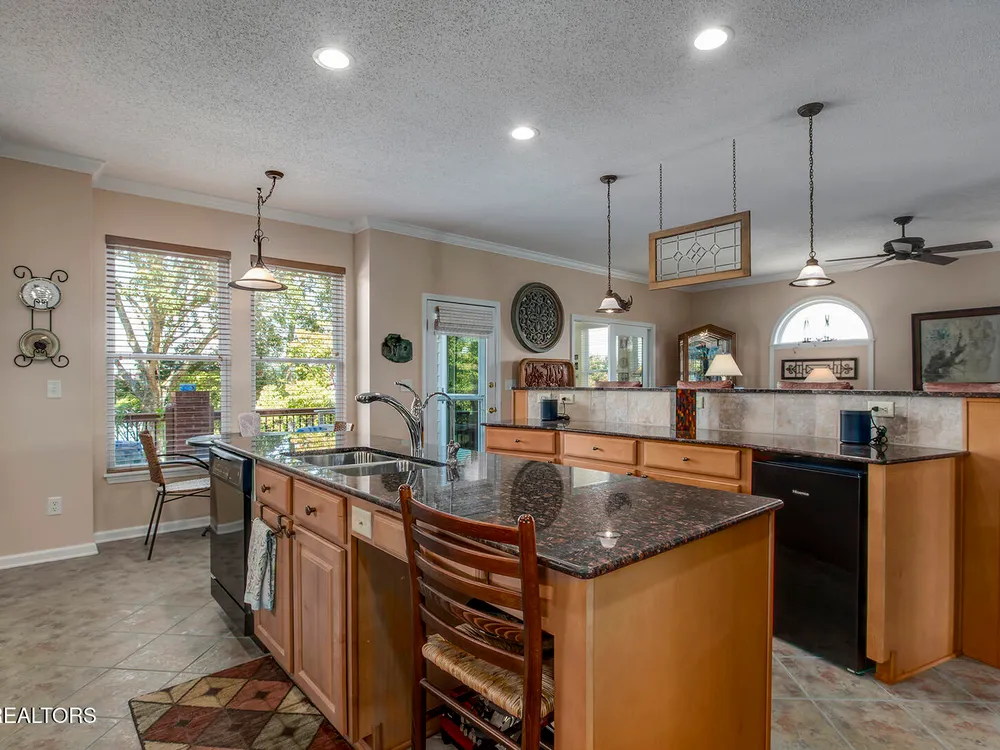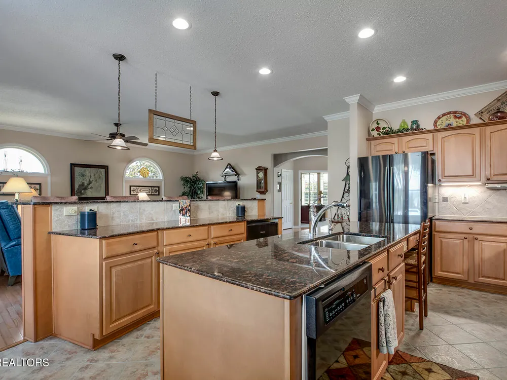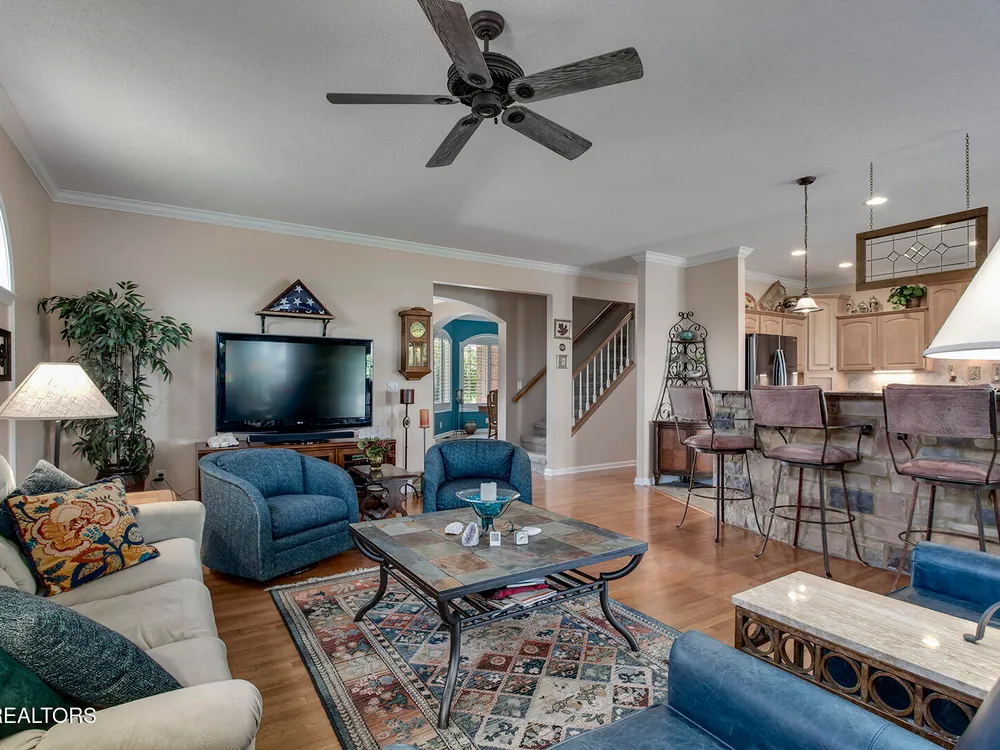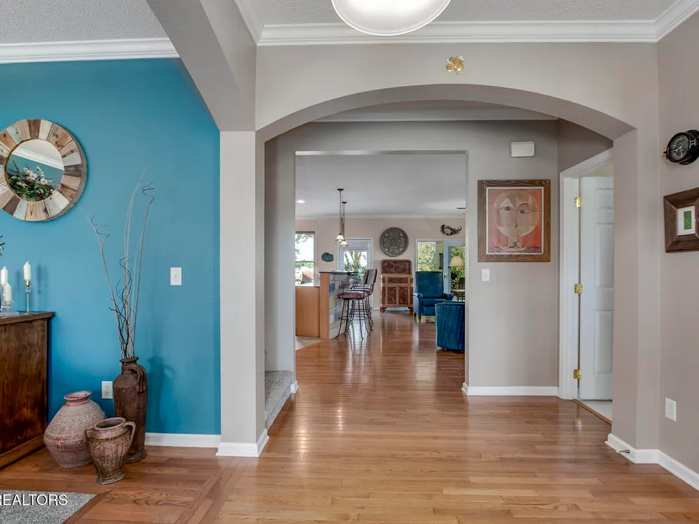 GOLF FRONT and LAKEVIEW standalone townhome located in Tanasi Cove Villas within the Tommotley Shores subdivision near the north end of Tellico Village and the soon to be rebuilt Tanasi clubhouse. Fabulous 1 ½ story ranch style home offers 3 bedrooms, 4 bathrooms with 2,747 heated and cooled living space. Exterior features are brick, stone and hardiplank siding and a spacious deck for entertaining family and friends with a view of the #8 green as well as the lake. The crawl space has a double standard height door and includes a concrete slab for the golf cart or ??? The main floor has everything you need for your daily living that encompasses the formal dining room, office/den, gourmet kitchen with ample granite counter space, pantry, pullout drawers, island with sink (reverse osmosis system conveys) and workstation, a breakfast nook as well as separate curved shaped high top breakfast bar that is open to the great room with access to the deck and sunroom, a guest full bath, laundry room with utility sink and storage cabinets, the owner's suite includes his and her vanities, linen closet, oversized walk in closet with custom built shelving, a huge walk in shower with bench and a private water closet. The upstairs living space offers two guest bedrooms with private full bathrooms, an additional room for hobbies or office and an abundance of storage space. Other items that convey with the home include water softener system and dehumidifier in crawl space and reverse osmosis, Ion system to HVAC, kitchen refrigerator (replaced in 2019), sauna, antenna, garage shelves and gardening shack in garage. Zoned heating and cooling. HVAC main level replaced in 2013; upper level replaced in 2015; roof and gutters replaced in 2012; garage door replaced in 2019; water heater in 2025. Garage approximate dimensions are 24' wide by 22' deep with a 16' wide garage door opening. There are two monthly association dues. Tellico Village Property Owner Association due is currently $181.53. The townhome property management company, Associa Tennessee, current monthly due is $186.00 for basic maintenance of mowing, trimming, weeding and fertilizing as well as the upkeep of the small neighborhood park. There can be an occasional assessment to address unplanned maintenance issues for example irrigation equipment failures etc. All information taken from public or seller and deemed reliable but not guaranteed and for buyer to verify.