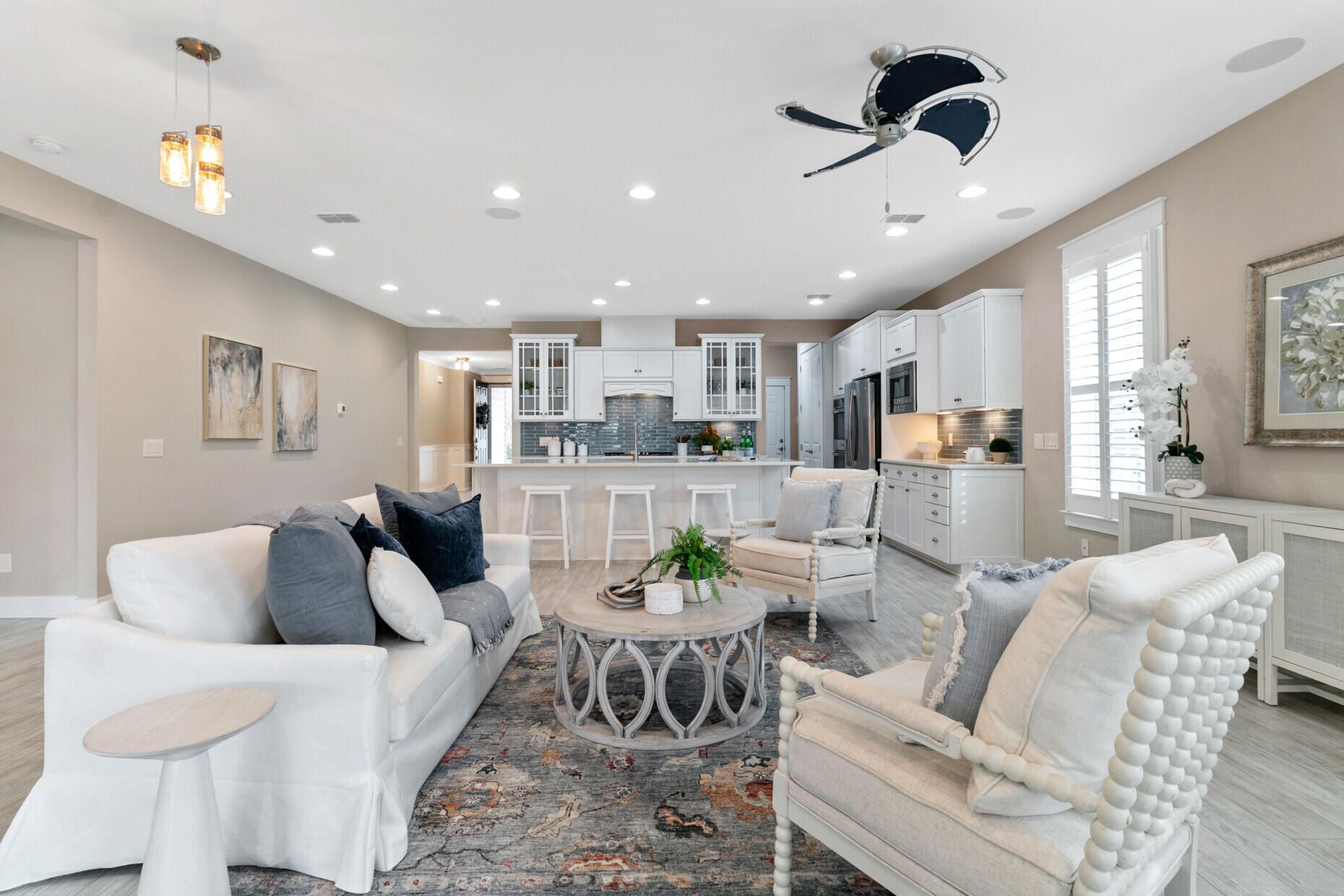 - Smooth Ceilings, High Ceilings, Kitchen Island, Walk-In Closet(s), Ceiling Fan(s), Entrance Foyer, Great Room, Living/Dining Room, Home Office, Pantry, Study, Sunroom