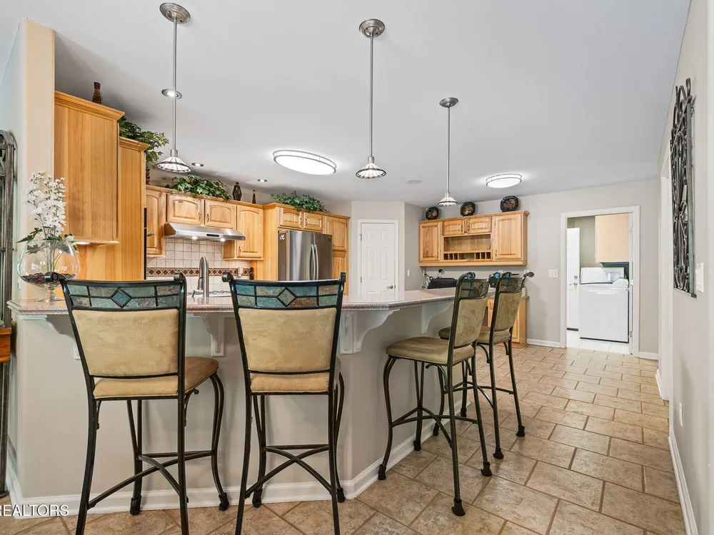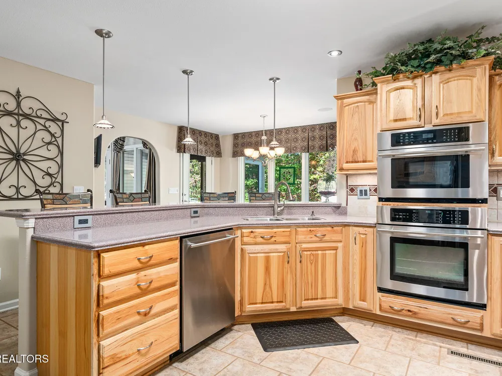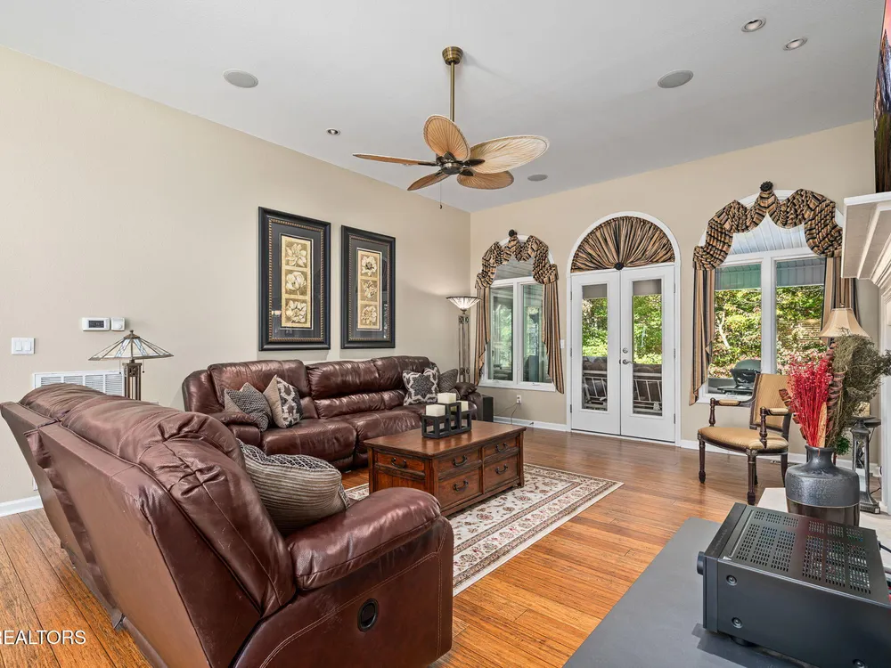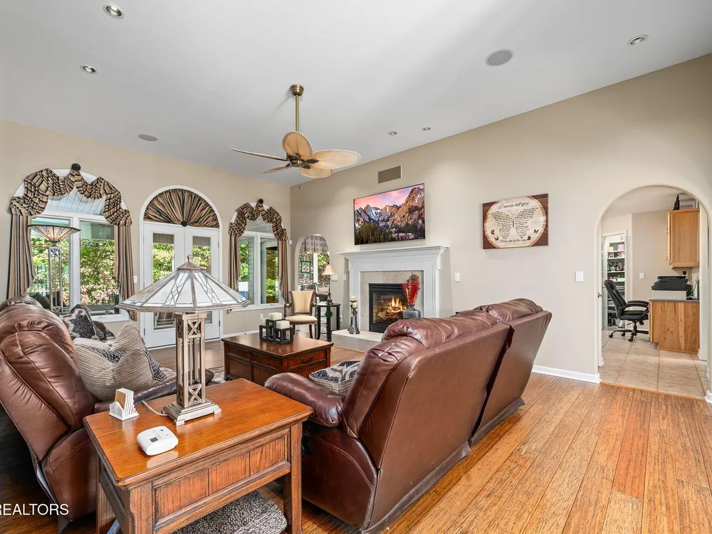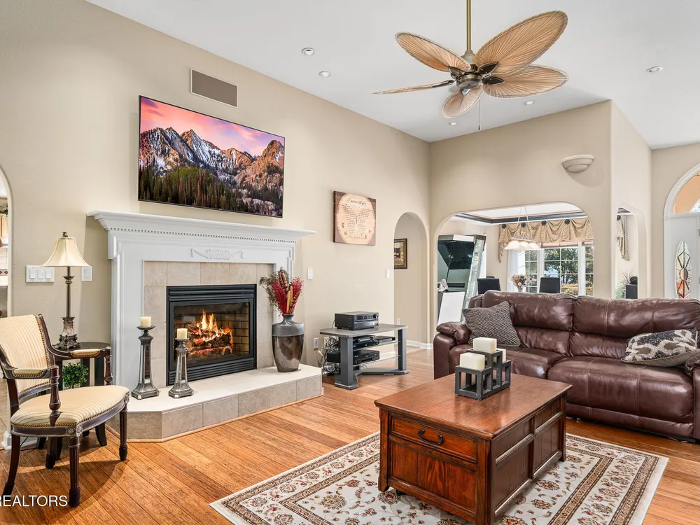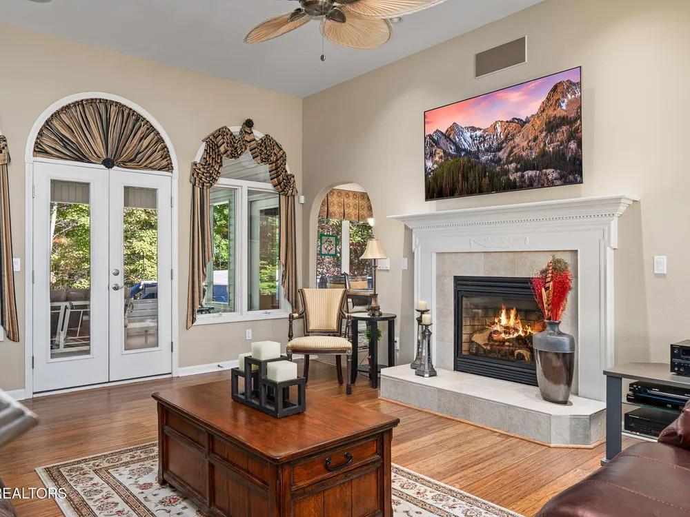 Immaculate Fairfield Glade Resort home with mountain views & high-end upgrades. Welcome to this meticulously maintained 2,164 sq ft luxury home nestled in the heart of Fairfield Glade Resort. Designed for both comfort & style, this home offers stunning mountain views & a thoughtful floor plan filled with upscale finishes & modern conveniences. Step into the gourmet kitchen featuring tile floors, solid surface countertops, stainless steel appliances, a gas stove, & a built-in office desk - perfect for multitasking. A cozy breakfast nook off the kitchen leads to the spacious living room adorned with rich wood flooring, a gas fireplace, & access to the 16'x12' 3-season screened porch - ideal for relaxing or entertaining. The formal dining room showcases panoramic mountain views, while the whole-home speaker system sets the perfect ambiance throughout. Retreat to the oversized master suite with double vanities, a jetted tub, & direct access to the 3-season porch. One of the guest rooms features a built-in Murphy bed, maximizing versatility to use as an office & second guest room. The home has plenty of storage with it's extra pantry space & multiple closets. Major upgrades include a new roof (50 year transferable warranty) in 2023, newer HVAC in 2020, & a tankless water heater in 2020. The home also includes gutter guards, a walk-in crawl space/workshop under the home, newer water filtration system in 2020, & even a chimney upgrad (bird proof) in 2024. Outdoor living is elevated with an auto-waterer for plants, gas grill line on the deck, & garage door screens for added comfort & privacy. Fairfield Glade Resort encompasses 90 holes of golf, 11 spring-fed lakes, marinas, beaches, & swimming areas. Indoor & outdoor rec areas, swimming pool, hiking trails & more. Welcome to the golf capital & one of the top places to retire in Tennessee! Buyer to verify all information before making an informed offer.