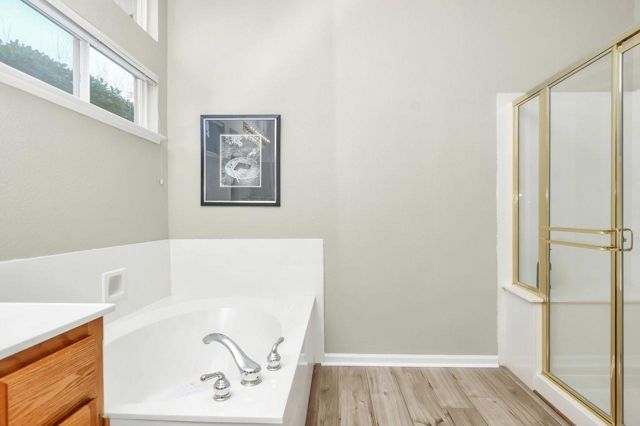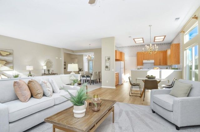 Welcome to Summerset 1, a 55+ gated community where comfort, convenience, and lifestyle come together. This beautifully maintained single-story home offers 1,846 square feet of easy living with 2 bedrooms, 2 bathrooms, and multiple living spaces designed for relaxing and entertaining. The formal living and dining rooms set the stage for gatherings, while the cozy family room with a fireplace invites you to unwind. The kitchen features a sunny dining nook, perfect for morning coffee and casual meals.Your spacious primary suite is a true retreat with an en suite bath showcasing dual vanities, a sunken soaking tub, separate shower, and 2 walk-in closets. Practical perks include an inside laundry room with washer, dryer, and utility sink, plus 2-car garage. Recent upgrades include luxury vinyl plank and carpet flooring, along with fresh interior paint in a warm neutral palette for a modern, move-in-ready feel. Step outside to a private backyard with a covered patio and lush landscaping dotted with citrus, fig, and pomegranate trees. Low HOA dues unlock a rich lifestyle with resort-style amenities and activities, including pool, spa/hot tub, tennis courts, bocce, and more. This is the one to make your next chapter simple, social, and stress-free. Feels like an everyday getaway.