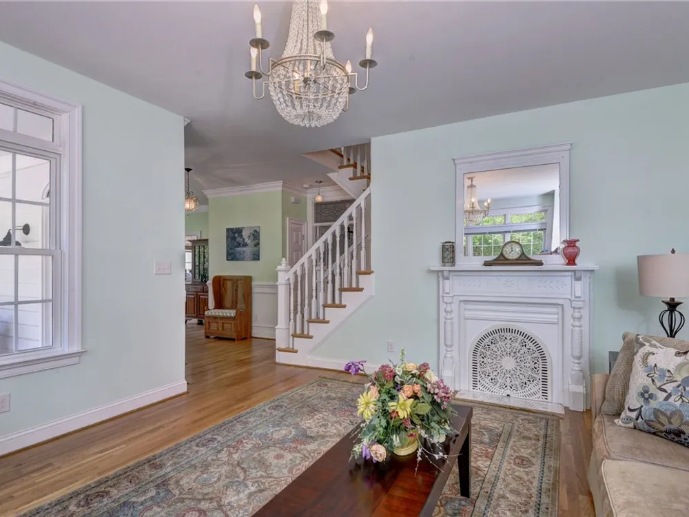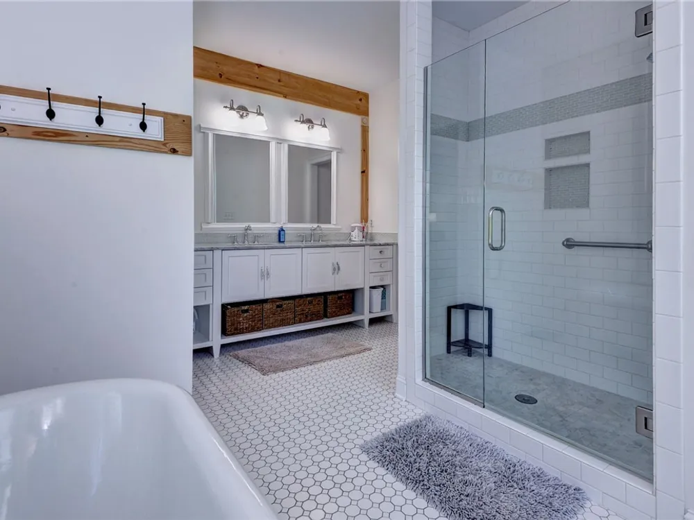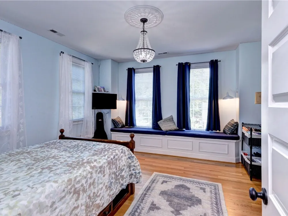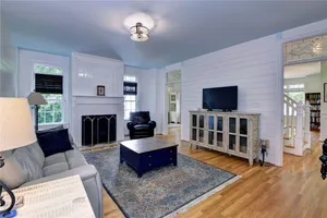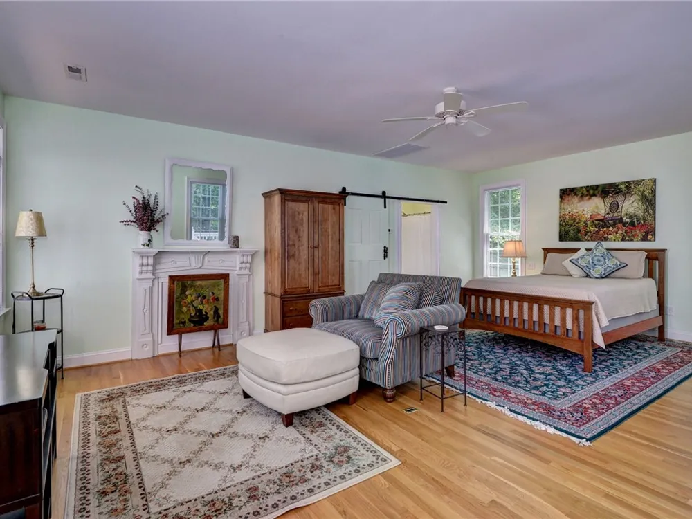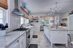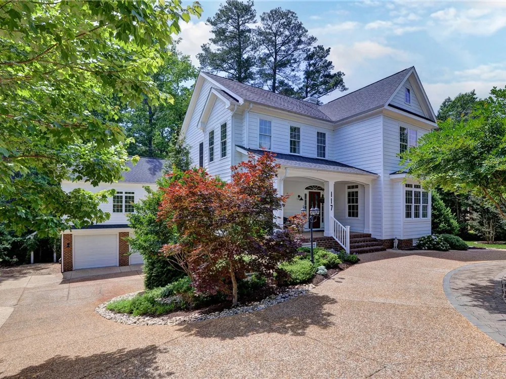 Welcome to your dream farmhouse—where timeless charm meets modern luxury. This one-of-a-kind home is bursting with character, from stained glass transoms and rich wood floors to shiplap walls and stunning chandeliers that light up every corner with personality. A jaw-dropping kitchen designed to impress. Centered around a custom island crafted from a 1920s map chest and featuring a conversation-starting bowling alley countertop at the coffee/bar station, it's a chef’s paradise with three sinks, two dishwashers, two refrigerators, tiled walls, and multiple pantries. With five bedrooms and multiple en-suites, the layout is perfect for multigenerational living or hosting guests in style. Both levels feature private suites—downstairs has its own laundry, while upstairs boasts a spa-like retreat with a soaking tub and cathedral ceiling with exposed beams. A 4-car garage and finished basement adds even more space, and the outdoor deck offers serene wooded views on a .43-acre lot. Charm, comfort, and character—all in one unforgettable home.