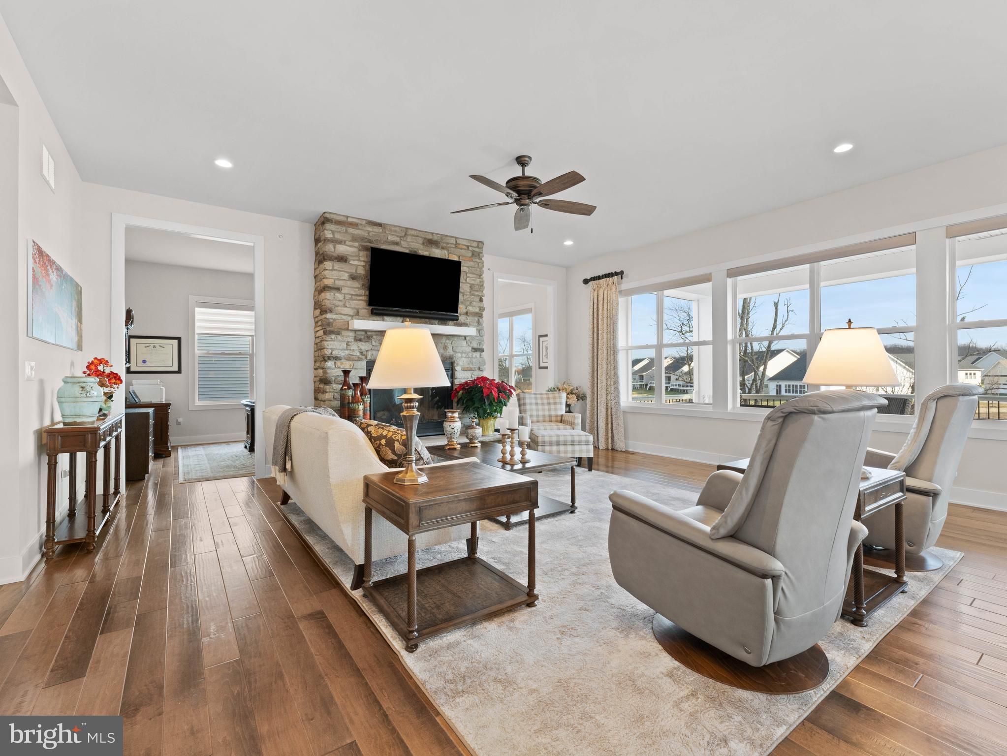 Welcome to 1170 Wythe Blvd, an elegantly upgraded luxury residence set on one of the premier lots in Regency at Waterside by Toll Brothers. From the moment you enter, rich dark flooring, custom trim work, and a sun-filled great room anchored by a perfectly positioned fireplace create a refined first impression that carries throughout the home. The gourmet kitchen showcases an impressive center island, the builder’s highest-level cabinetry, and a seamless open layout designed for both everyday comfort and sophisticated entertaining. Just beyond, an oversized back deck invites you to relax with unobstructed views of one of several ponds and surrounding natural landscape, truly an exceptional backdrop for morning coffee, sunrises, and quiet daily enjoyment. The first-floor primary suite offers a luxurious and private retreat, while the upper-level guest bedroom and loft provide beautifully appointed spaces ideal for hosting, working, or unwinding. A rare oversized storage area above the garage offers remarkable convenience, delivering long-term organization without sacrificing valuable interior living space. Enhancing the home even further are its premium mechanical and structural upgrades, including a whole-house fire suppression system, a high-quality water softener, three-zone heating and cooling, lawn irrigation, an expanded primary shower, open staircases to the upper and lower levels, an expanded garage as well as the peace of mind comes with approximately seven years remaining on the structural builder warranty. The finished walk-out basement adds even more versatility, offering dedicated space for fitness, hobbies, media, or guest overflow all with direct outdoor access. Life at Regency at Waterside is defined by luxury and ease. Residents enjoy access to a world-class clubhouse with indoor and outdoor pools, state-of-the-art fitness studios, pickleball and bocce courts, a putting green, walking trails, a dog park, and vibrant social clubs. With lawn care and snow removal included, every day feels like resort-style living in a beautifully maintained, low-maintenance community.