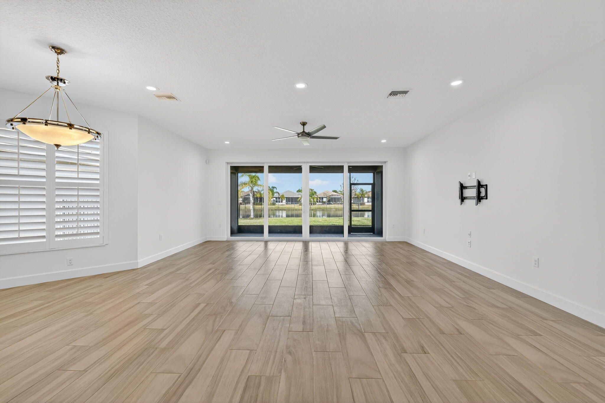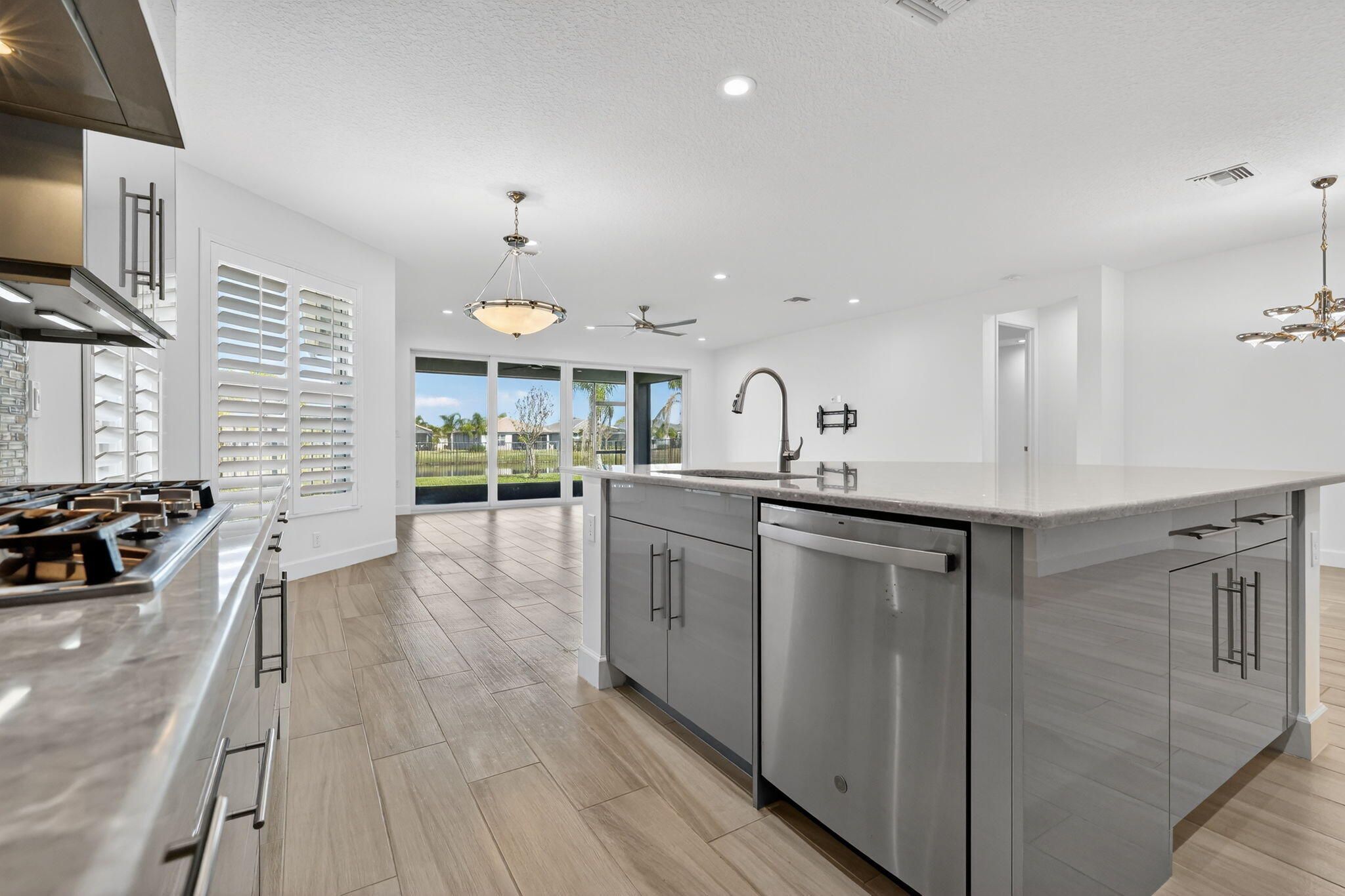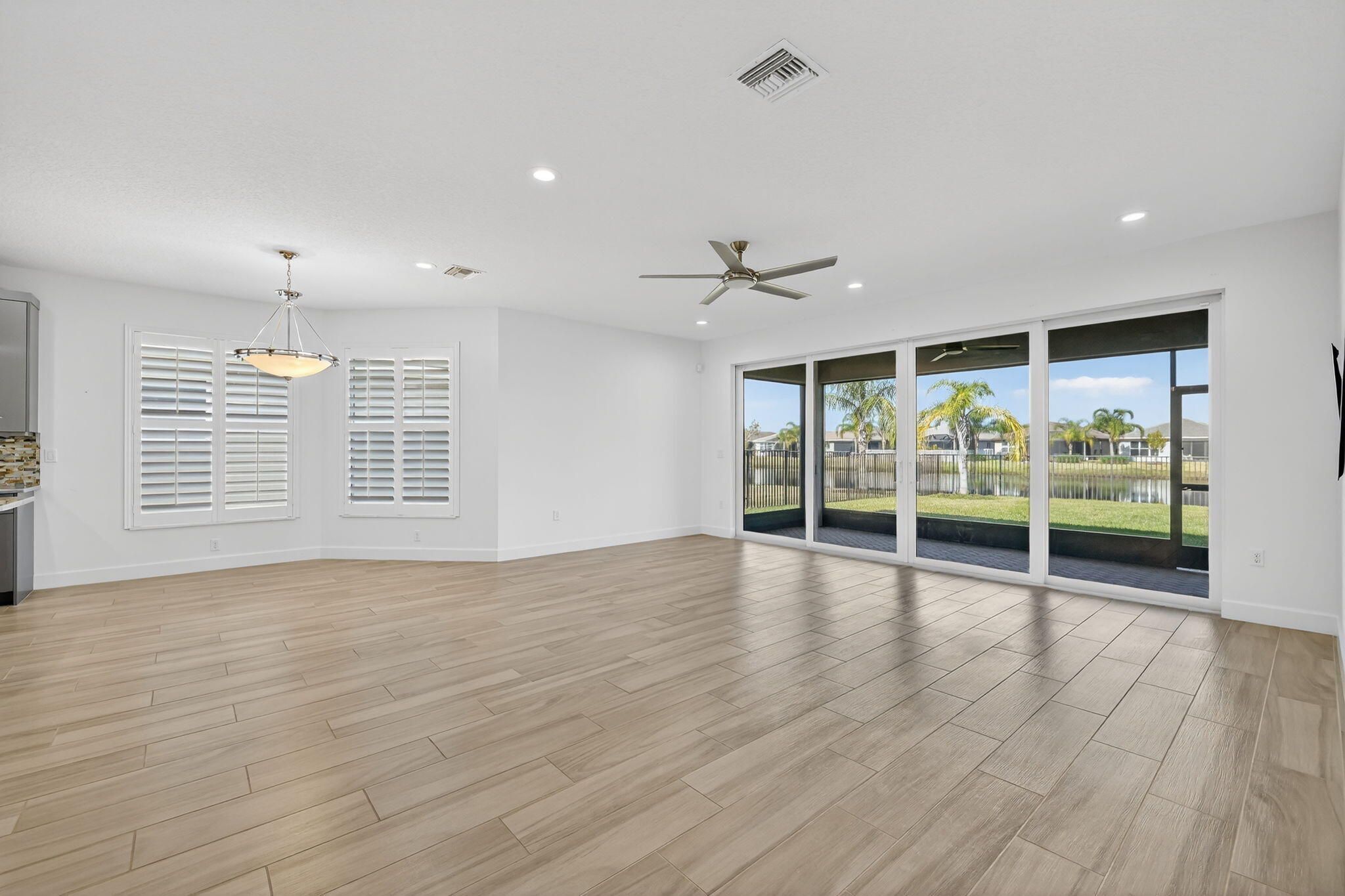 Lovely 3-BR, 2.5-BA Atlantica model in Valencia Cay at Riverland, Tradition. Built in 2020, situated on an oversized lakefront lot with room for a pool, this home offers modern upgrades throughout - porcelain plank flooring (no carpet), impact glass windows, with tranquil lake & garden views from the great room, primary suite, & covered patio with gas hookup for grilling.Gourmet kitchen features quartz countertops, glass tile backsplash, high-gloss acrylic cabinetry, expanded pantry space, large center island for entertaining, & upgraded GE Profile stainless appliances with a vented range hood. 3rd BR is used as a den/office, providing flexible living options. Spacious laundry room with upper cabinets, laundry sink, upgraded washer & dryer, large storage pantry/closet. Epoxied garage.