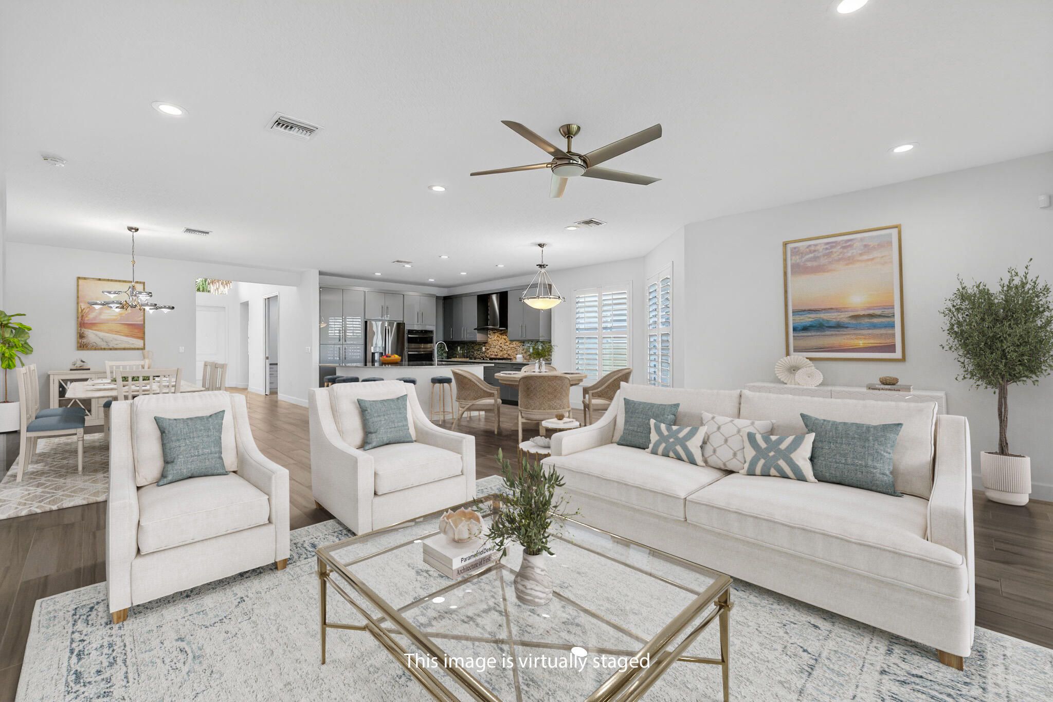 - Entry Level Living Area, Entrance Foyer, Kitchen Island, Pantry, Split Bedrooms, Walk-In Closet(s), Home Office, Family Room, Breakfast Area, Eat-in Kitchen, Separate/Formal Dining Room, Impact Glass, Dual Sinks, Primary Downstairs, Sitting Area In Primary Bedroom, Separate Shower