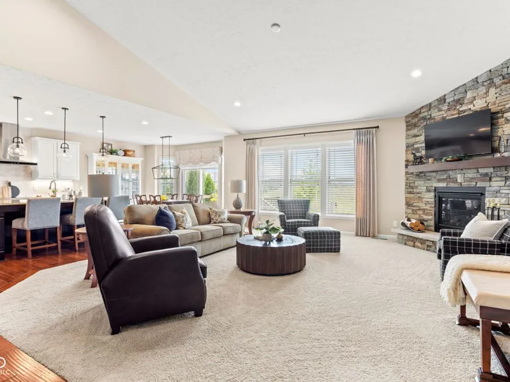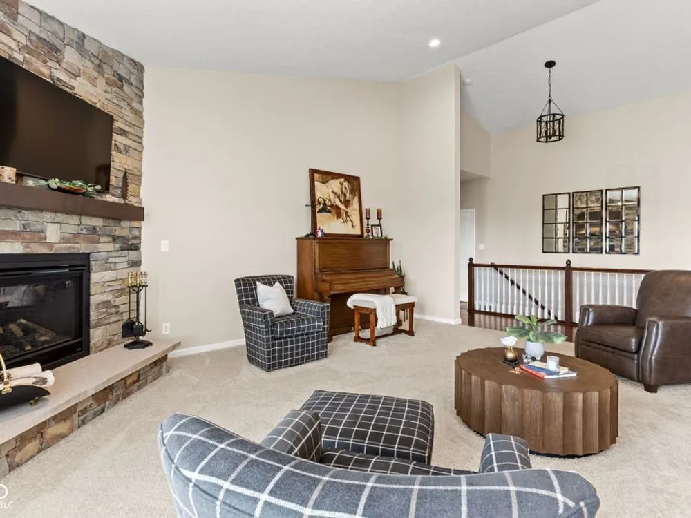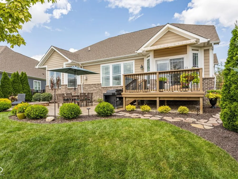 A must see beautiful 5-bedroom, 3 full bathroom ranch home with finished basement. Upgrades throughout including 2x6 exterior framing for added weather efficiency. Rear facing southern exposure that provides lots of natural light in the living area with an open floor plan and soring vaulted ceilings. An eye-catching stone fireplace, gourmet kitchen, upgraded cabinets, double ovens, large center island, upgraded range hood with tile, under-cabinet lighting, upgraded light fixtures throughout. The primary suite features large upgraded walk-in shower with double vanity, walk-in closet. Quartz counter tops in all the bathrooms. Private backyard that's completely landscaped with deck and patio, fire pit, mature arborvitae trees for added privacy. A worry-free irrigation system. Backs up to a large open prairie. Basement has 2 bedrooms with walk-in closets, 9' ceilings, full bath with a large recreation room with surround sound that provides endless entertainment possibilities. Separate zoned heating and cooling for maximum comfort. A large storage room to accommodate all your storing needs. Don't miss the opportunity to own this well-maintained home.