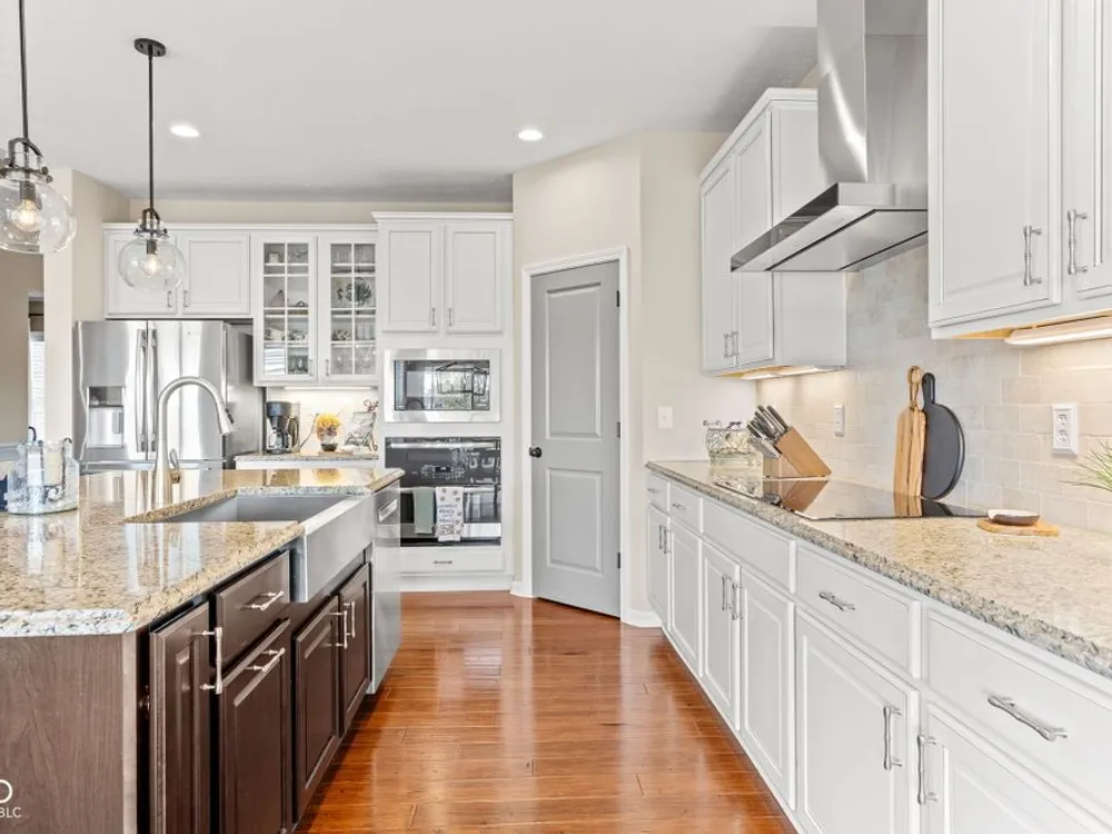 - Electric Cooktop, Dishwasher, Disposal, Gas Water Heater, Humidifier, Microwave, Double Oven, Range Hood, Refrigerator, Bar Fridge, Water Softener Owned, Wine Cooler