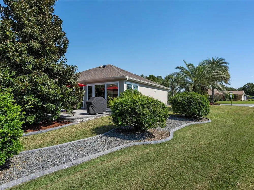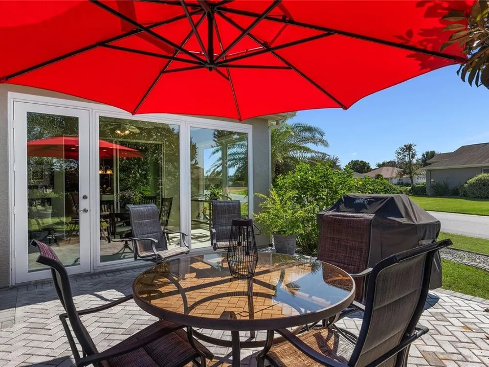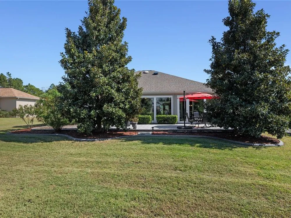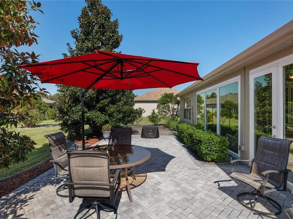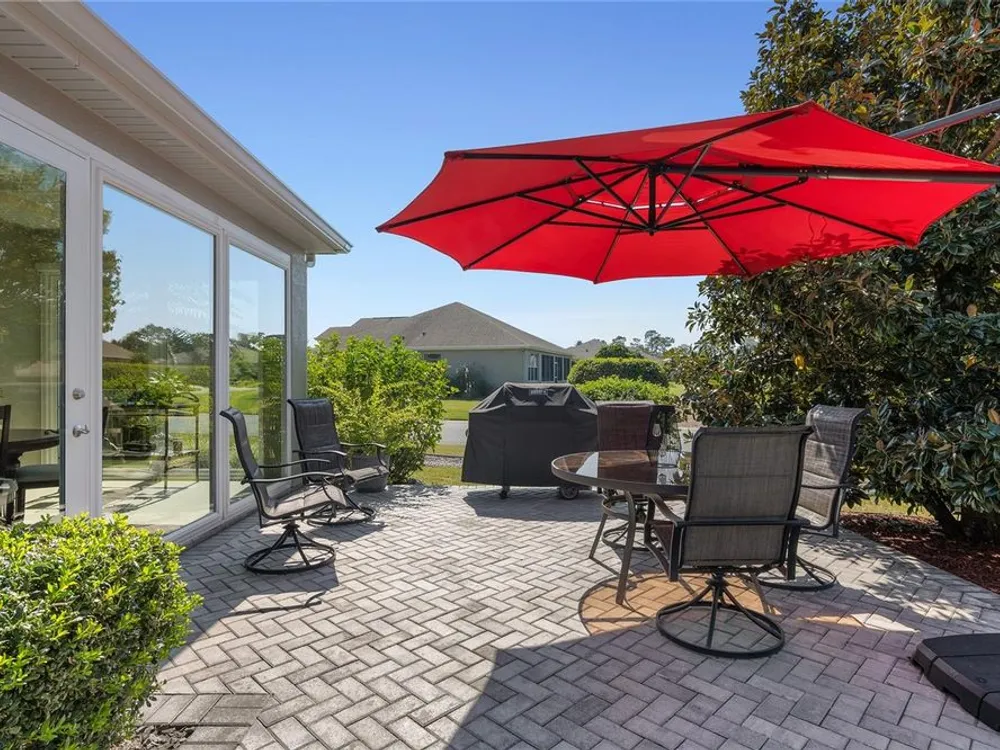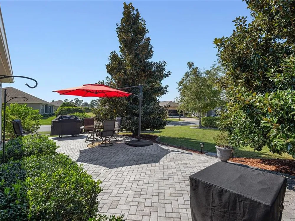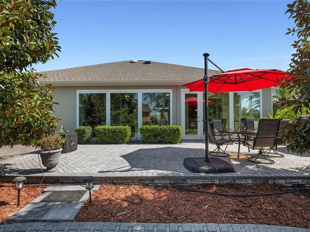 Right out of a magazine, this stunning HANOVER sits on a 1/3 acre oasis in the neighborhood of SHERWOOD. This extremely well maintained 3/2 boasts Concrete Block Stucco Construction, beautiful leaded glass double door entry. This spacious floor plan offers a large dining room as well as an eat-in kitchen. The Kitchen has upgraded tall oak cabinets with roll-out drawers along with Quartz Countertops and tile backsplash, plus additional cabinets with desk space. The primary bath has a tub and a large glassed shower along with taller vanities. Flooring is 18” Tile in main areas and bedroom floors of carpet & engineered wood. The comfortable 10'x32' Lanai has been converted to climate controlled additional living space and has large Argon filled glass windows with remote controlled power solar shades overlooking the elevated 28’x18’ resort-like brick paver patio, an 18’x18’ garden area and the private park-like landscaped back yard. You will find plantation shutters, large crown molding, a private irrigation well, lots of extra insulation, an extended garage with extensive built-in shelving, AND A 20’ DEEP GOLF CART GARAGE. Pipes were replaced in 2021, Exterior Painted in 2024, all new Kitchen Appliances in 2022, New roof 2018, New HVAC 2017…AN SO MUCH MORE. PHOTOS CANNOT CONVEY THE COMFORT OF THIS HOME AND ENJOYMENT OF RELAXING & ENTERTAINING ON THIS OUTSTANDING LANAI AND PATIO. Note: With the lanai opened to the home, this home actually has AN ADDITIONAL 320 SQUARE FEET OF LIVING SPACE MAKING THE TOTAL UNDER GLASS, ROOF, AND AIR CONDITIONING 2,278 SQUARE FEET . AWARD-WINNING Del Webb Spruce Creek Golf & Country Club is a GATED, 3,250 home, +55 Community with over 70 clubs, 3 pools, 3 spas, a Clubhouse, a Fitness Center, Bocce Ball, Shuffleboard, 12 Pickle ball Courts, 7 Tennis Courts, Sand Volleyball, Water Volleyball, Lake Vista Gazebo, Pavilions, Walking Paths and so much more! Come see this beautiful community with a GORGEOUS Tree Canopy on the Boulevard and its Restaurant, Liberty Grille. Come, enjoy the four (4) 9-hole Golf Courses today and begin living your BEST LIFE! IF YOU ARE LOOKING FOR THAT OVER-THE-TOP 3-BEDROOM HOME THAT FEELS LIKE IT IS IN ITS OWN PRIVATE WORLD....YOU MUST SEE THIS HOME!!
