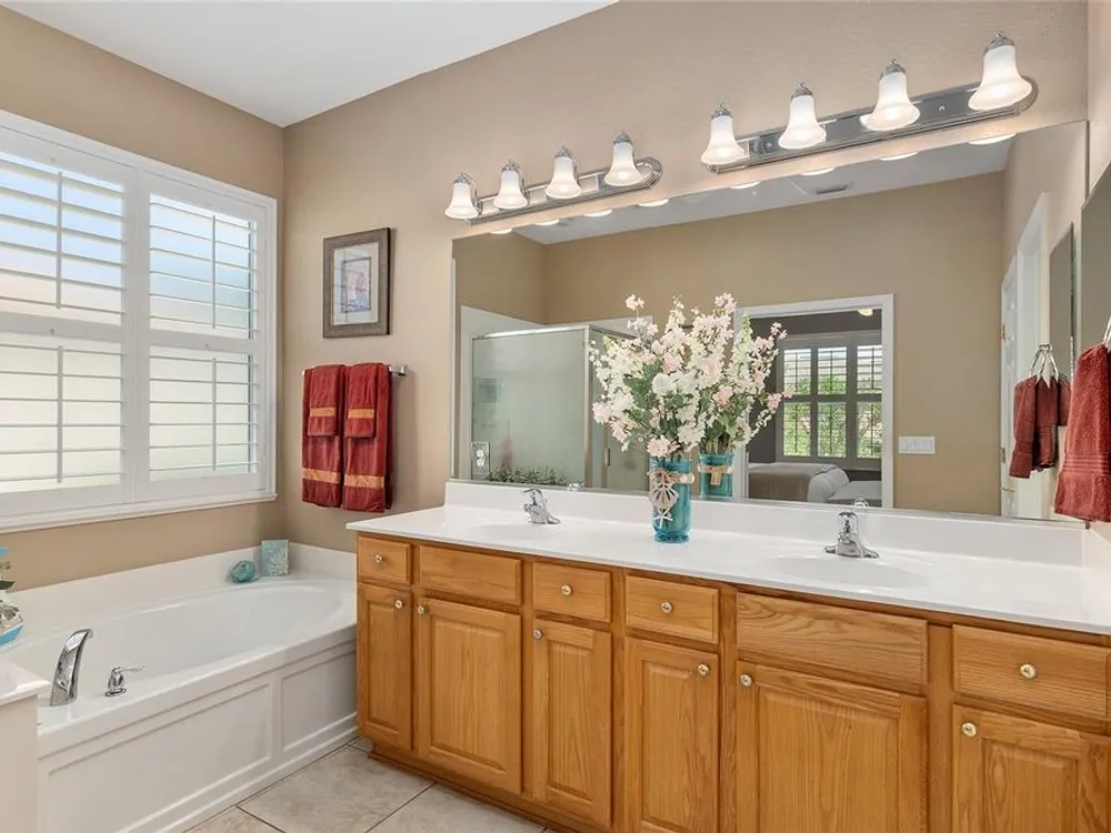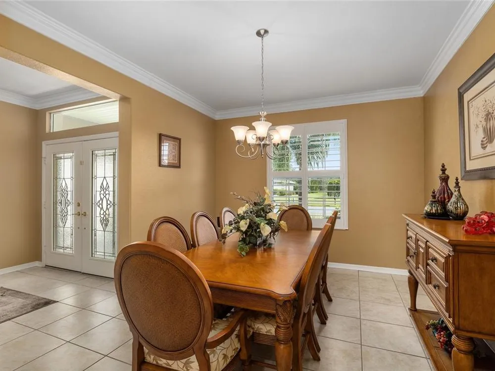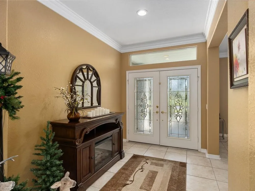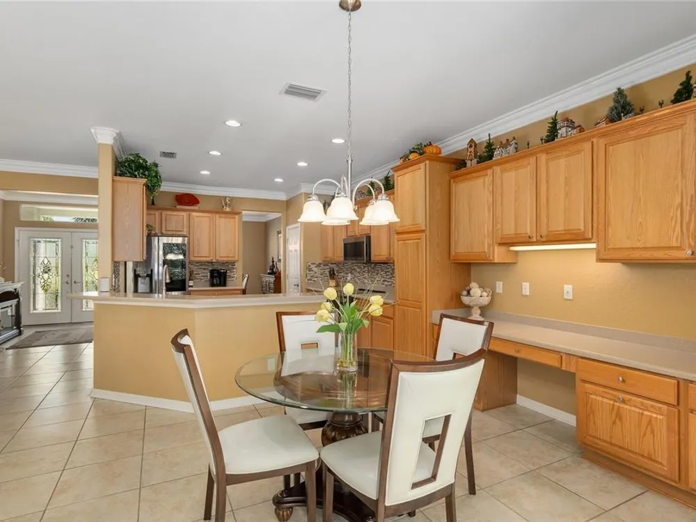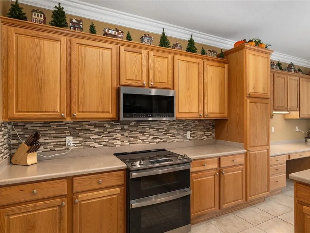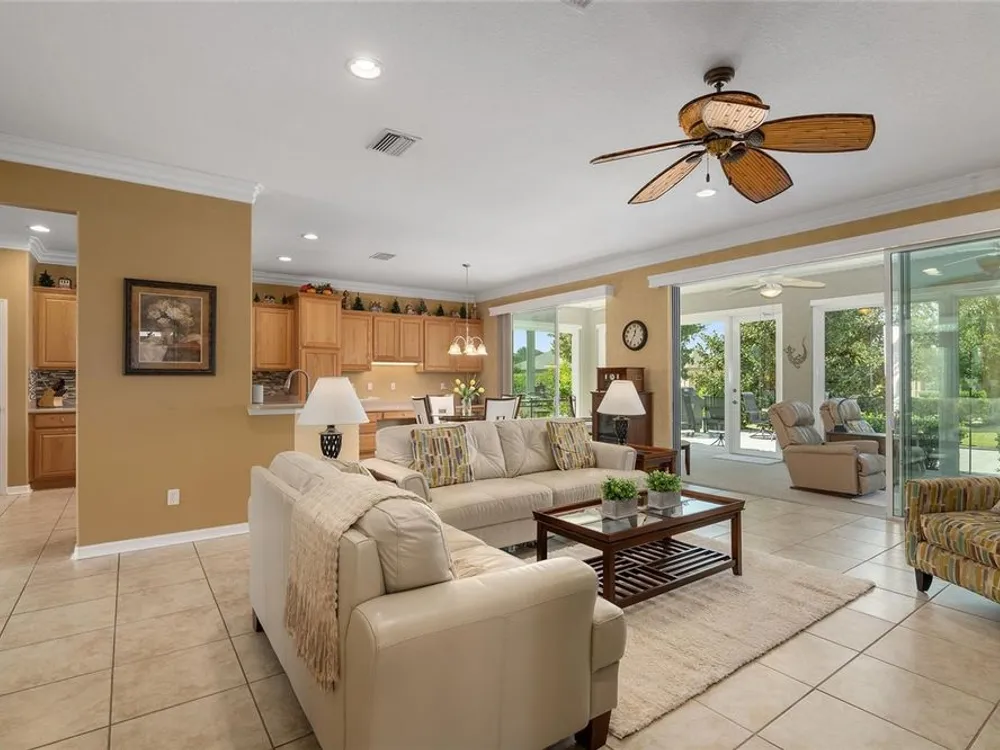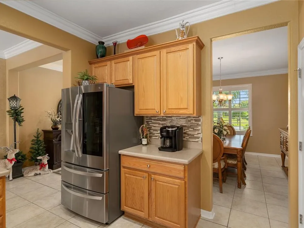Right out of a magazine, this stunning HANOVER sits on a 1/3 acre oasis in the neighborhood of SHERWOOD. This extremely well maintained 3/2 boasts Concrete Block Stucco Construction, beautiful leaded glass double door entry. This spacious floor plan offers a large dining room as well as an eat-in kitchen. The Kitchen has upgraded tall oak cabinets with roll-out drawers along with Quartz Countertops and tile backsplash, plus additional cabinets with desk space. The primary bath has a tub and a large glassed shower along with taller vanities. Flooring is 18” Tile in main areas and bedroom floors of carpet & engineered wood. The comfortable 10'x32' Lanai has been converted to climate controlled additional living space and has large Argon filled glass windows with remote controlled power solar shades overlooking the elevated 28’x18’ resort-like brick paver patio, an 18’x18’ garden area and the private park-like landscaped back yard. You will find plantation shutters, large crown molding, a private irrigation well, lots of extra insulation, an extended garage with extensive built-in shelving, AND A 20’ DEEP GOLF CART GARAGE. Pipes were replaced in 2021, Exterior Painted in 2024, all new Kitchen Appliances in 2022, New roof 2018, New HVAC 2017…AN SO MUCH MORE. PHOTOS CANNOT CONVEY THE COMFORT OF THIS HOME AND ENJOYMENT OF RELAXING & ENTERTAINING ON THIS OUTSTANDING LANAI AND PATIO. Note: With the lanai opened to the home, this home actually has AN ADDITIONAL 320 SQUARE FEET OF LIVING SPACE MAKING THE TOTAL UNDER GLASS, ROOF, AND AIR CONDITIONING 2,278 SQUARE FEET . AWARD-WINNING Del Webb Spruce Creek Golf & Country Club is a GATED, 3,250 home, +55 Community with over 70 clubs, 3 pools, 3 spas, a Clubhouse, a Fitness Center, Bocce Ball, Shuffleboard, 12 Pickle ball Courts, 7 Tennis Courts, Sand Volleyball, Water Volleyball, Lake Vista Gazebo, Pavilions, Walking Paths and so much more! Come see this beautiful community with a GORGEOUS Tree Canopy on the Boulevard and its Restaurant, Liberty Grille. Come, enjoy the four (4) 9-hole Golf Courses today and begin living your BEST LIFE! IF YOU ARE LOOKING FOR THAT OVER-THE-TOP 3-BEDROOM HOME THAT FEELS LIKE IT IS IN ITS OWN PRIVATE WORLD....YOU MUST SEE THIS HOME!!