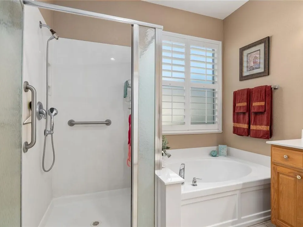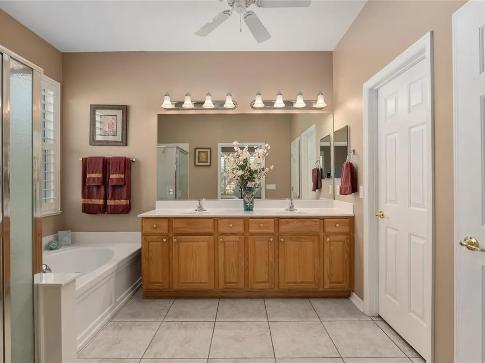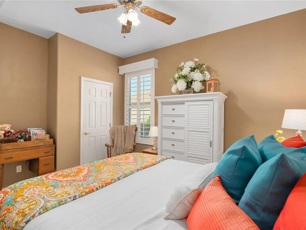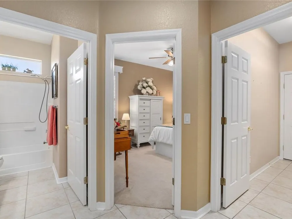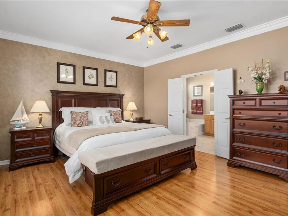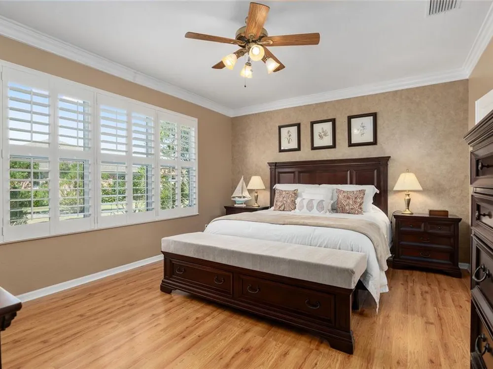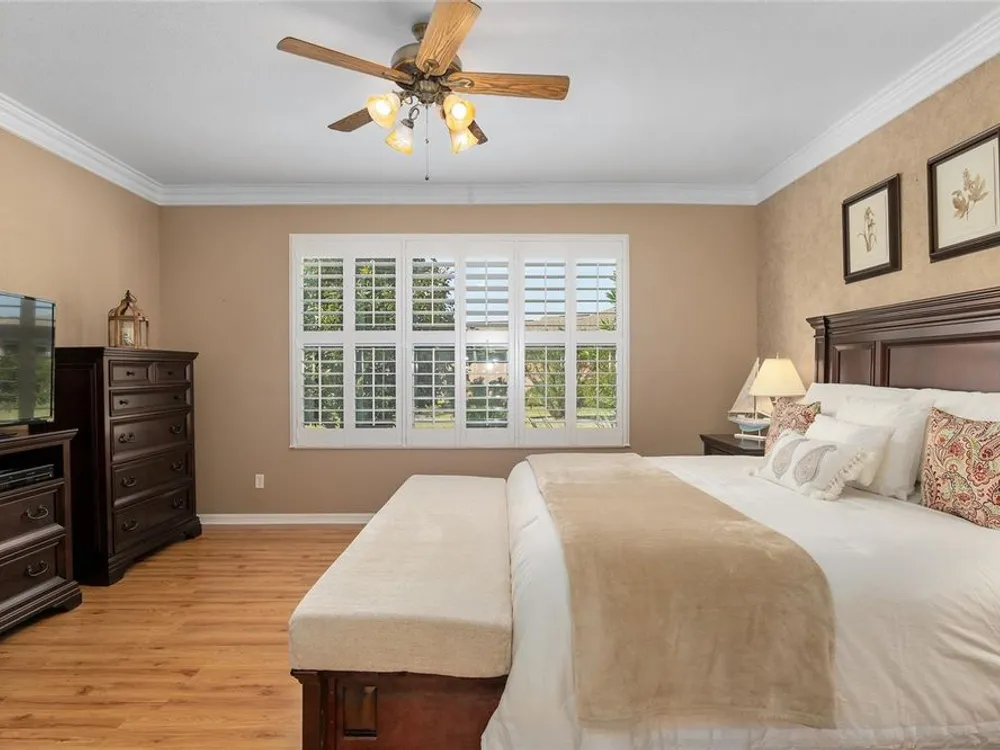 - Crown Molding, High Ceilings, Open Floorplan, Main Level Primary, Solid Surface Counters, Split Bedrooms, Walk-In Closet(s), Window Treatments
