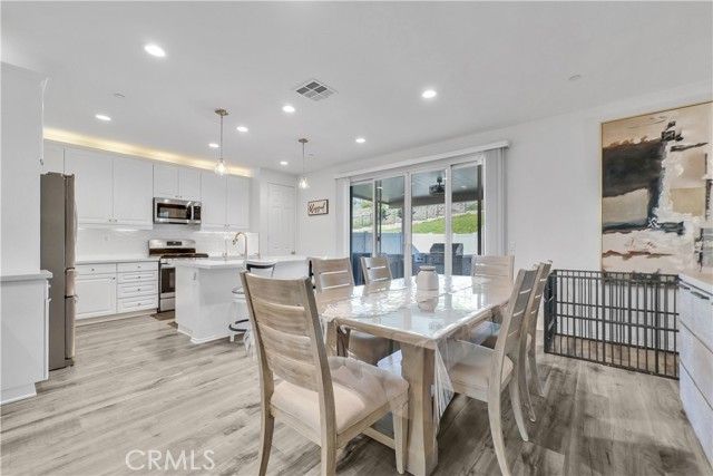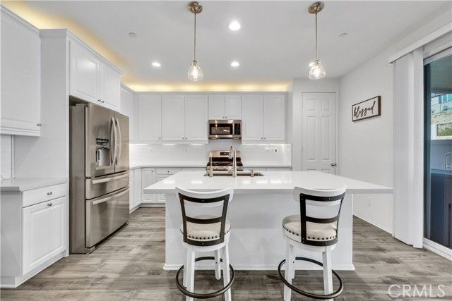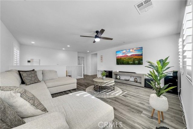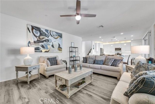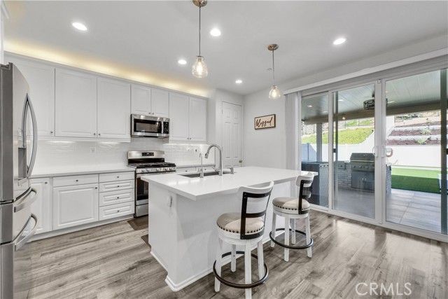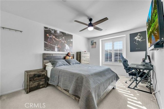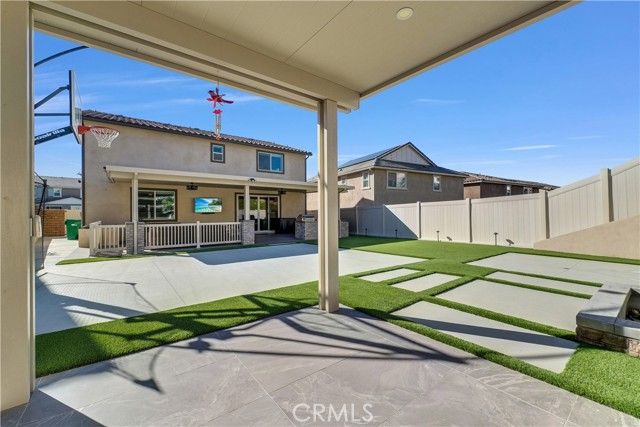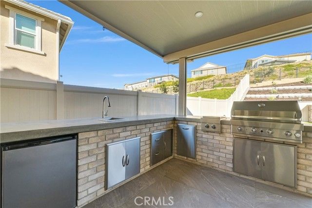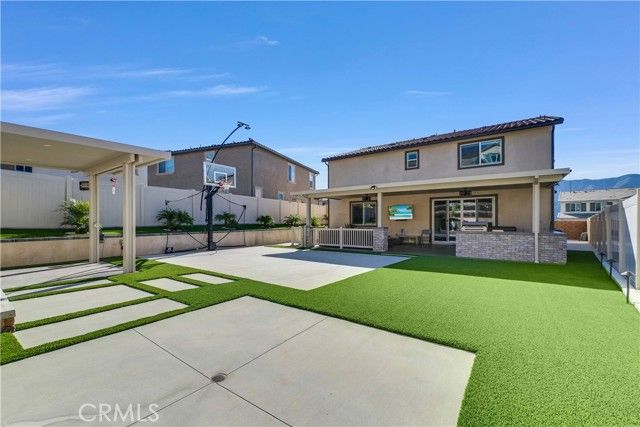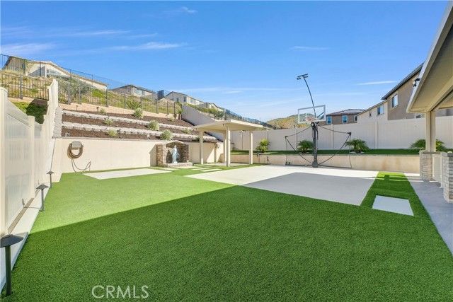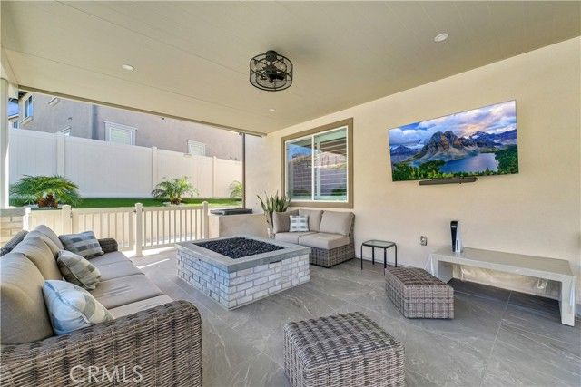 Welcome to resort-style living in the gated and highly sought-after Terramor community of Corona-Paid solar! This beautifully upgraded home blends comfort, style, and functionality, beginning with attractive curb appeal and a low-maintenance front yard with artificial grass. Inside, the home offers 4 spacious bedrooms and 3 full bathrooms, including a downstairs bedroom and full bath, ideal for guests. The heart of the home is the gourmet kitchen, featuring white cabinetry, quartz countertops, white tile backsplash, upgraded sink with water filtration, pantry, and a large center island with breakfast bar and cabinet lighting. The kitchen opens seamlessly to the family room, creating a welcoming space for everyday living and entertaining. Dual thermostat for downstairs and upstairs. Throughout the home you’ll enjoy ceiling fans throughout, plantation shutters, luxury vinyl flooring downstairs and in the upstairs hallway and loft, tile flooring in the bathrooms and laundry room, and an elegant staircase with white open wood rails. Upstairs features a spacious loft, two secondary bedrooms, a full bathroom with dual sinks, and a laundry room with tile flooring and utility sink. The primary suite is a private retreat with an ensuite bathroom featuring dual sinks and a generously sized walk-in closet. Step outside to your private backyard oasis, designed for relaxation and entertaining. Enjoy the covered patio with ceiling fans and recessed lighting, a fully equipped BBQ island with sink, burners, refrigerator, and storage, built-in fire pit, large tile flooring, TV-ready setup, artificial grass, gazebo, Jacuzzi-ready area, half-court basketball hoop, drip irrigation system, LED lighting throughout, and rain gutters with leaf filter and lifetime warranty. The 2-car garage includes ceiling storage shelves, water softener, and a tankless water heater. Residents of Terramor enjoy resort-style amenities, including a community pool and spa, clubhouse, dog parks, and scenic hiking trails. Conveniently located near the 15 Freeway, Dos Lagos, and The Crossings at Corona, this home offers the perfect balance of tranquility and accessibility. With paid-off solar panels, extensive upgrades, and true move-in-ready condition, this is more than a home-it’s a lifestyle.