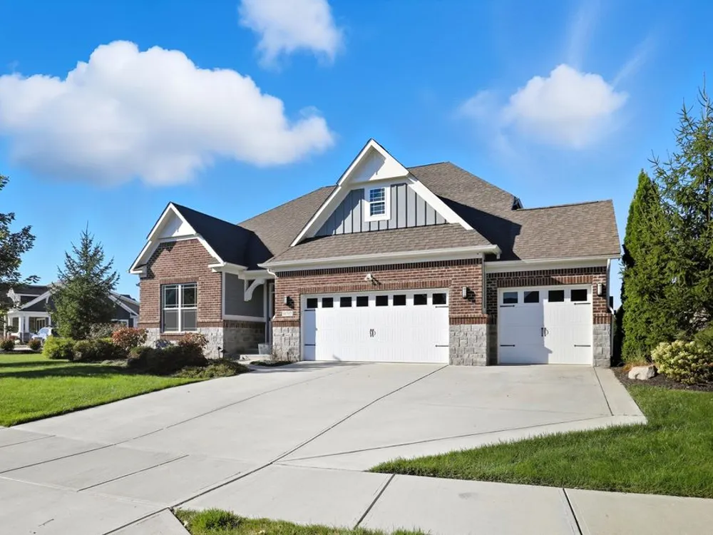 FEAST YOUR EYES ON THIS FORMER MODEL HOME! This Noblesville RANCH WITH A FULL BASEMENT offers more than meets the eye! TONS of natural light! All the bells and whistles! Three bedrooms, three full baths and two half baths including an upstairs loft with a third bedroom, AND a full-pour basement for even MORE living space! This gem features over 3,800 of finished living space, including a gourmet kitchen, basement with finished wet bar, recreation area with media space, and LOADS more unfinished space for a potential 4th bedroom and workout/gym area. Convenient front-load 3-car garage with the third bay being insulated AND heated, perfect for a workshop or man-cave. Inside, engineered hardwood floors flow throughout the main-level living space, the kitchen SHINES with stainless appliances, granite counters and custom cabinets, while oversized windows flood the home with an ABUNDANCE of natural light! The living room is showcased with a cozy fireplace sandwiched between two cabinet nooks with shelving, countertops, AND glass cabinets for elegance. The main-level primary suite includes a vaulted tray ceiling for an airy grandness, boasts a huge walk-in closet, and a walk-in, spa-like shower. Just off the great room, a private office with floor-to-ceiling trim makes working from home a pleasure! Upstairs you'll find the loft and third bedroom. Each bedroom has its own full bath, so no one has to share! Downstairs, the finished full-pour basement is ready for game day or movie night with a wet bar, half bath and PLENTY of storage. There's even a bonus room that could easily become a 4th bedroom, home gym or craft space. Step outside to an inviting outdoor living area w/ a covered porch and stamped-concrete patio, perfect for relaxing with your morning coffee or hosting summer get-togethers! This Noblesville gem blends ranch-style convenience with flexible spaces and thoughtful upgrades you won't want to miss! Schedule your showing while you still have a chance!