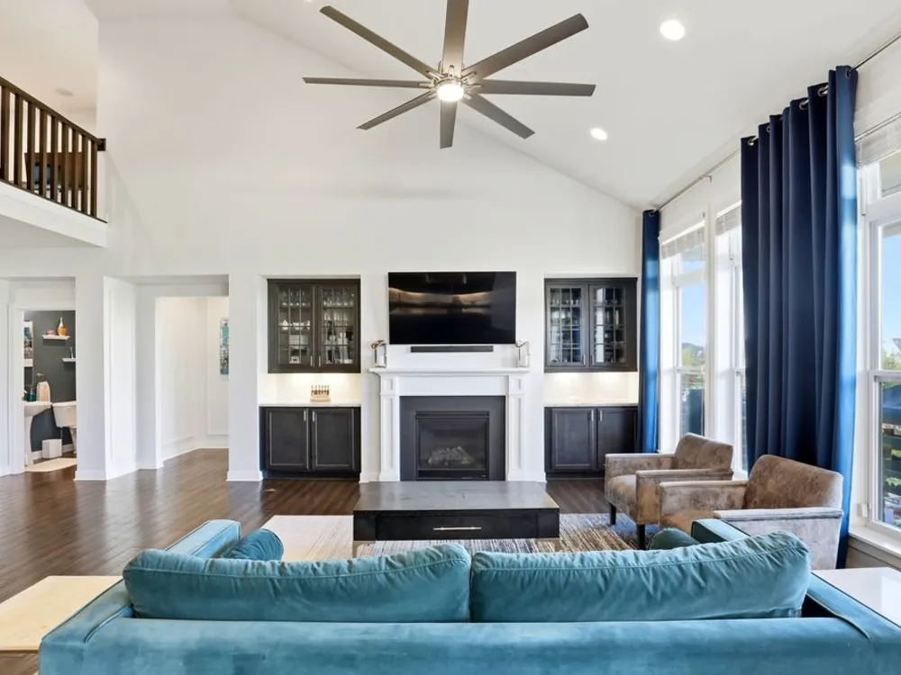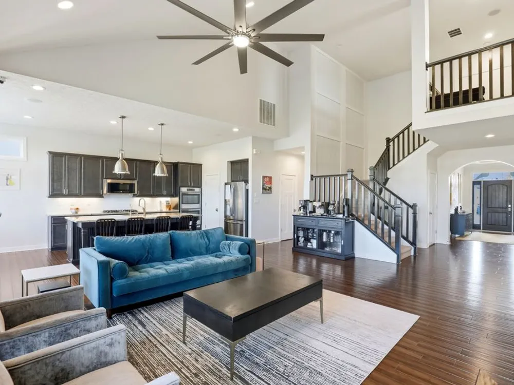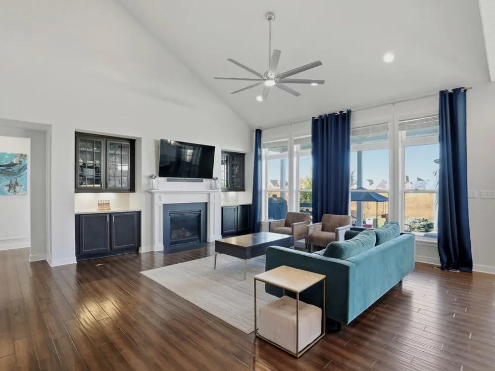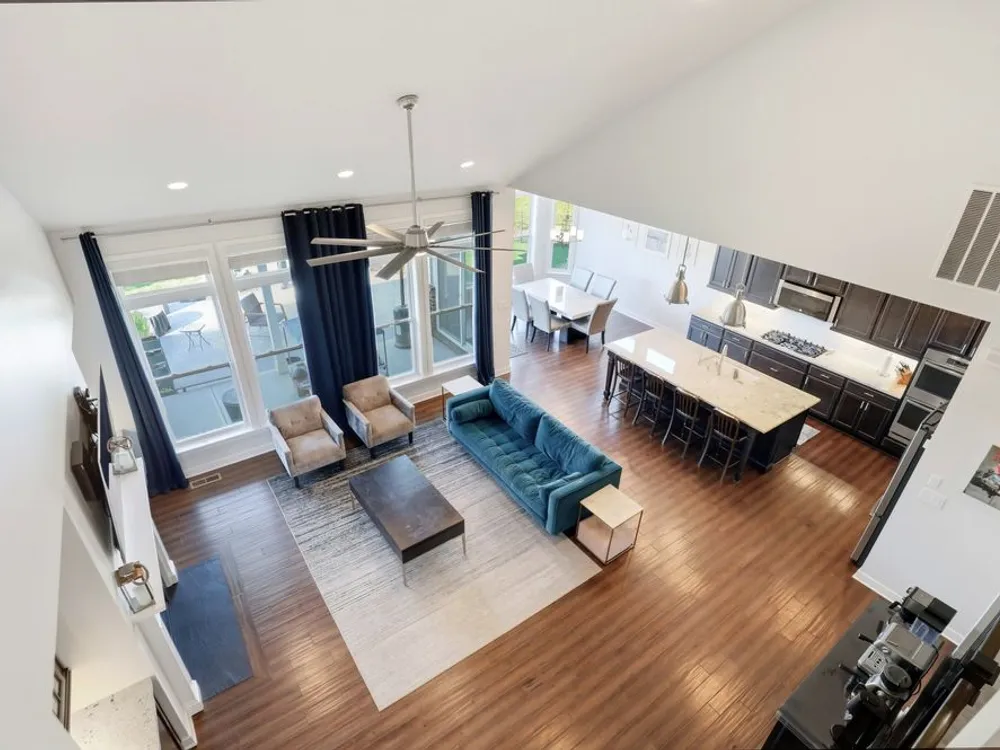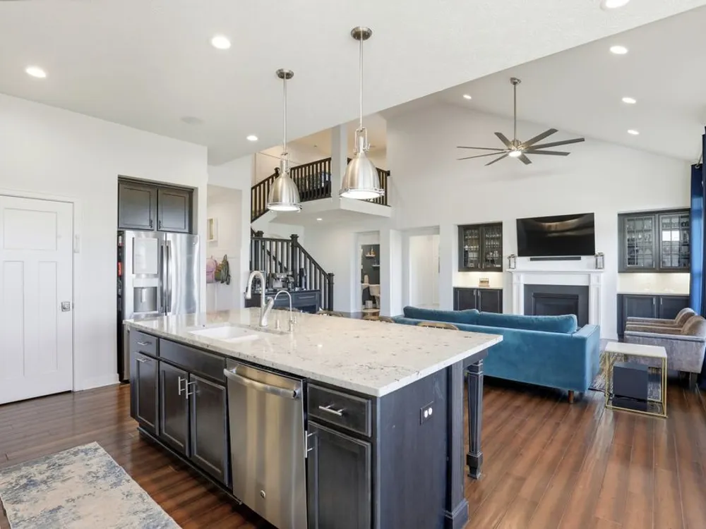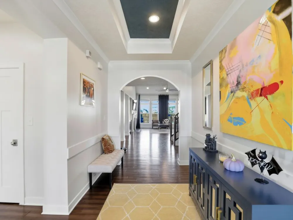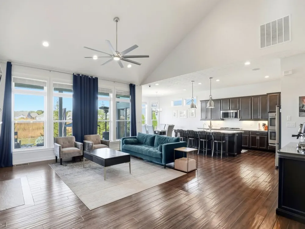 - Breakfast Room, Stall Shower, Dual Sinks, Walk-In Closet(s), High Ceilings, Tray Ceiling(s), Hardwood Floors, Kitchen Island, Breakfast Bar, Vaulted Ceiling(s)