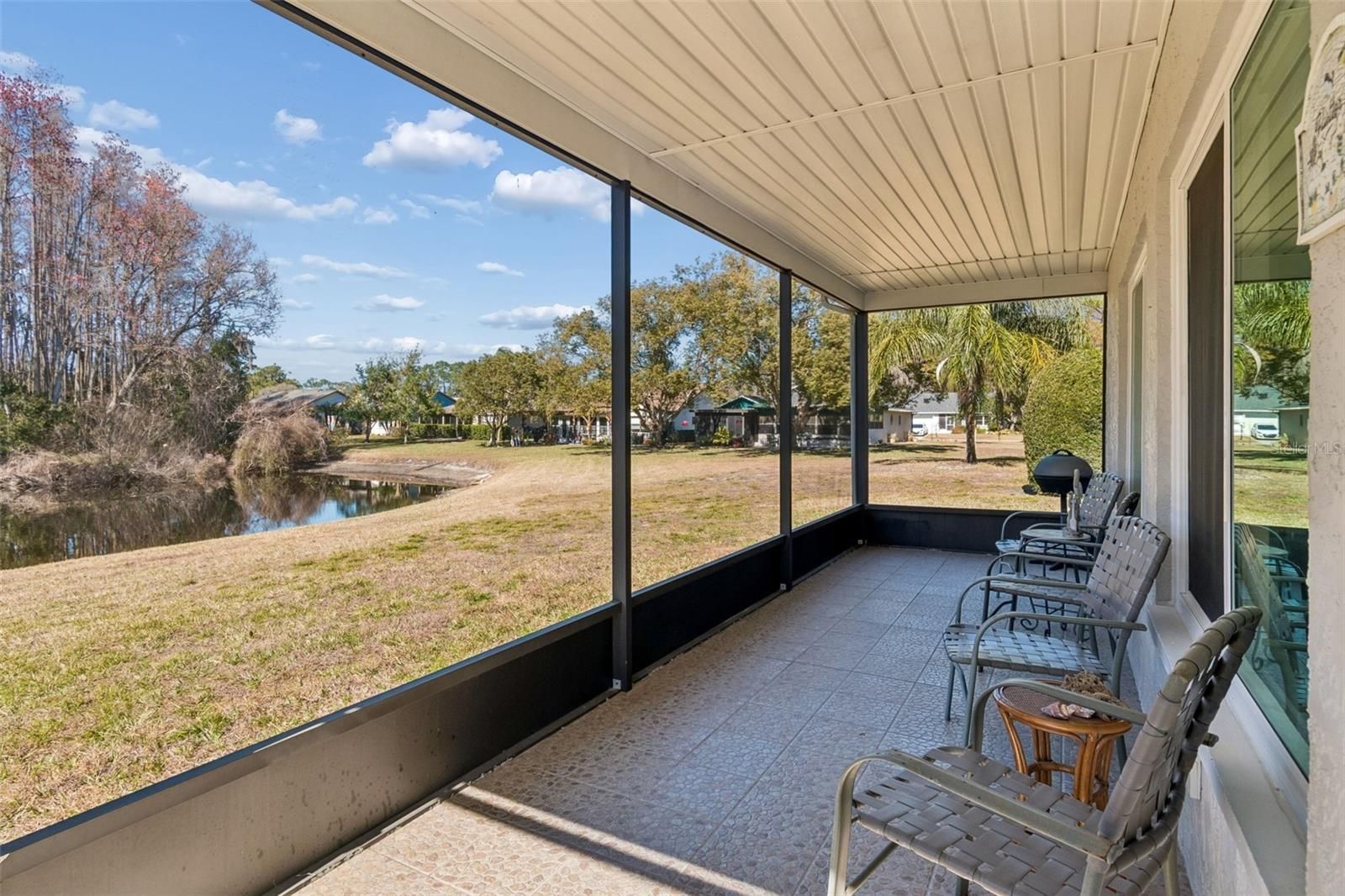 MOVE-IN ready, Fully Furnished, 2bed/2bath home is located in the Active 55+ community at ARBORWOOD in SUMMERTREE. This Well-Maintained home boasts almost 1,300 sq ft of living space. Open floor plan, with lots of new hurricane impact windows throughout to allow for natural sunlight and a serene view of your large backyard overlooking the water, which makes this home perfect for entertaining. The kitchen features a new refrigerator, dishwasher and garbage disposal. Two sit at bars and ample counter and storage space, a pass thru window overlooking a large additional Living room. The secondary Living Room will lead you to an oversized enclosed screen sunroom where you can enjoy your morning coffee and watch all of Florida's natural beauty including deer, birds, turkeys, etc. Primary Bedroom features large walk-in closet, a window with pond/conservation view and an attached primary ensuite w/stand up shower. The Second bedroom is located in the front of the home for a true split floor plan. Second bathroom has a tiled tub/shower combo. Additional features: Roof (2021), HVAC (2022), New Exterior Doors and Garage Door Mechanics. This sought after gated golf community offers TONS of amenities - 2 community pools, hot tub, state-of-the-art remodeled clubhouse, shuffleboard, tennis courts, fitness center, library, card room, golf course and so much more. Centrally located to major freeways, shopping, restaurants, and hospitals, and beaches. If you're looking for a truly maintenance free, 55+ active community, look no further!